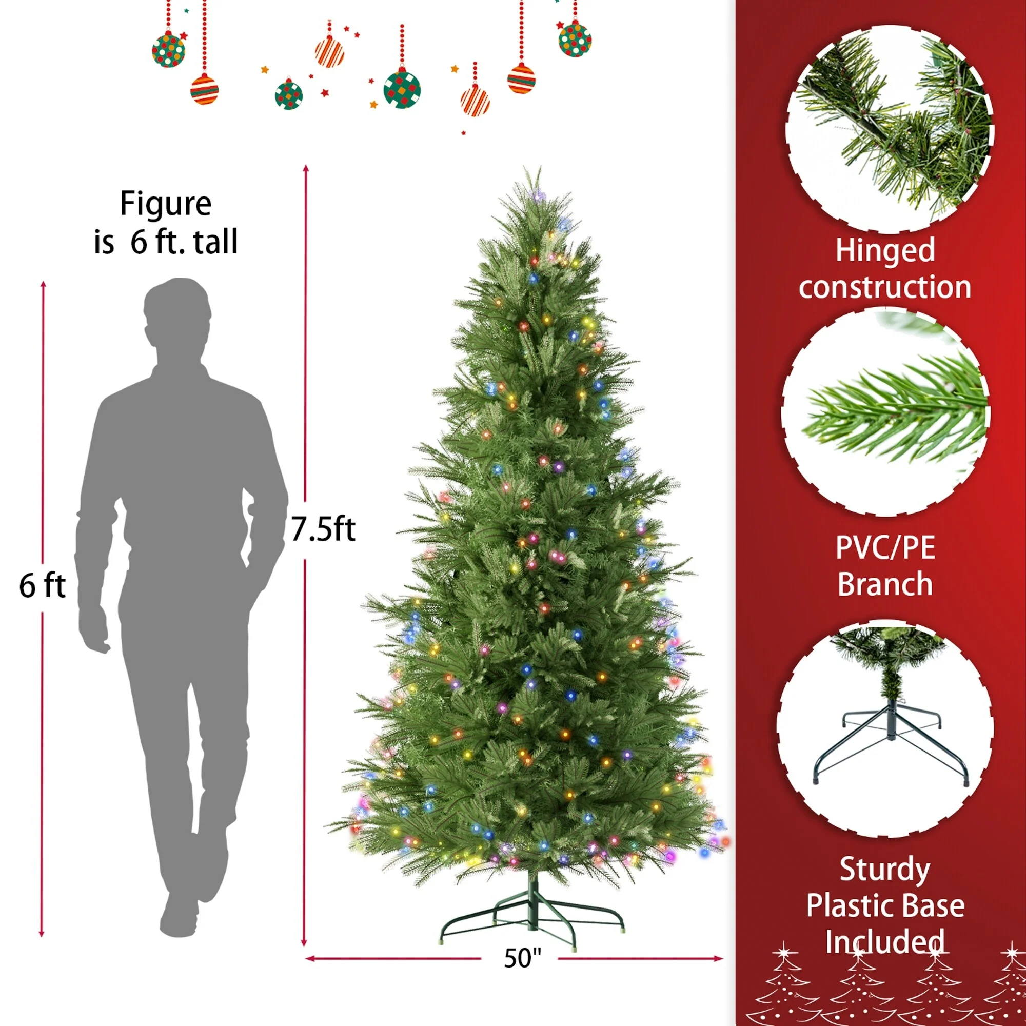 - Tree Dimensions (including base): 50" x 50" x 90"