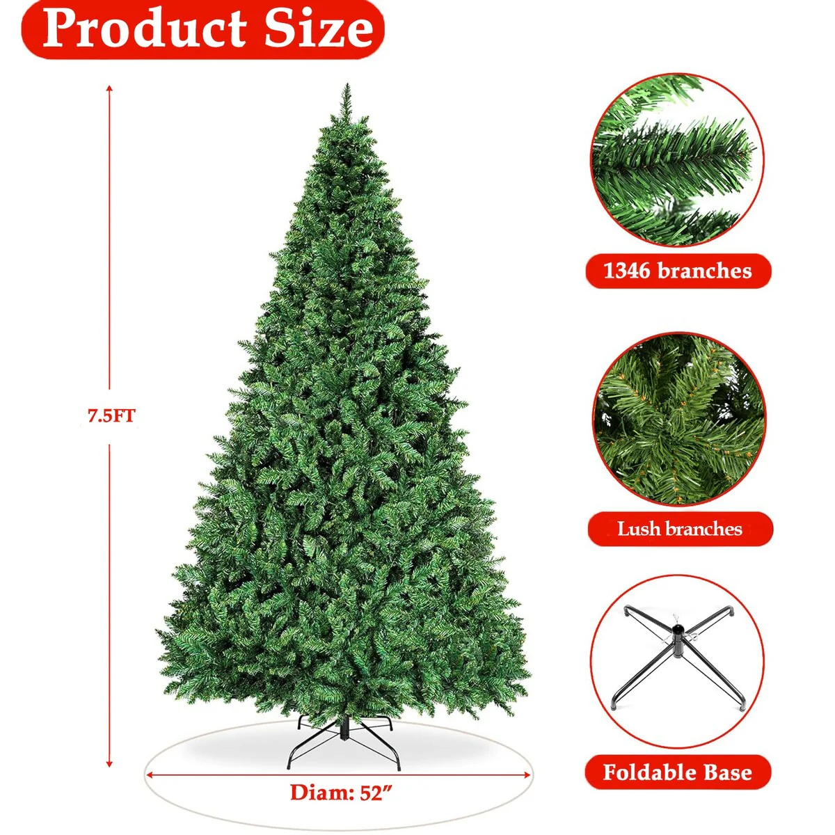 Elevate your holiday celebrations with our Exceptionally Realistic 7.5-Foot Artificial Christmas Tree, a breathtaking centerpiece for your Christmas decor. Boasting a remarkable 1346 individual branches and needles, this tree exudes a plush, lifelike appearance with vibrant color, capturing the essence of a genuine pine tree. Crafted with top-tier PVC material, it combines lifelike aesthetics with robust durability. With a sturdy metal stand, easy assembly, and ample space for ornaments, this versatile Christmas tree infuses festive cheer into your indoor and outdoor spaces, making it the centerpiece of your holiday decor.