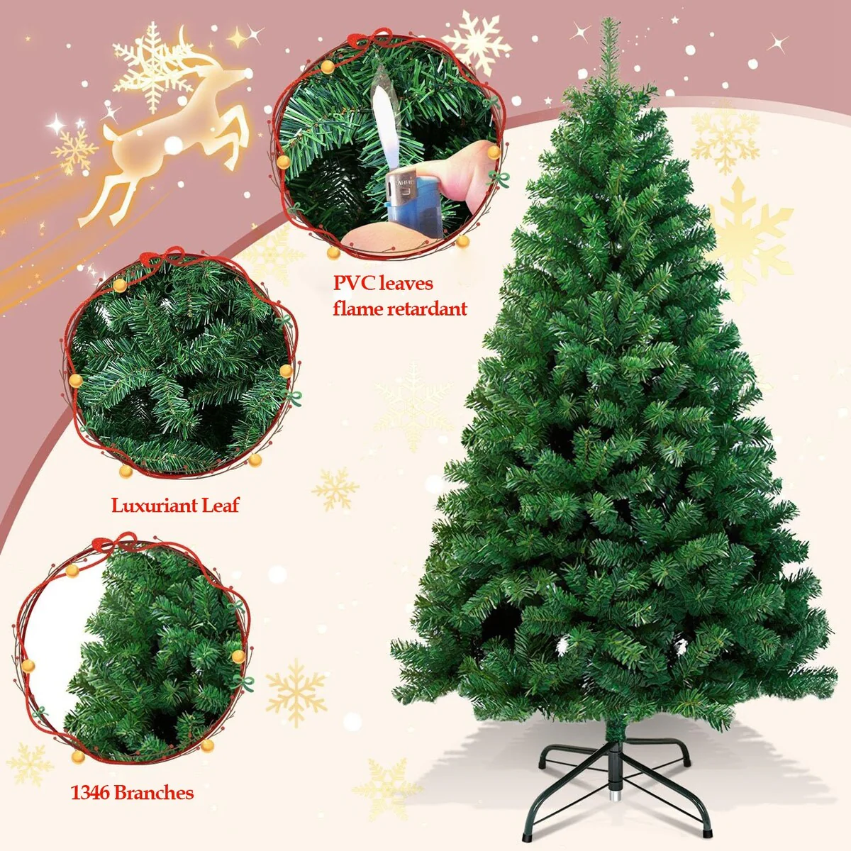 Premium Quality Materials: Meticulously crafted with top-tier PVC material, this Christmas tree combines lifelike aesthetics with durability against crushing. It's odor-free, nonflammable, and safe for both indoor and outdoor use, making it a cherished keepsake for years to come.
