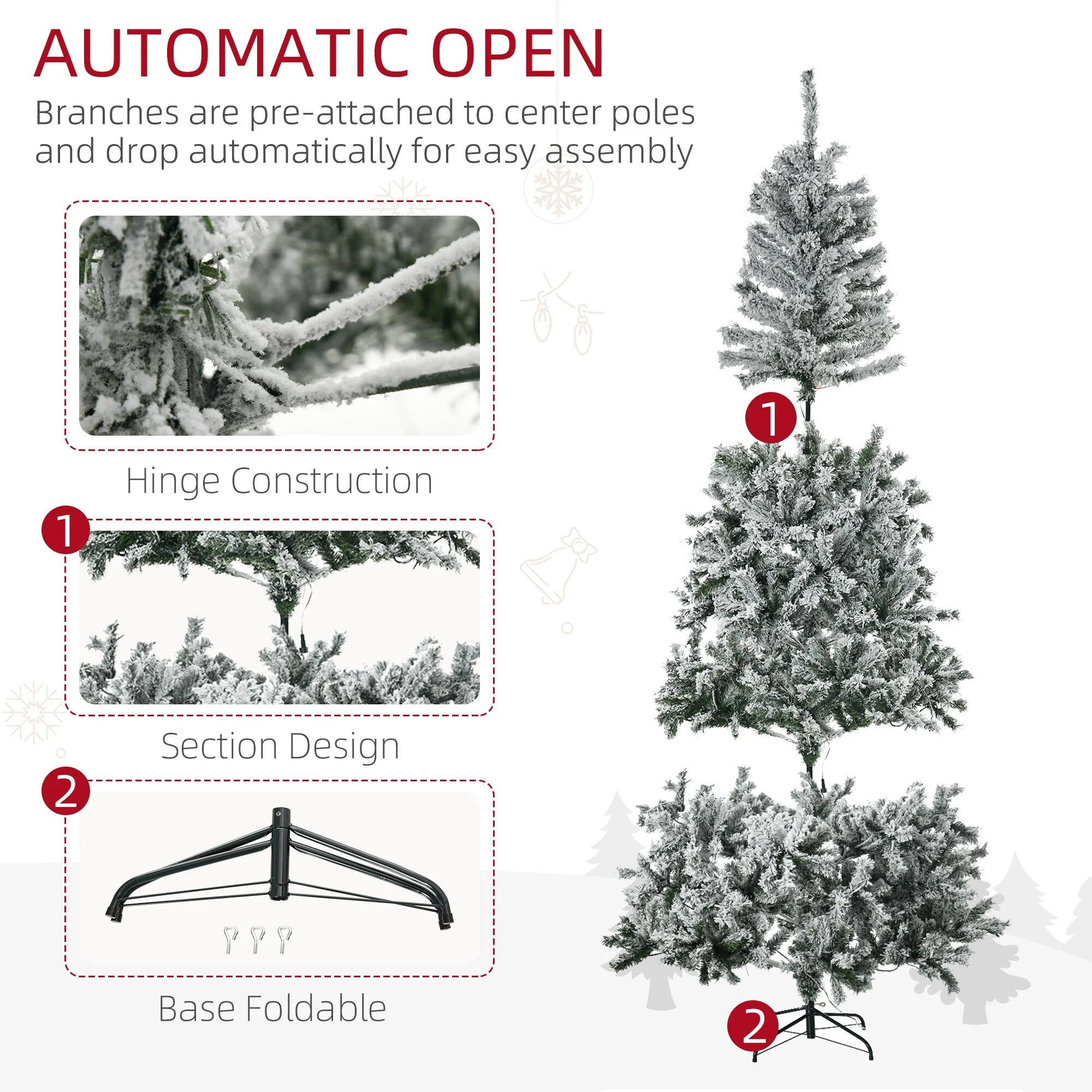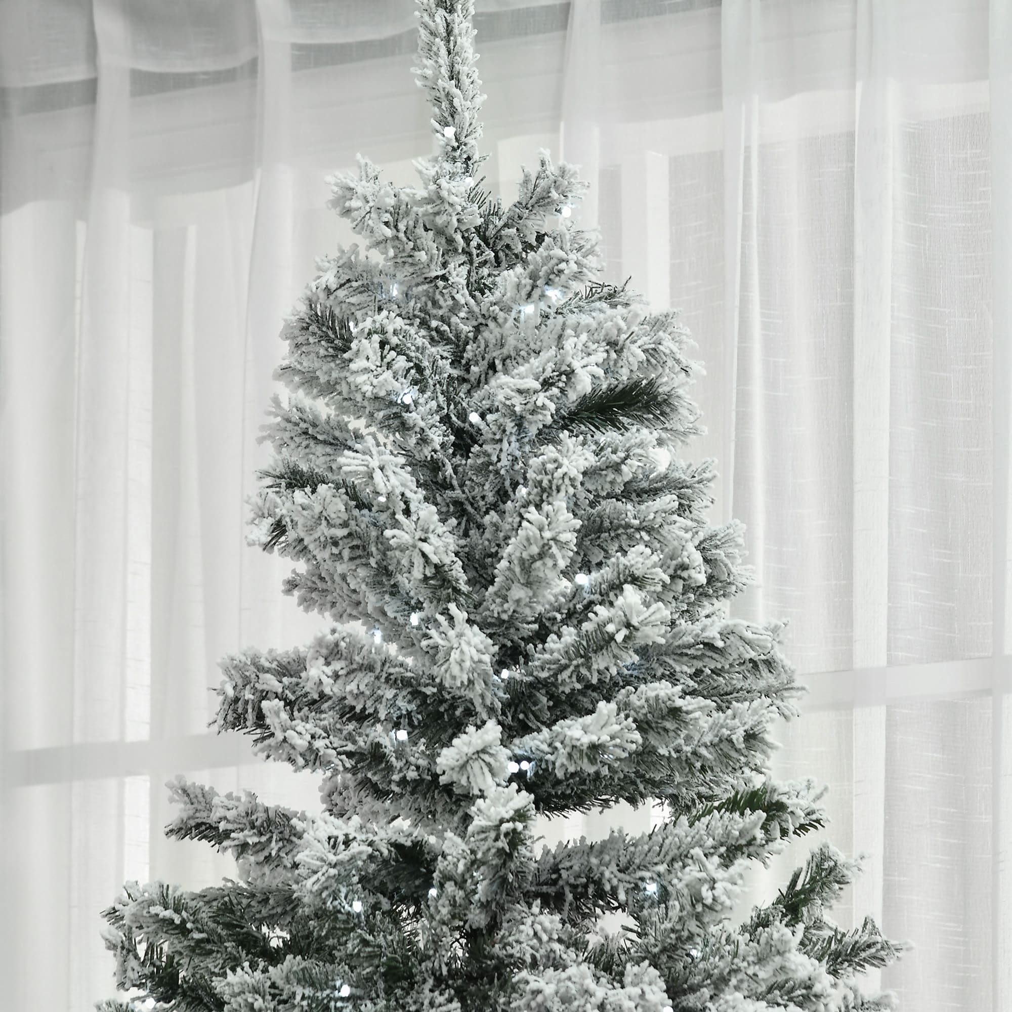 Celebrate the holidays effortlessly with the HOMCOM 7.5ft Flocked Artificial Christmas Tree. This elegant tree features 1254 realistic branch tips and 500 cold white LED lights, creating a beautiful and inviting holiday centerpiece. The snow-dusted branches add a touch of winter magic, while the sturdy steel base ensures the tree remains stable and secure throughout the festive season. Perfect for those seeking a durable and low-maintenance Christmas tree that enhances any indoor space.