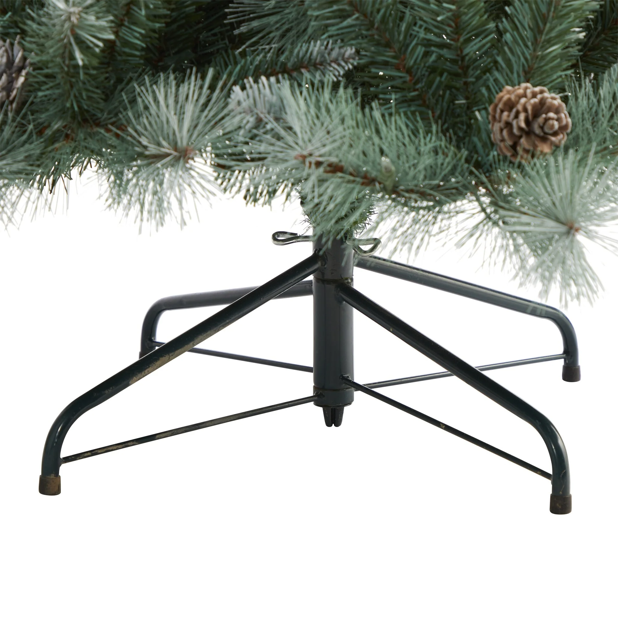 Create a magical holiday oasis with this British Columbia pine artificial Christmas tree. Featuring enchanting frosted tips inspired by British Columbia's pristine forests, experience effortless decorating with its robust mountain pine silhouette, flexible branches for ornament display, and lifelike pinecones. Enjoy a hassle free setup with LED lights and a sturdy stand. This frosted masterpiece will make your home a dazzling winter wonderland throughout the festive season.