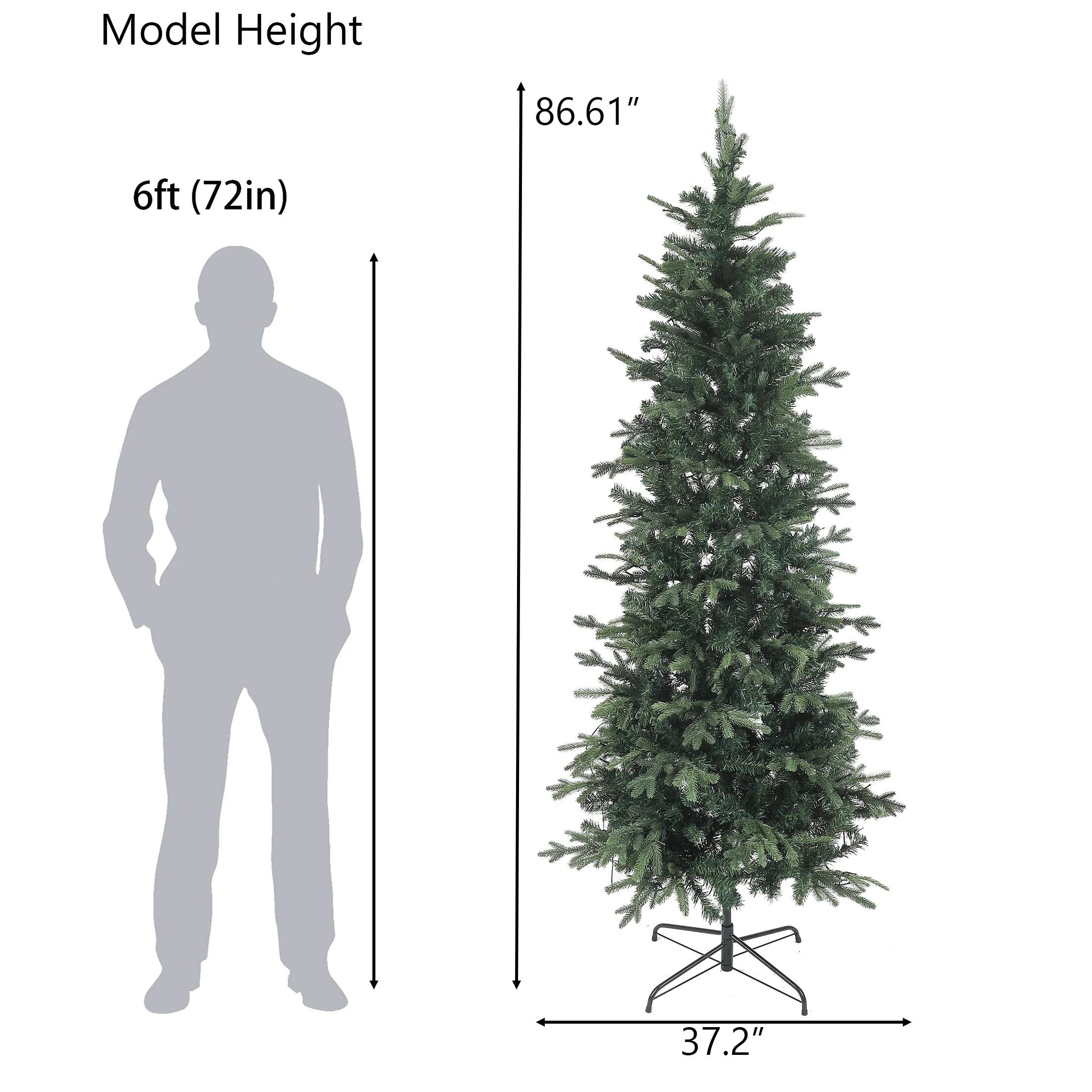 - Pre-lit 7ft Christmas slender artificial tree - LED lights string had been set up on the tree - saving the time you spend on hanging the Christmas tree lights.