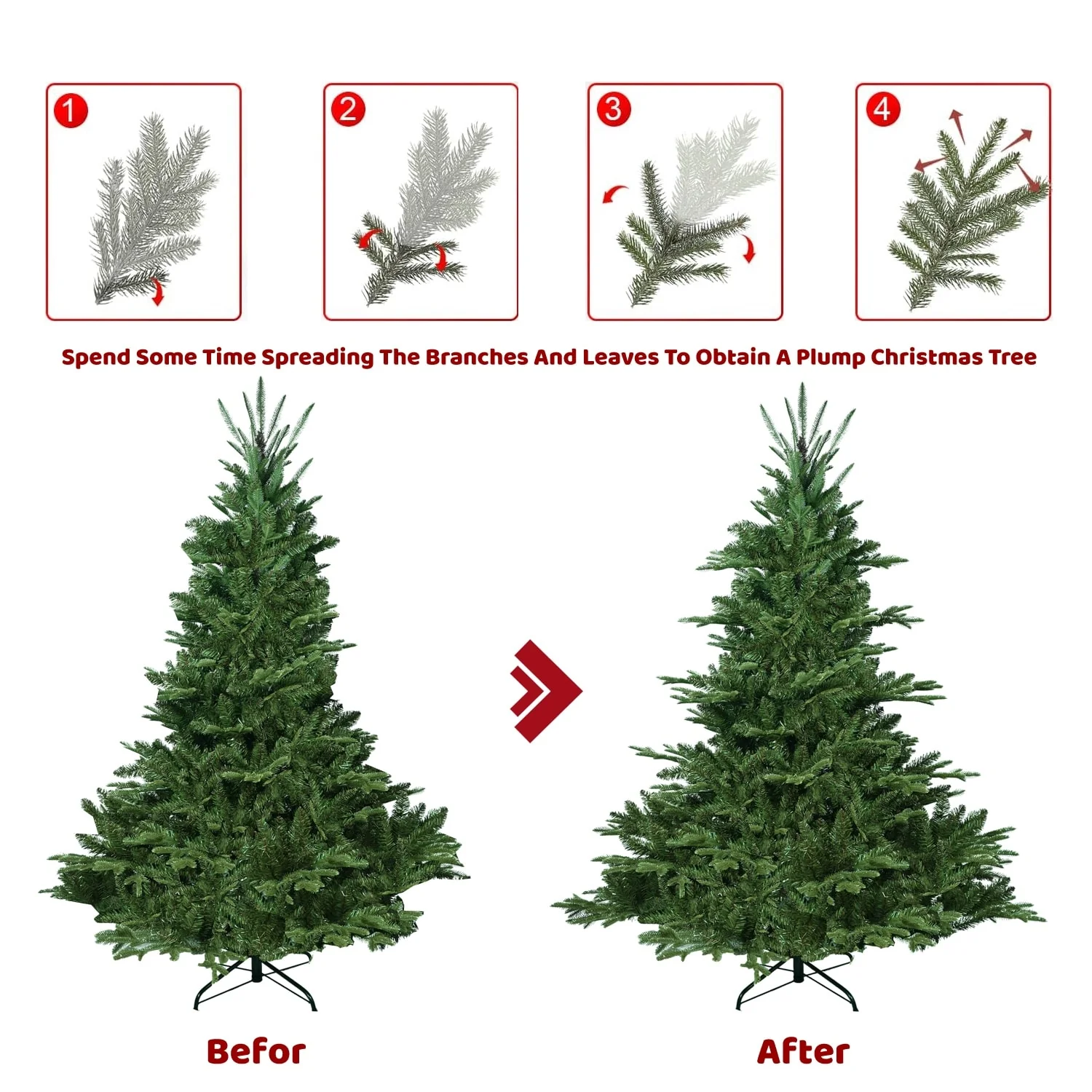 • Quick Assembly: Hinged branches and four-section design make setup and fluffing easy.