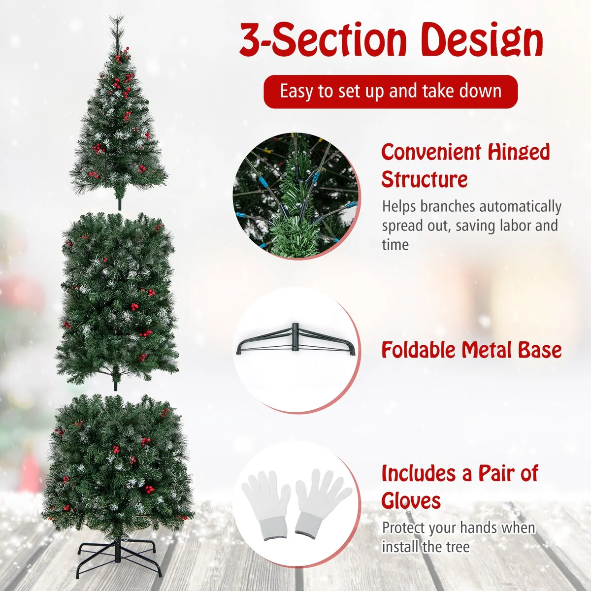 - Effortless Setup and Compact Storage: Equipped with a hinged structure for easy installation and a 3-section design for space-saving storage post-holiday season.