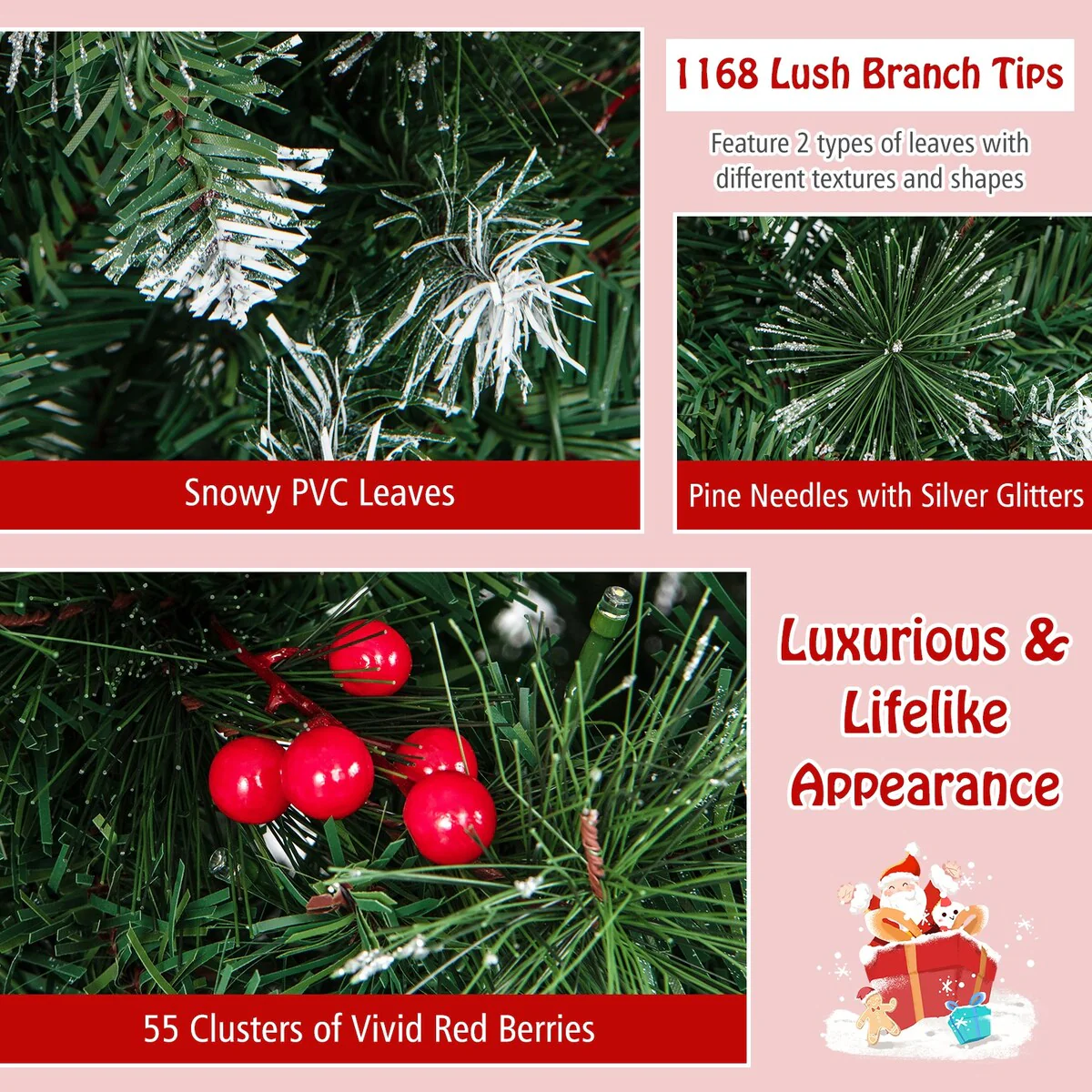 - Luxurious and Realistic Design: Offers 1168 lush branch tips with a mix of snowy PVC leaves and glittering pine needles, complemented by clusters of red berries for natural charm.