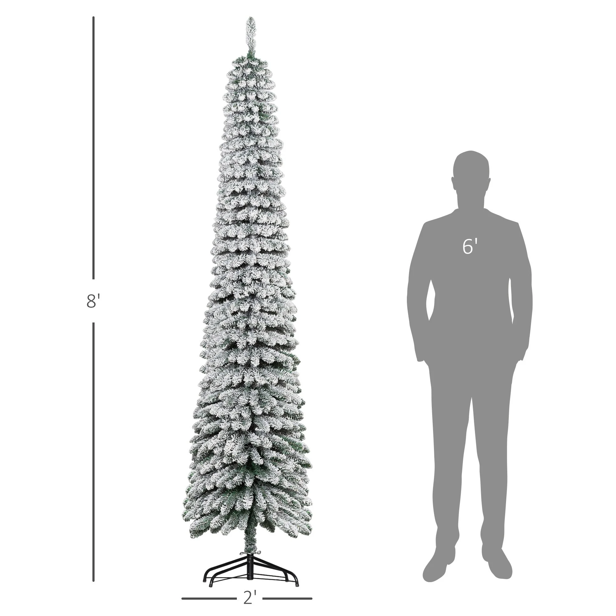 - Slim Pencil Design: The slim profile makes this tree a great choice for tight spaces like apartments or offices while still offering a full, lush look with its snow flocked branches.