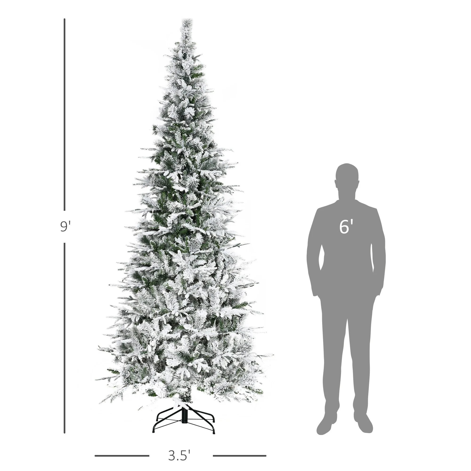 Bring holiday charm into your home with this 9' unlit snow flocked artificial pine Christmas tree. With a lifelike design and 1159 tips, it provides a realistic, full look that elevates your seasonal decor without the upkeep of a real tree.