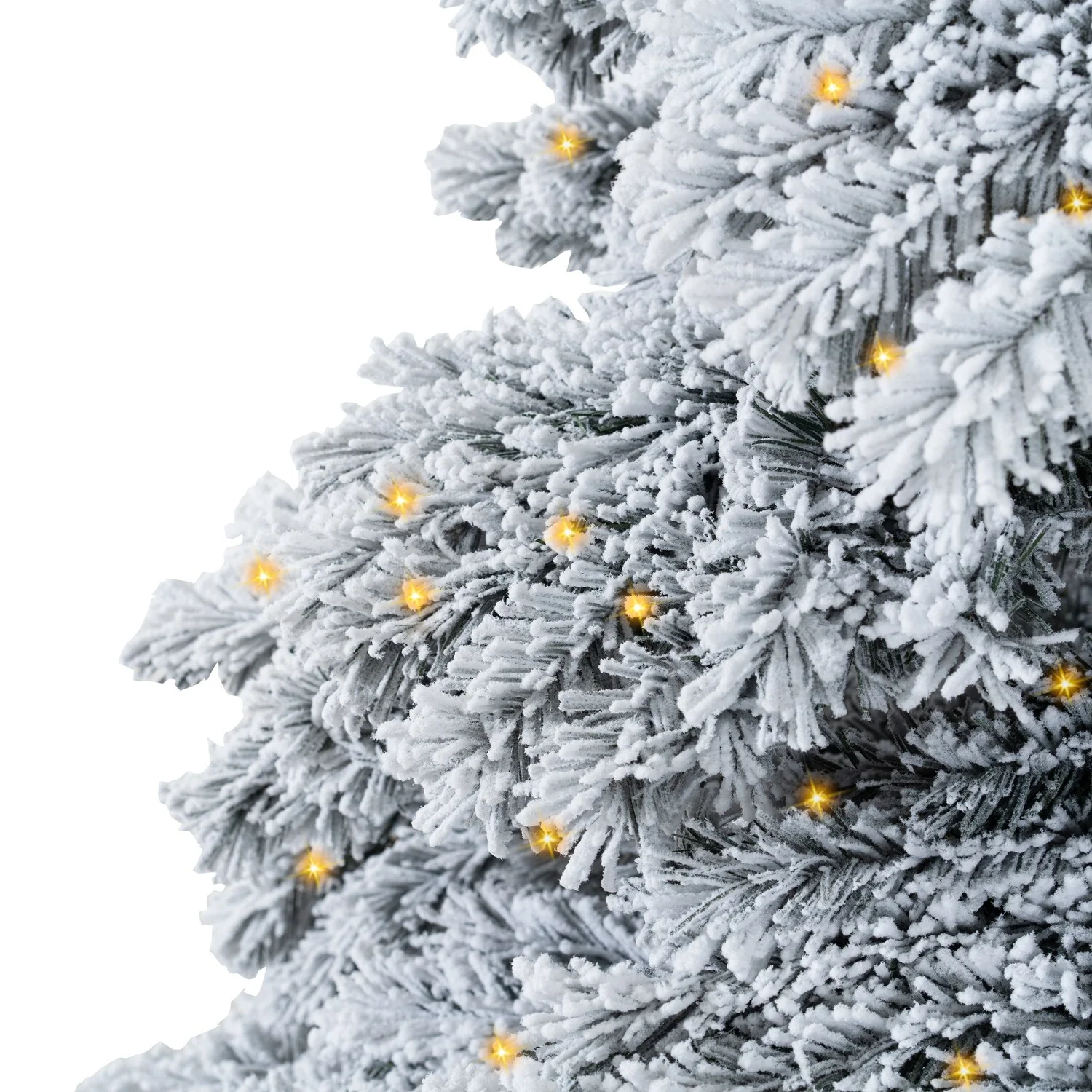 Easy to Assemble: Featuring hinged branches, this flocked pre-lit Christmas tree is easy to assemble and disassemble. The branches fall into place for effortless fluffing and fold back up for convenient storage. Our proprietary packaging guarantees the safe delivery of the frosted Christmas tree to your home. The tree comes with a 90-day manufacturer's warranty, and our customer support team is available for easy refunds or replacements if needed.
