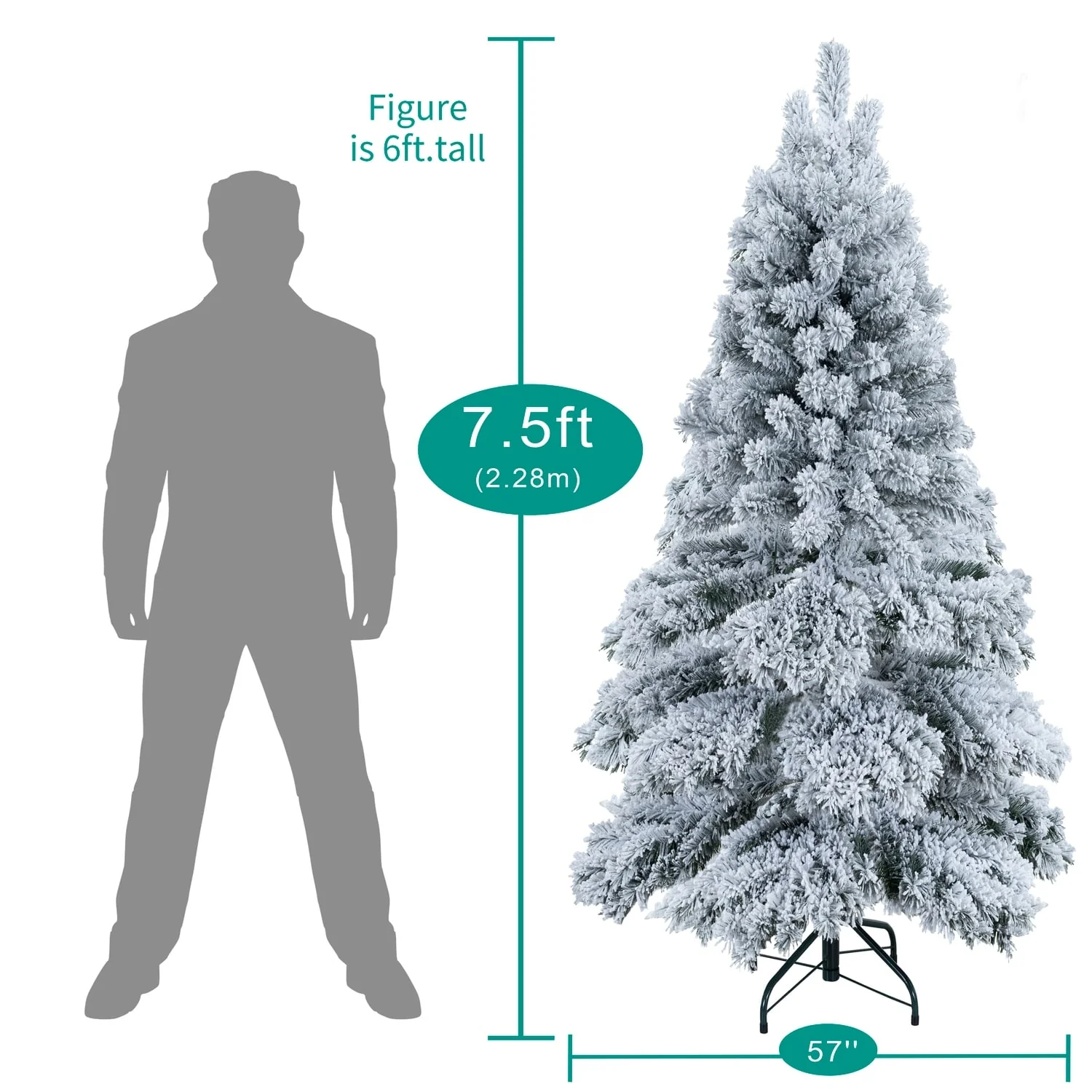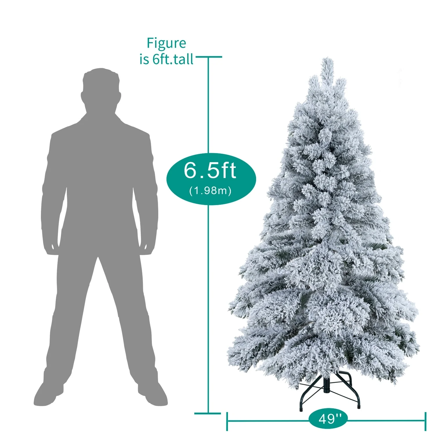 No Additional Lights Needed: This pre-lit Christmas tree comes with 650 incandescent lights, simplifying the setup process. These lights emit a warm glow, highlighting your decorations and holiday gifts, making your snow flocked Christmas tree extra special.