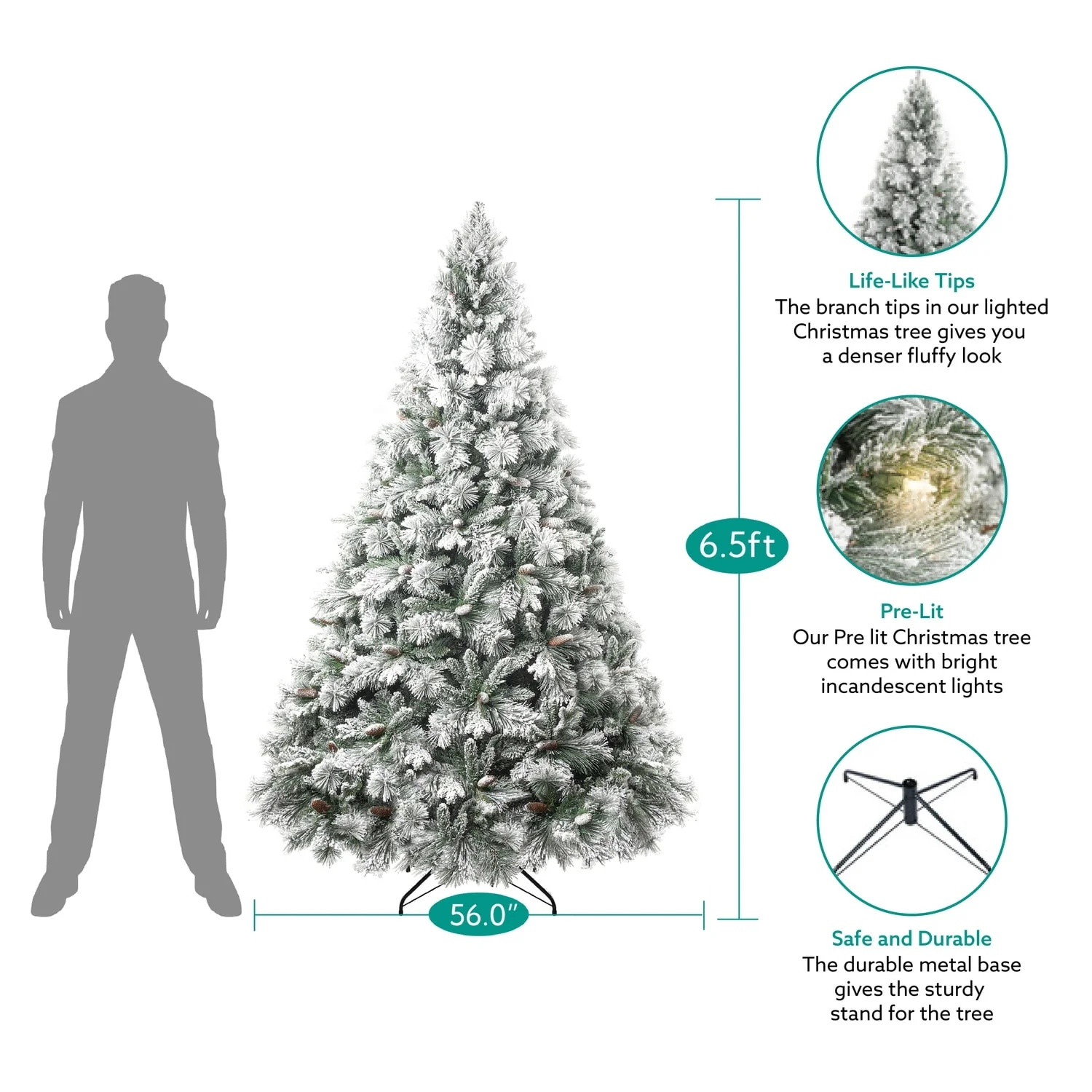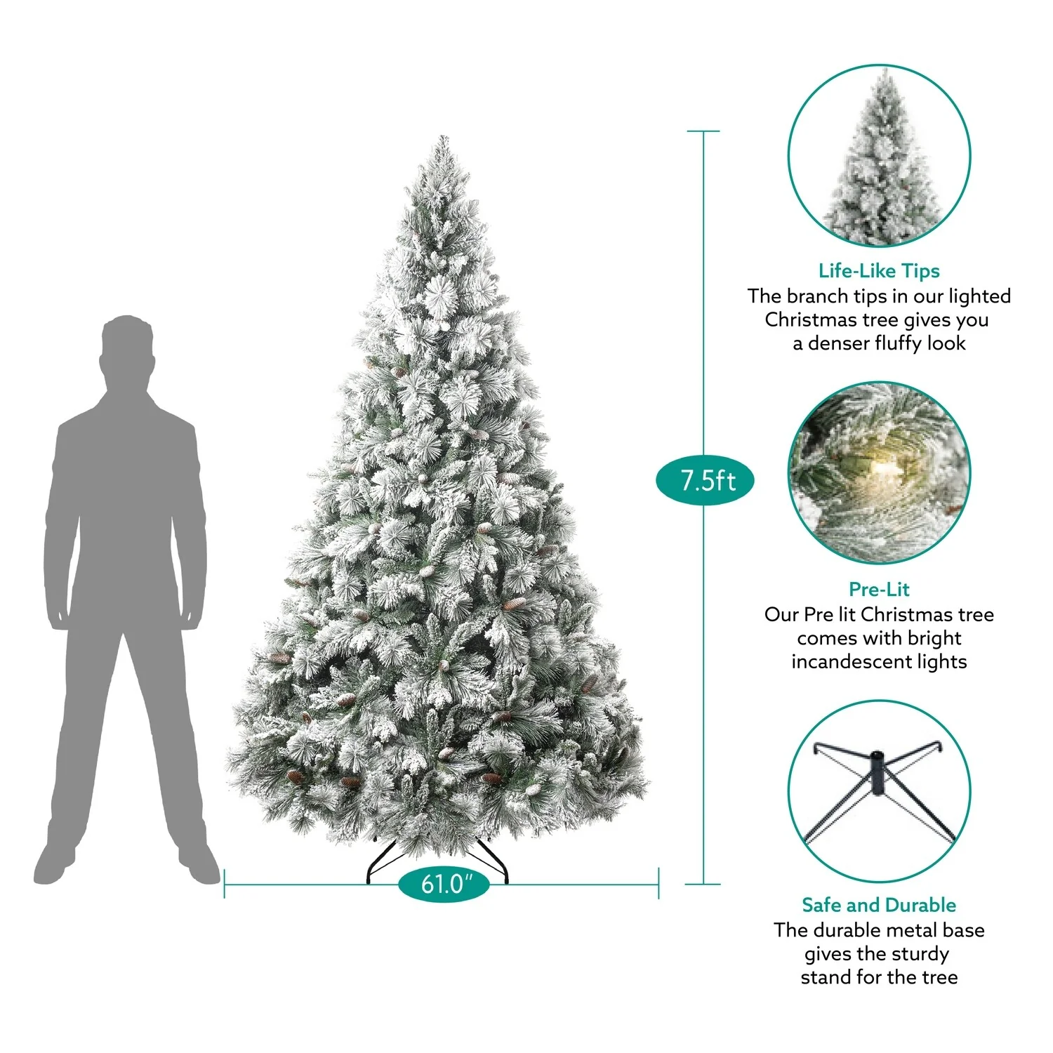 - DURABLE & LONGLASTING: Built with high quality metal hinges and non-flammable PVC branches. The durable metal base gives the sturdy stand for the tree girth prelit Christmas tree to bring the holiday Christmas cheer.