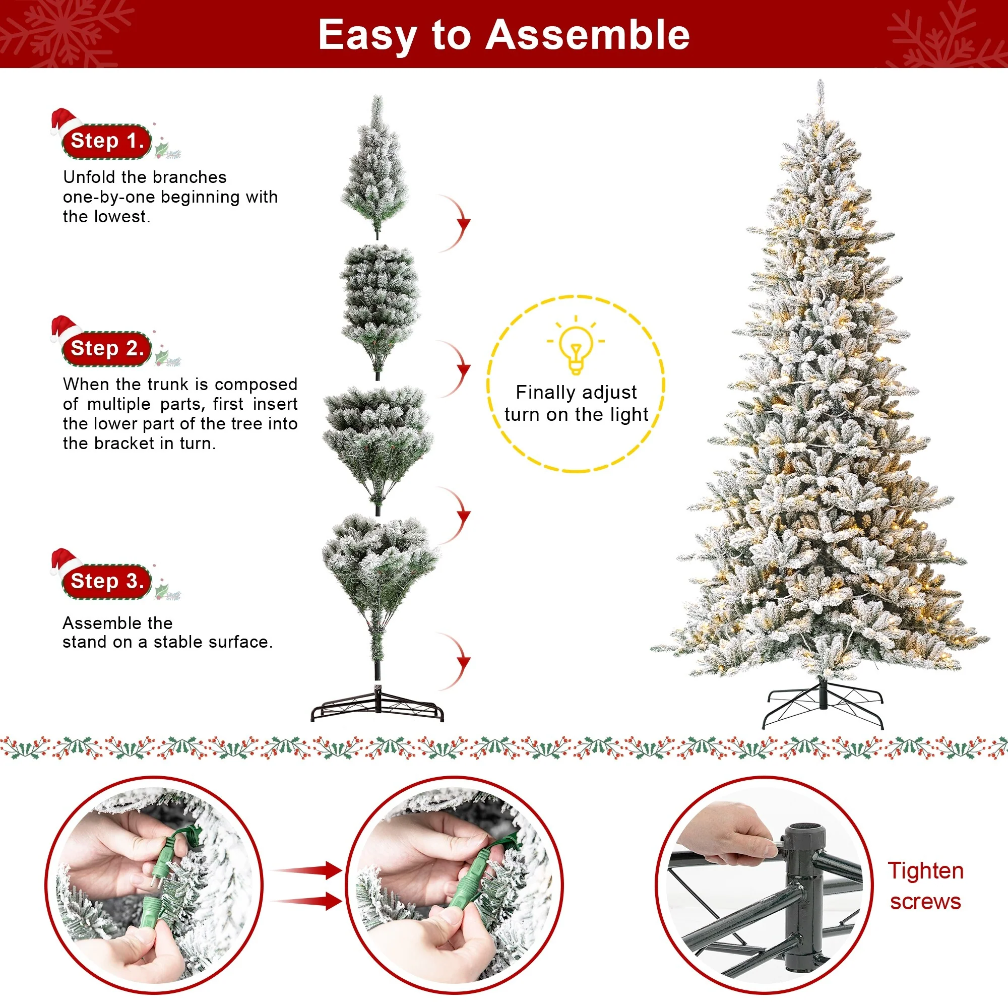 - Heavy flocked artificial 3D fir needles, to create a fragrant Christmas atmosphere.