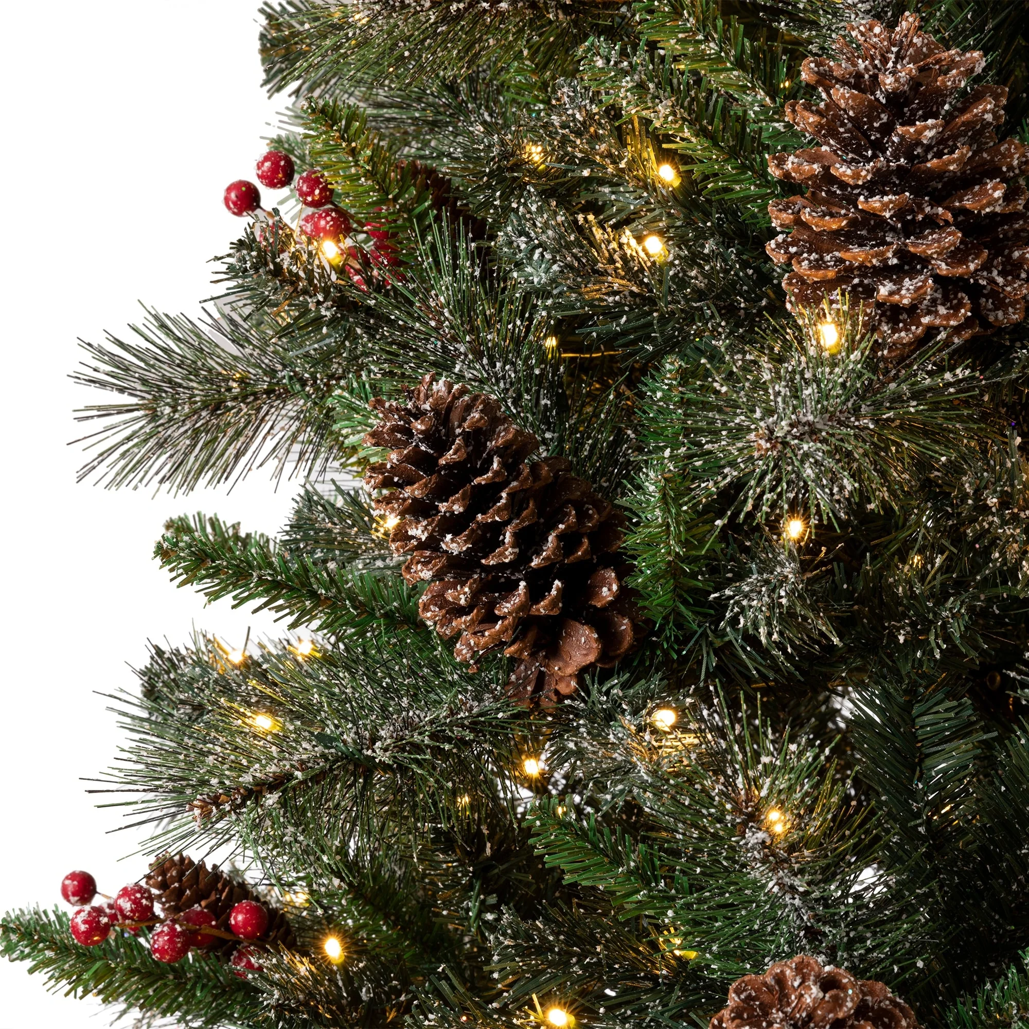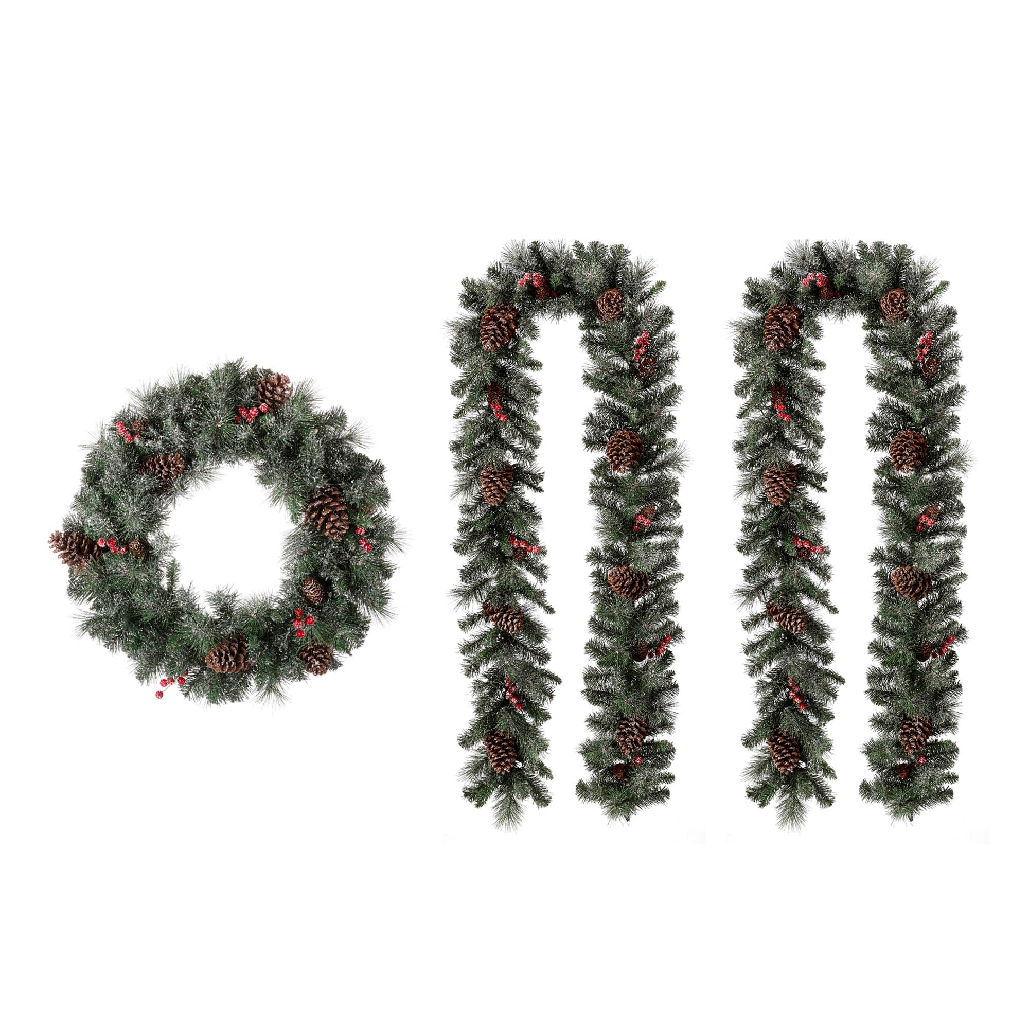 - Garland Tips: 180 (Pine Needle: 40, PVC Tips: 140); Round Pine Cones: 8, Long Pine Cones: 8, Red Berries: 8 Clusters, 6PCS/Cluster