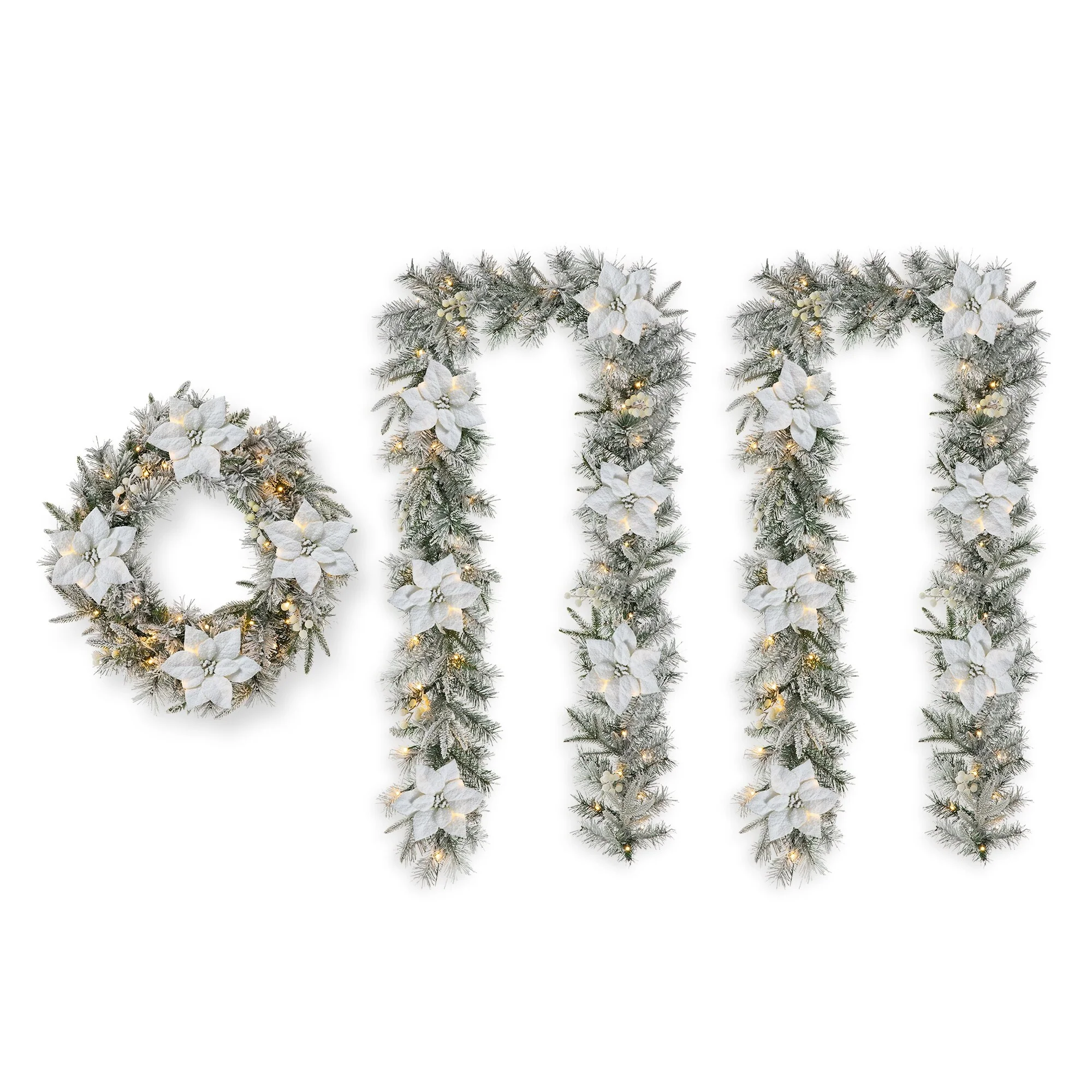 • Garland 90 PVC Tips, 15 PE Tips, 6 Poinsettia, 6 Cluster berries(12pcs/Cluster), 50 Warm White LED Lights