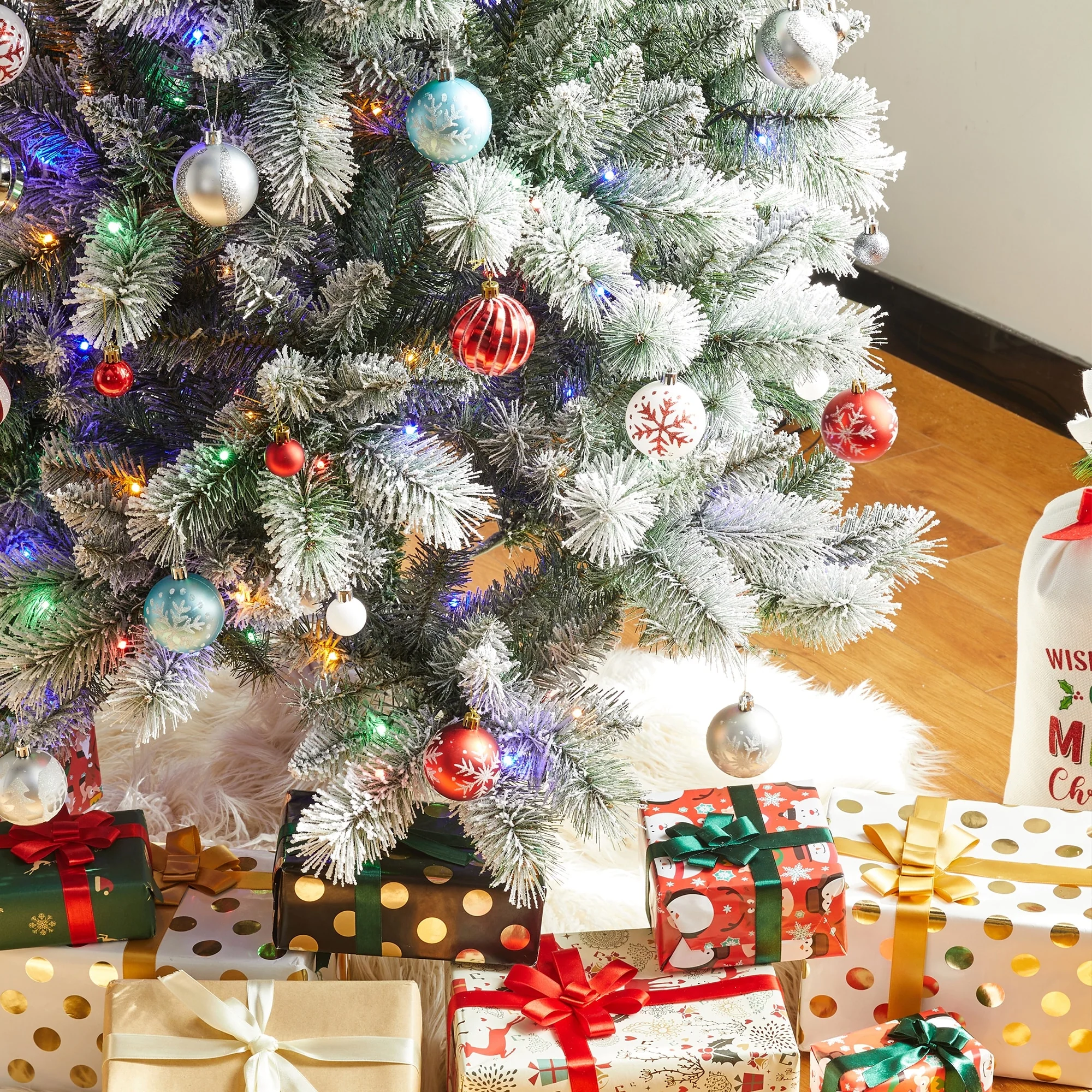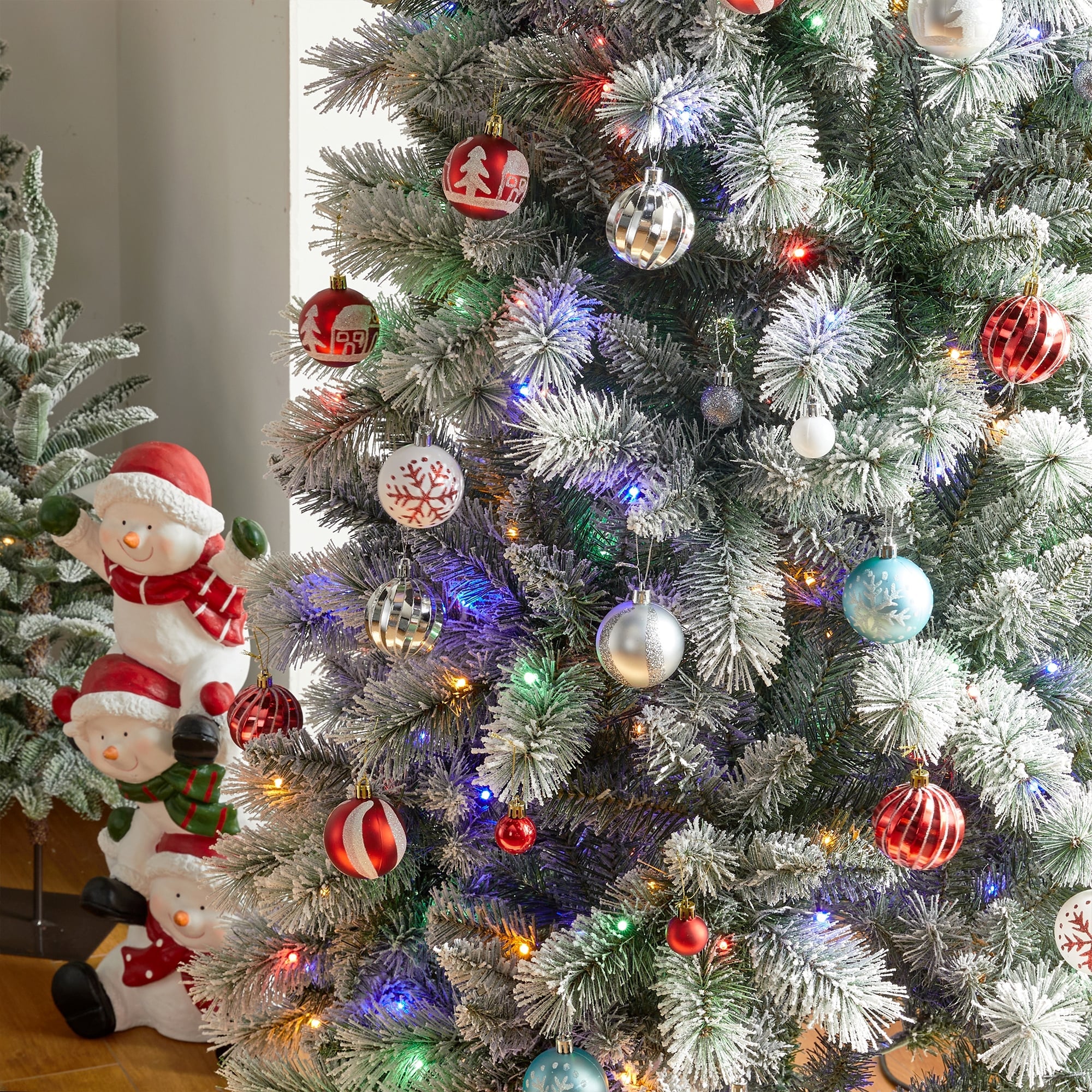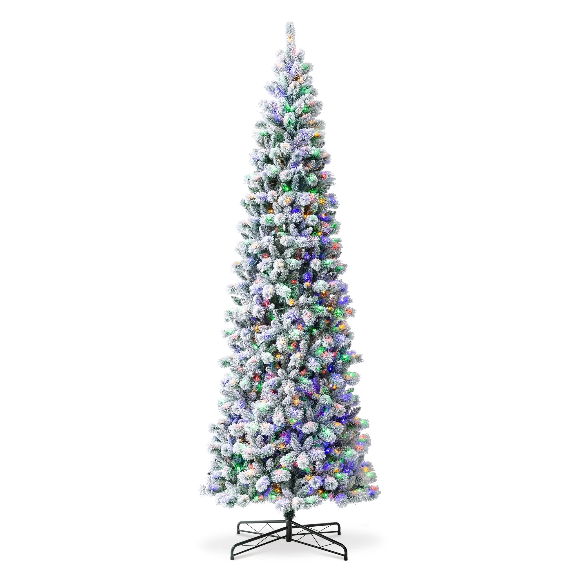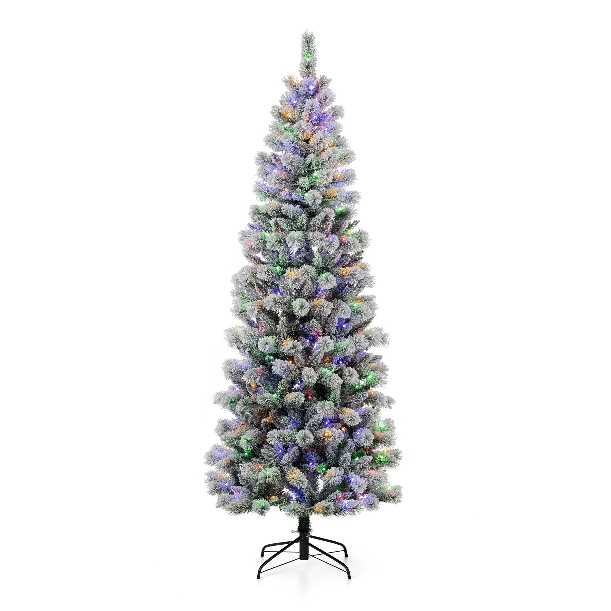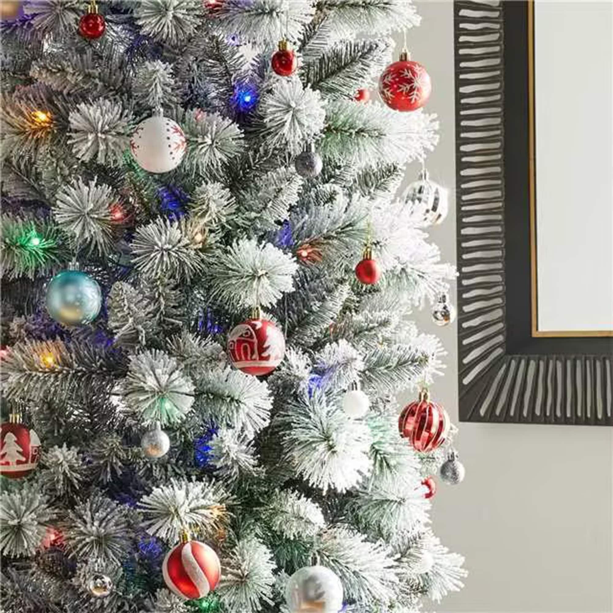 Glitzhome 7.5ft/9ft/11ft Pre-Lit Flocked Multi-color Artificial Christmas Tree with Remote Controller