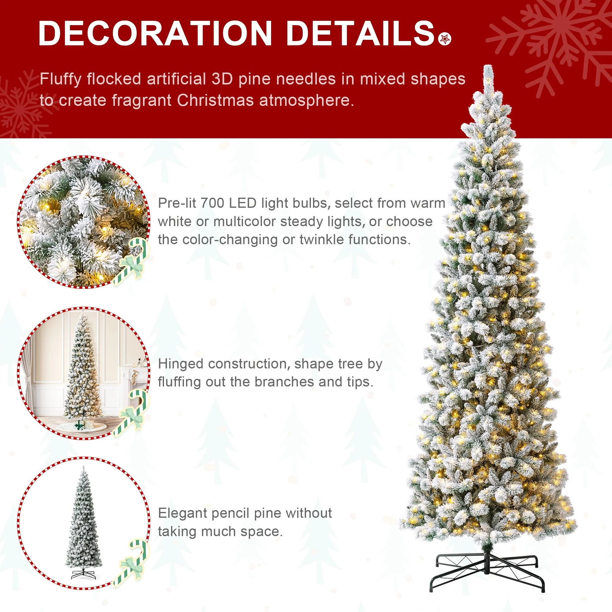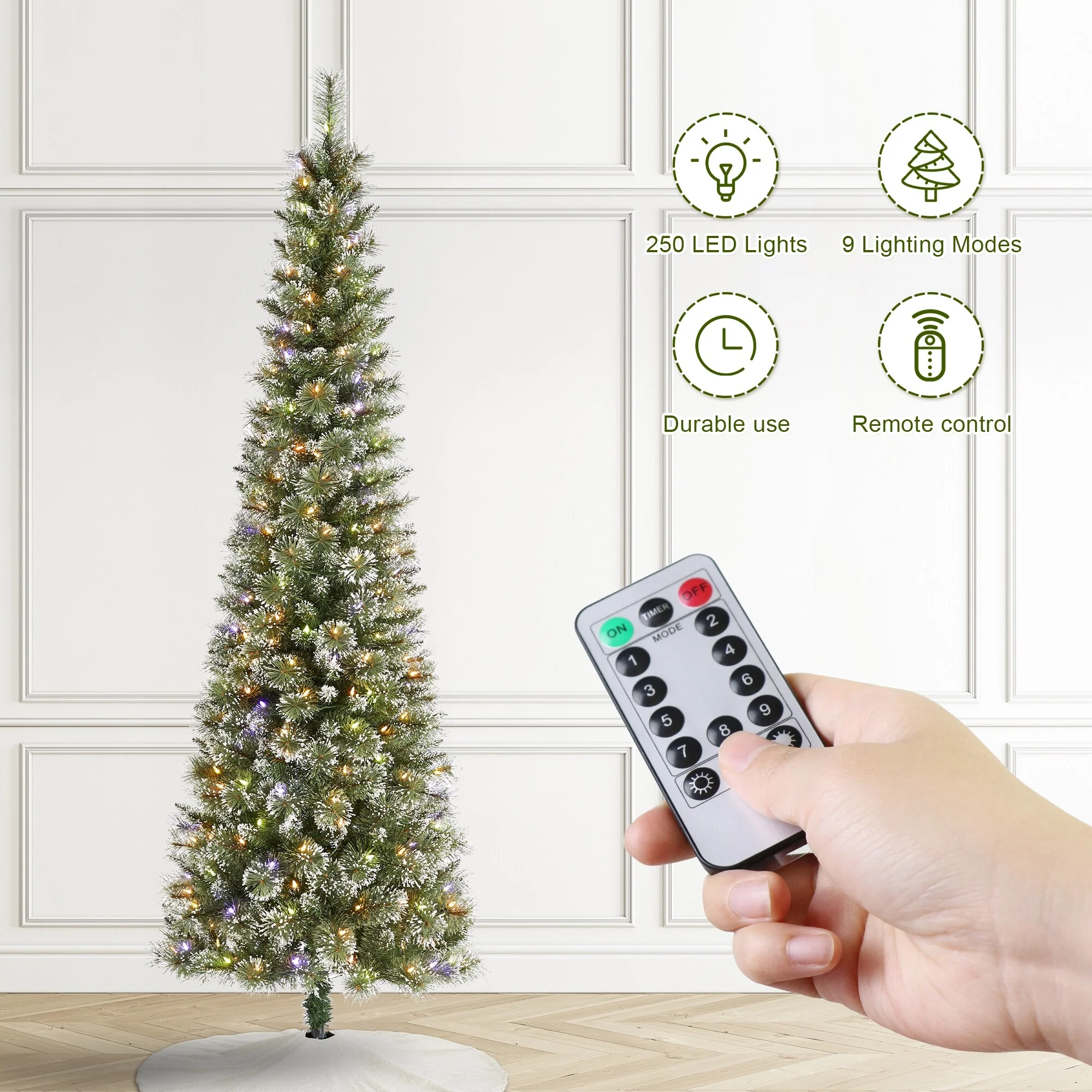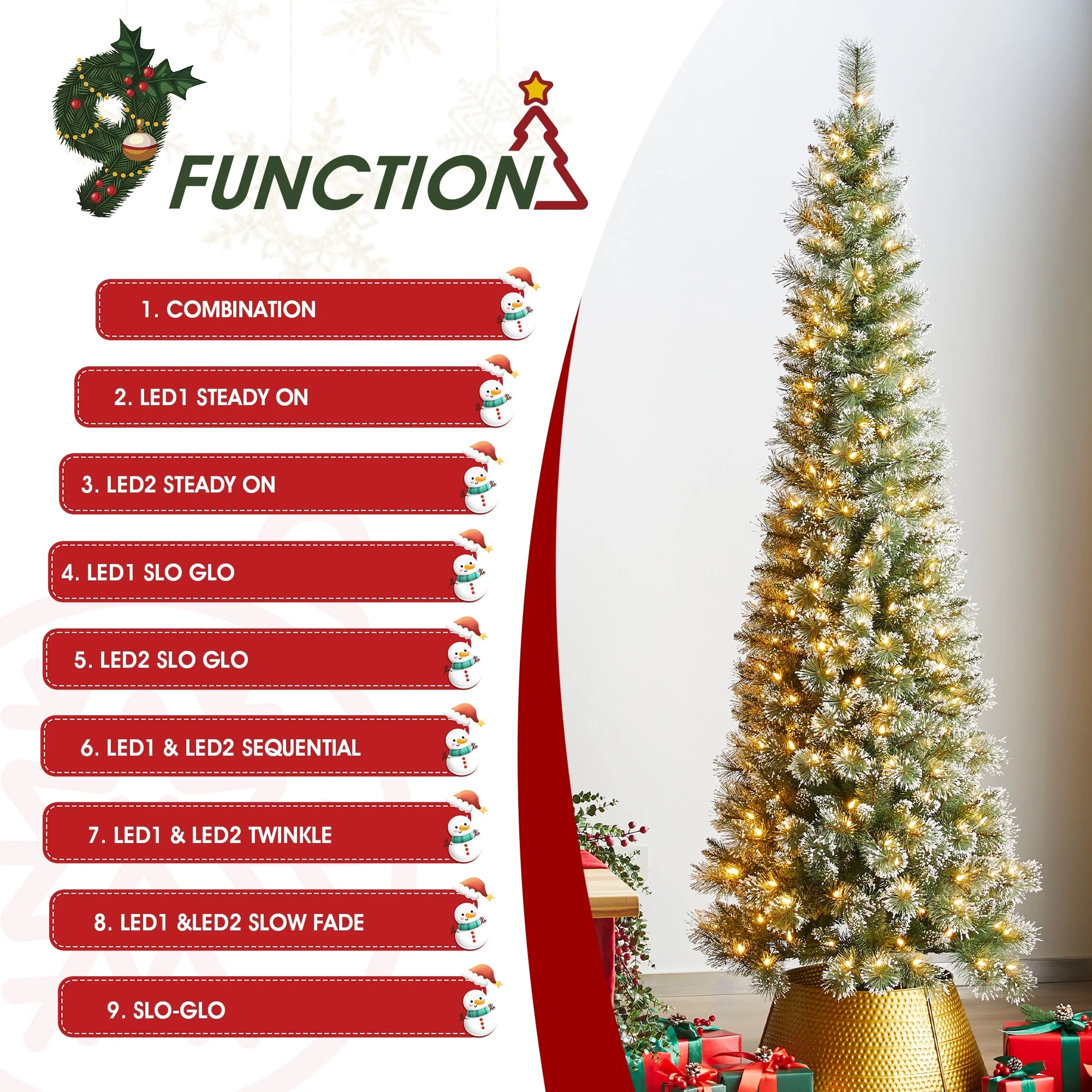 • Created with 3D branches and pre-lit LED lights, featuring 9 modes of lighting to create a fragrant Christmas atmosphere.