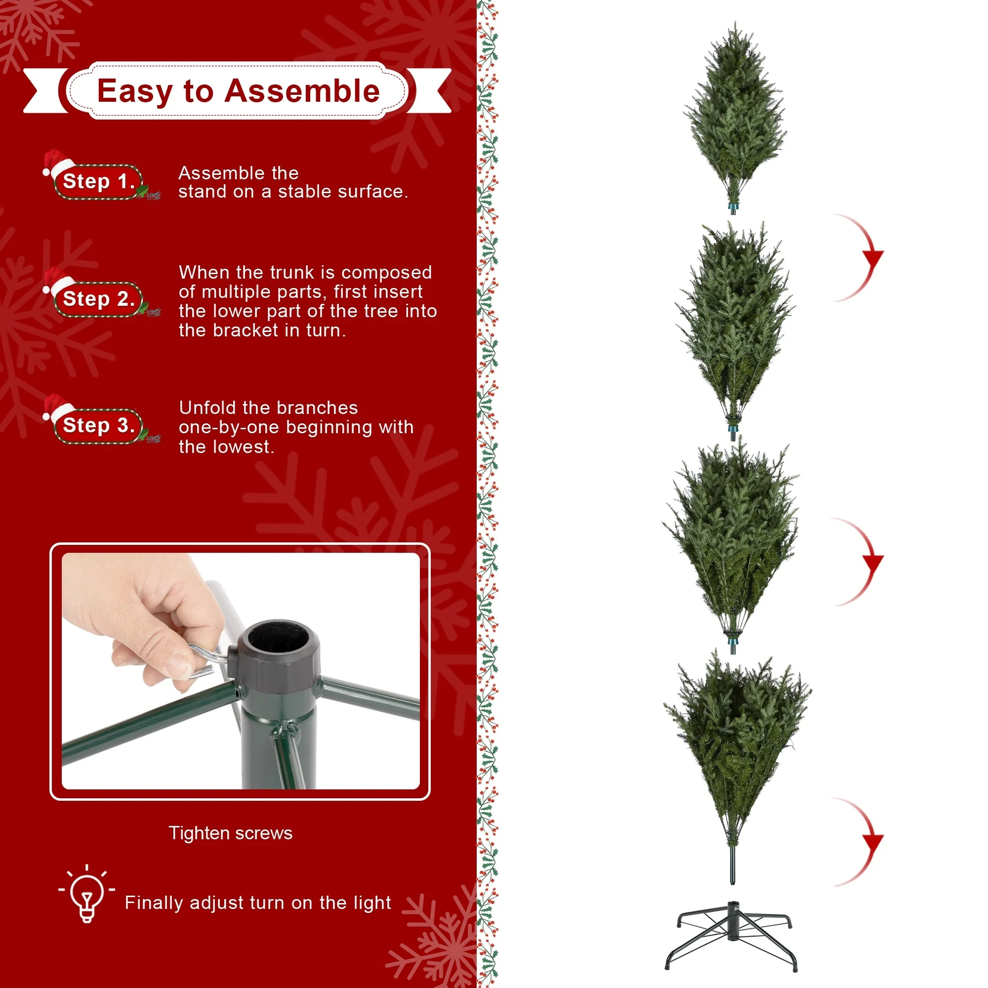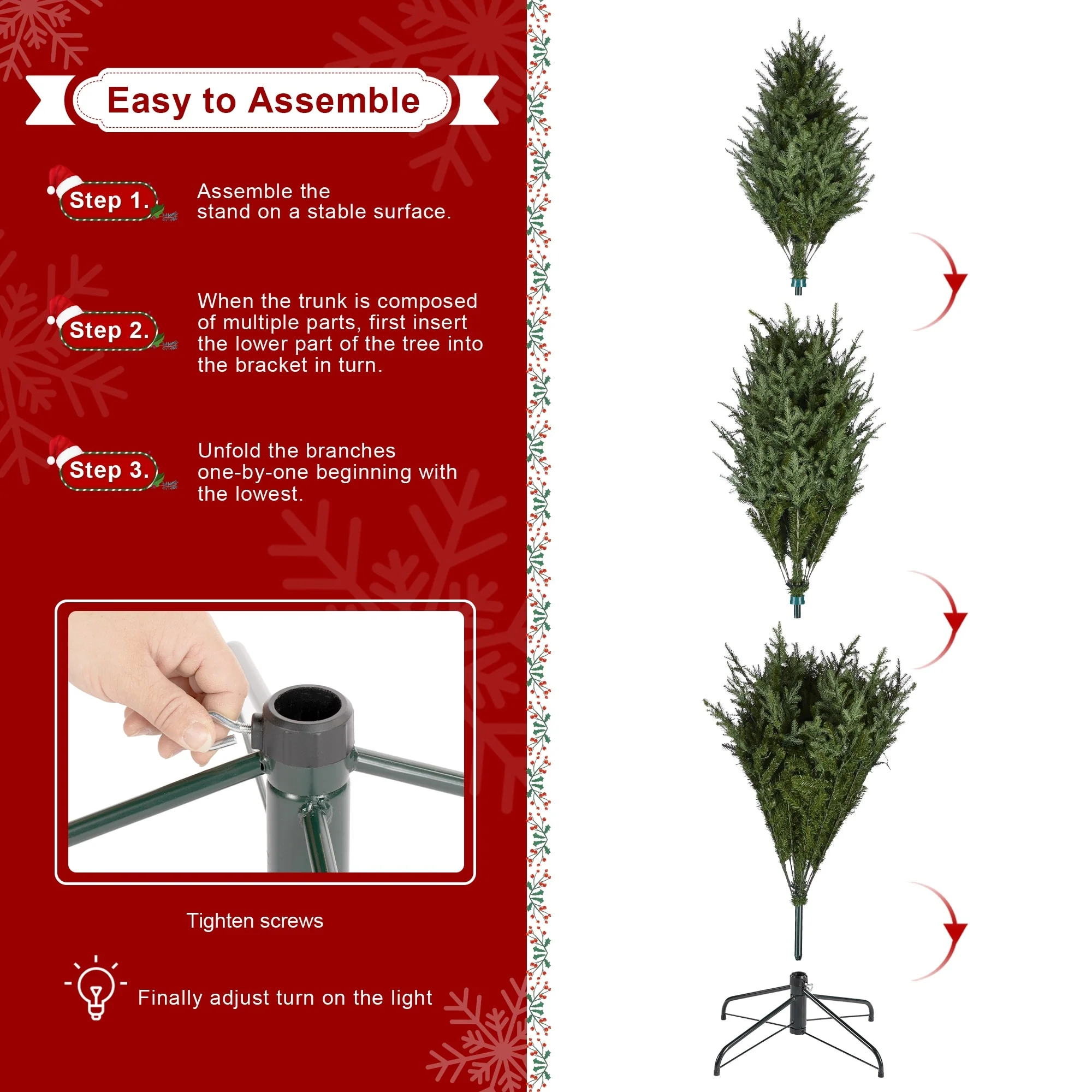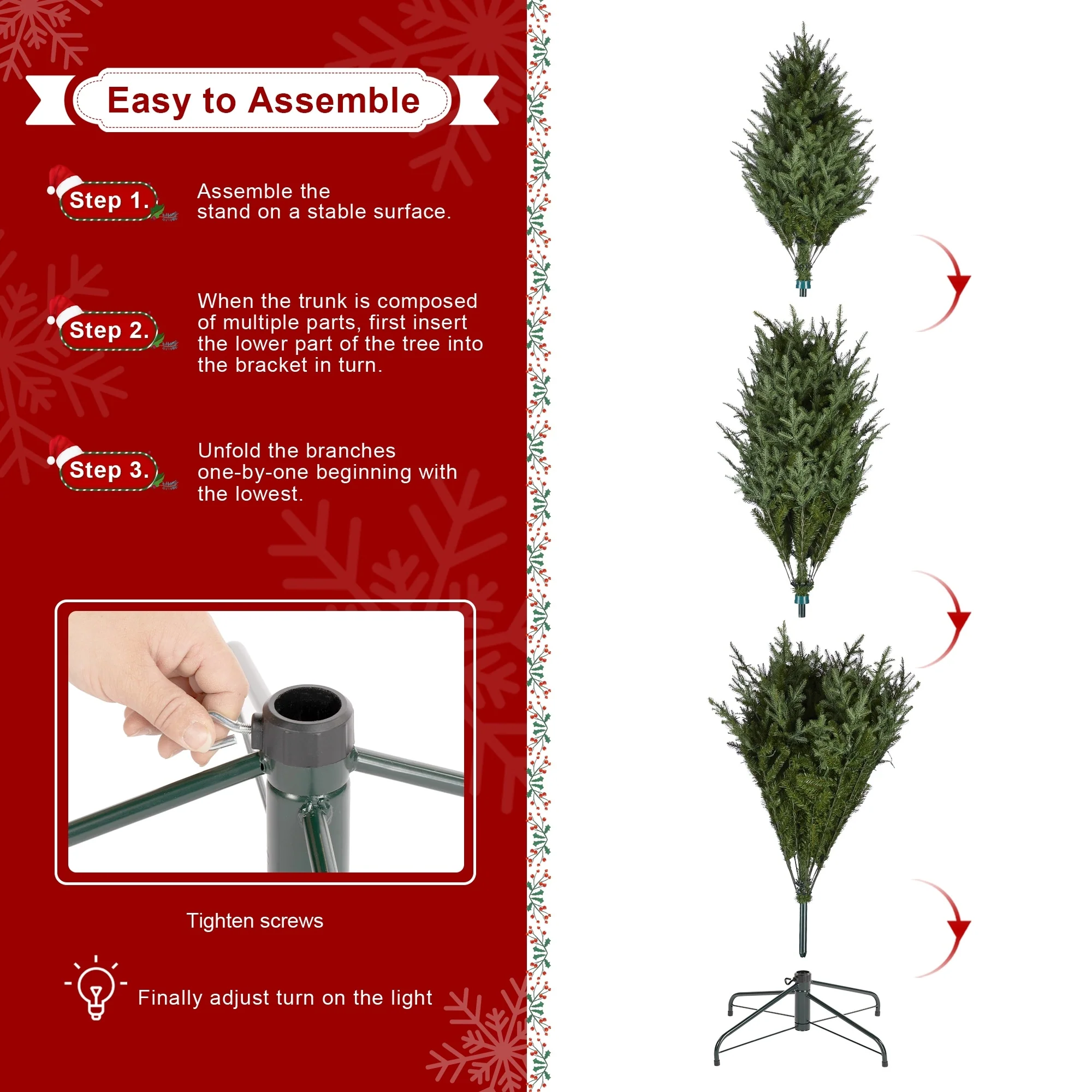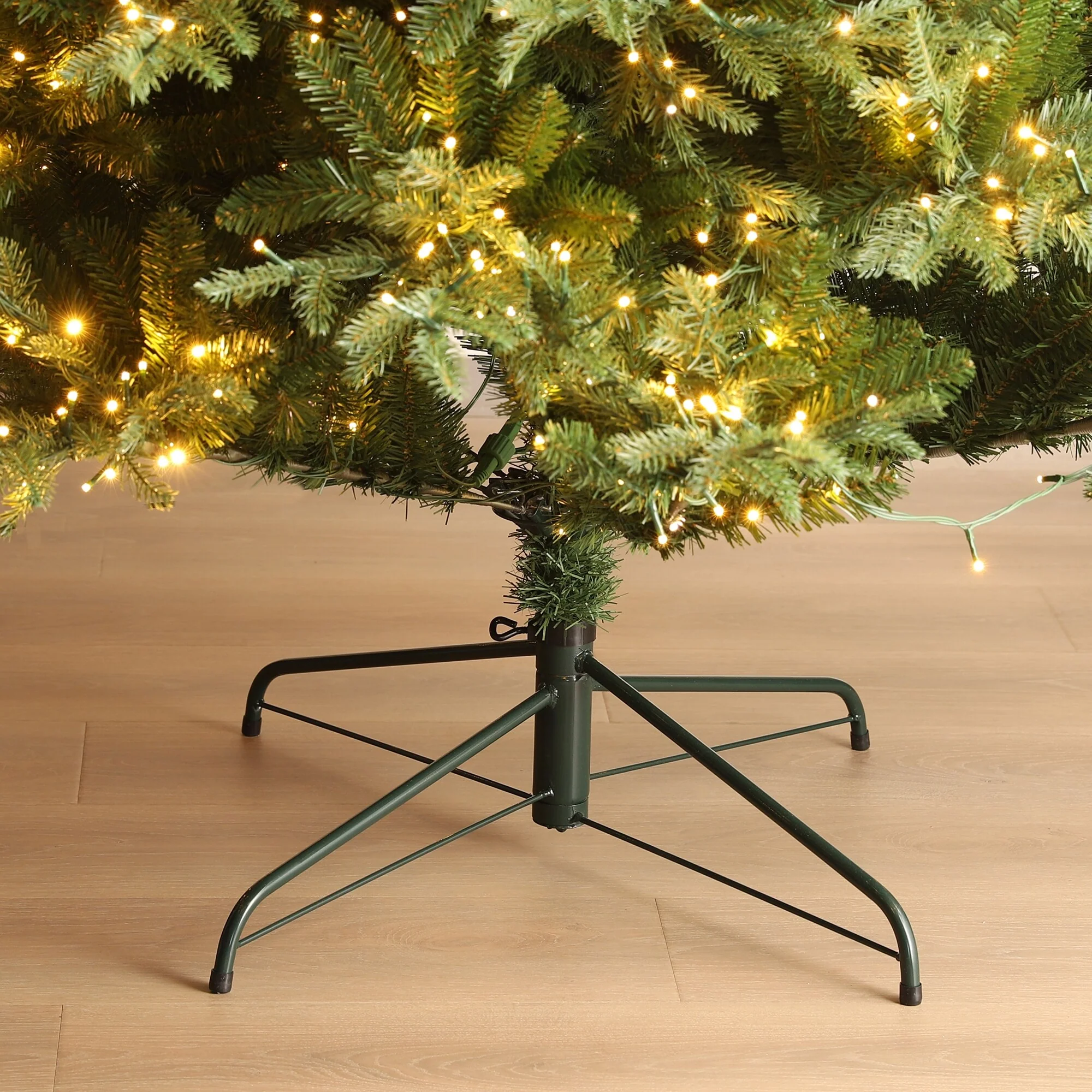 - Natural and realistic full fir tree with sturdy steel metal stand, fits beautifully in both large and small spaces.