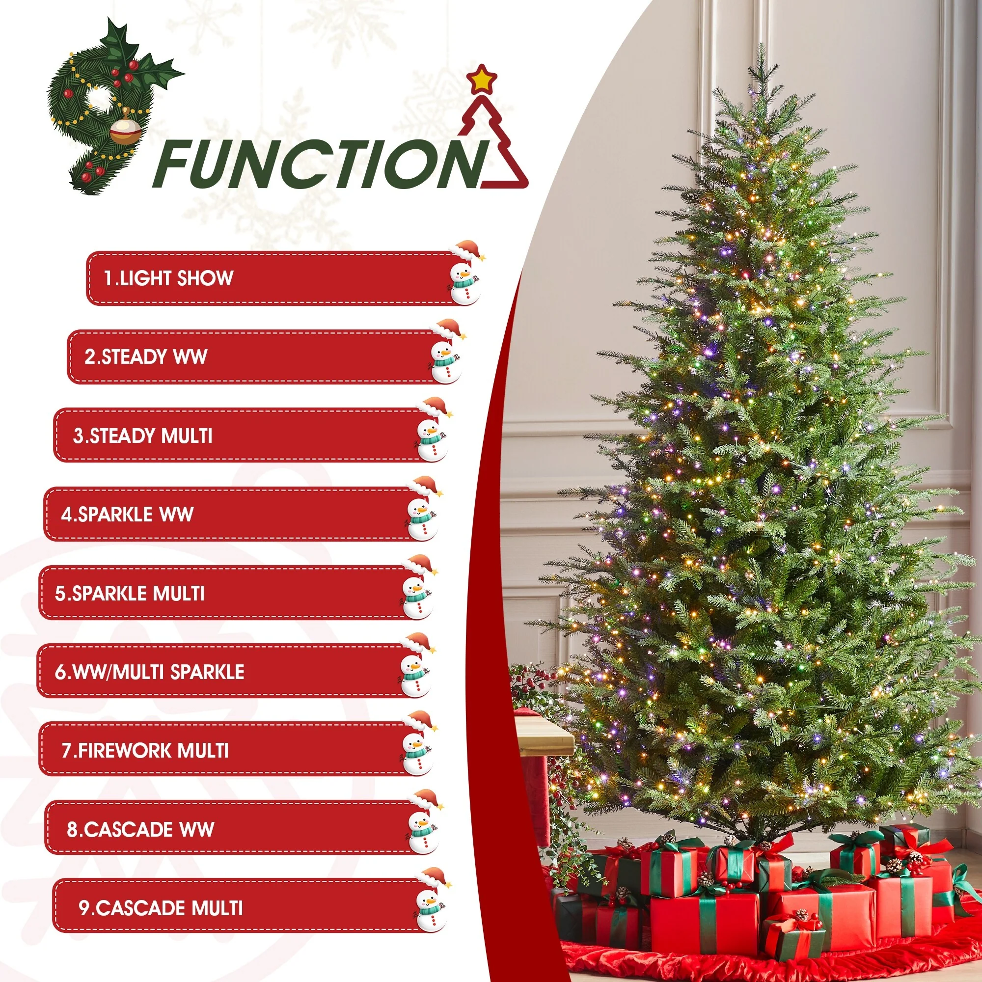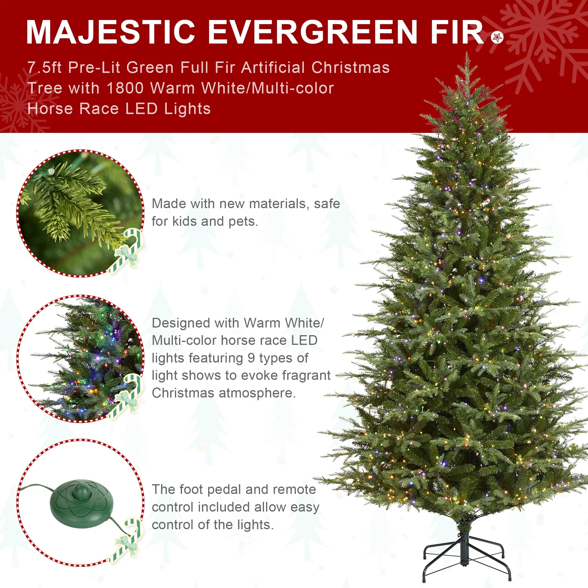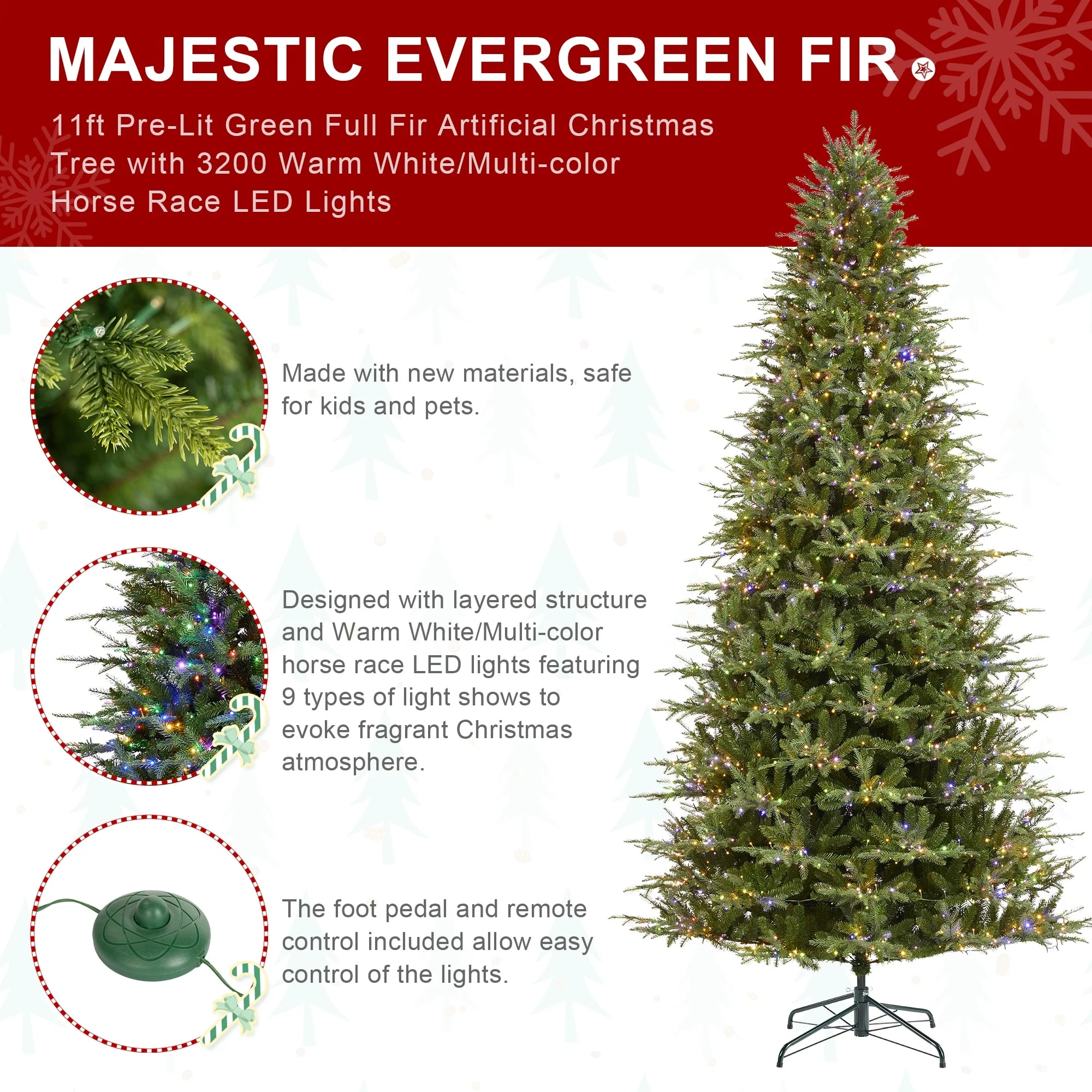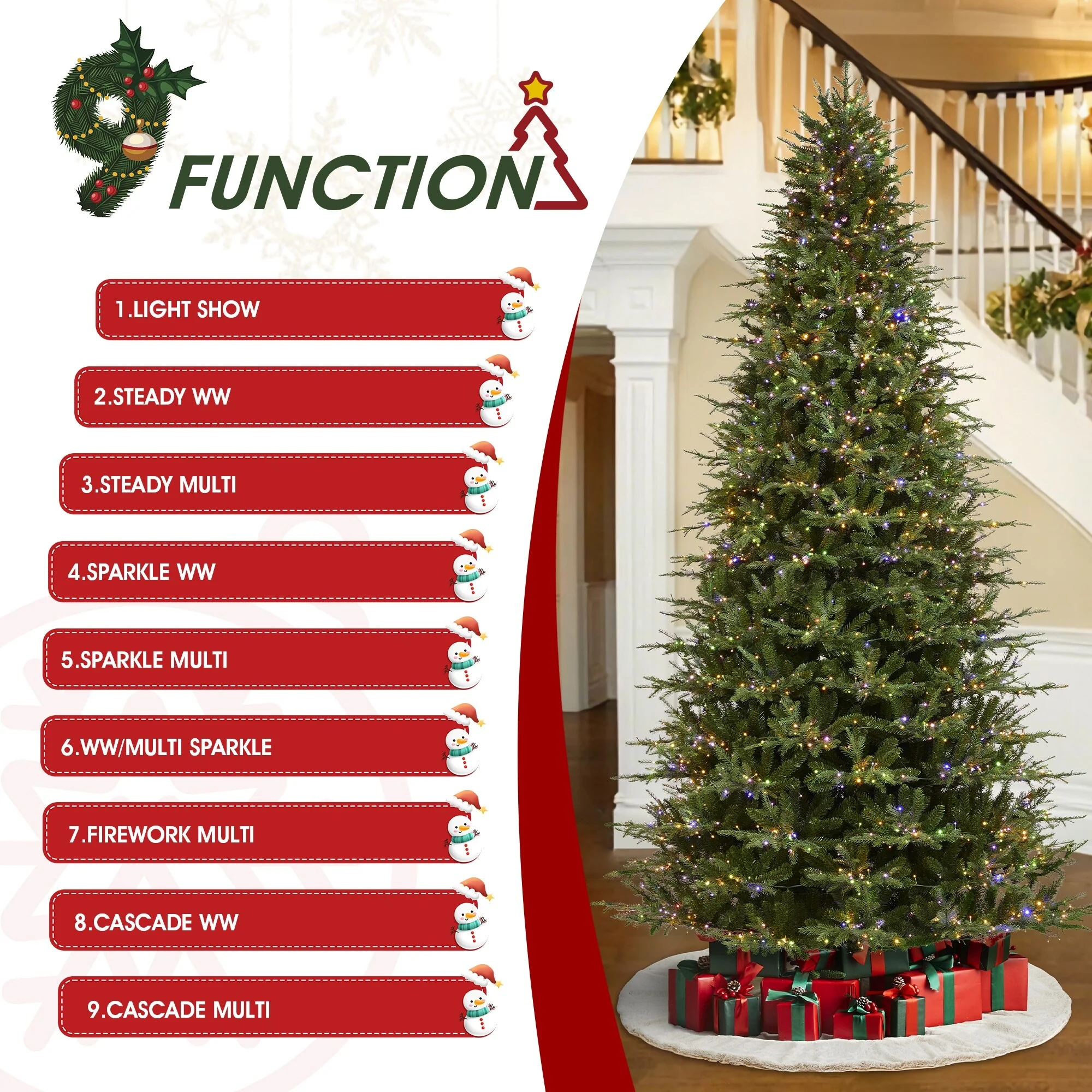 - Designed with Warm White/Multi-color horse race LED lights, featuring nine types of light shows to evoke a fragrant Christmas atmosphere.