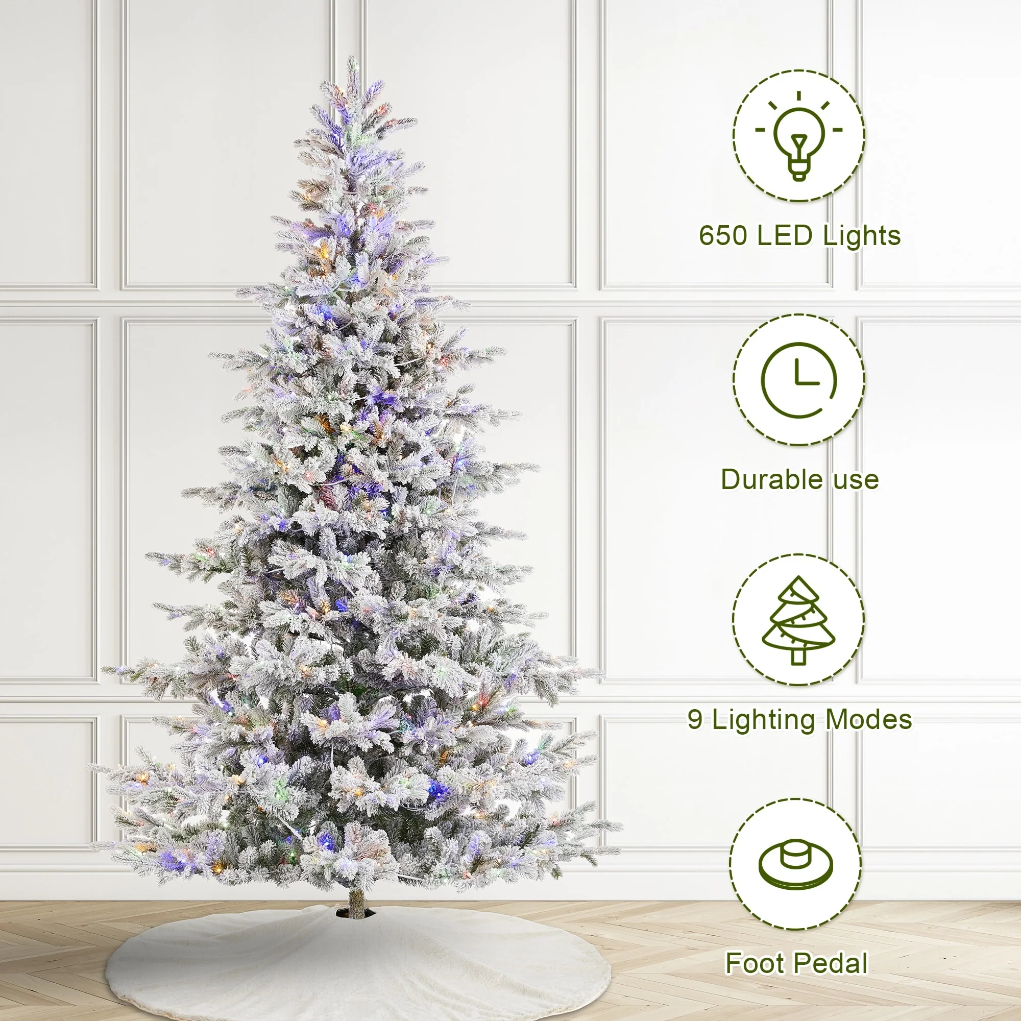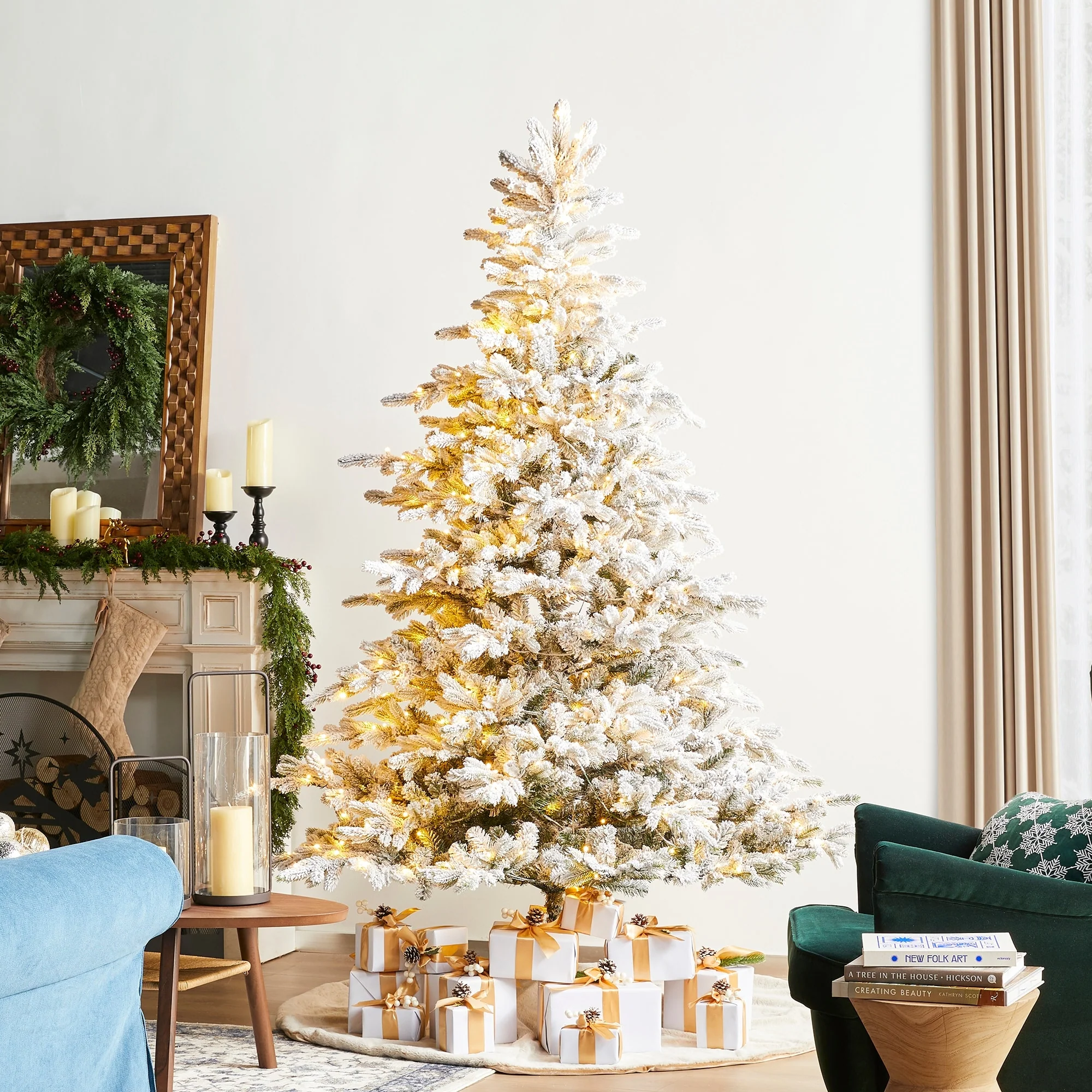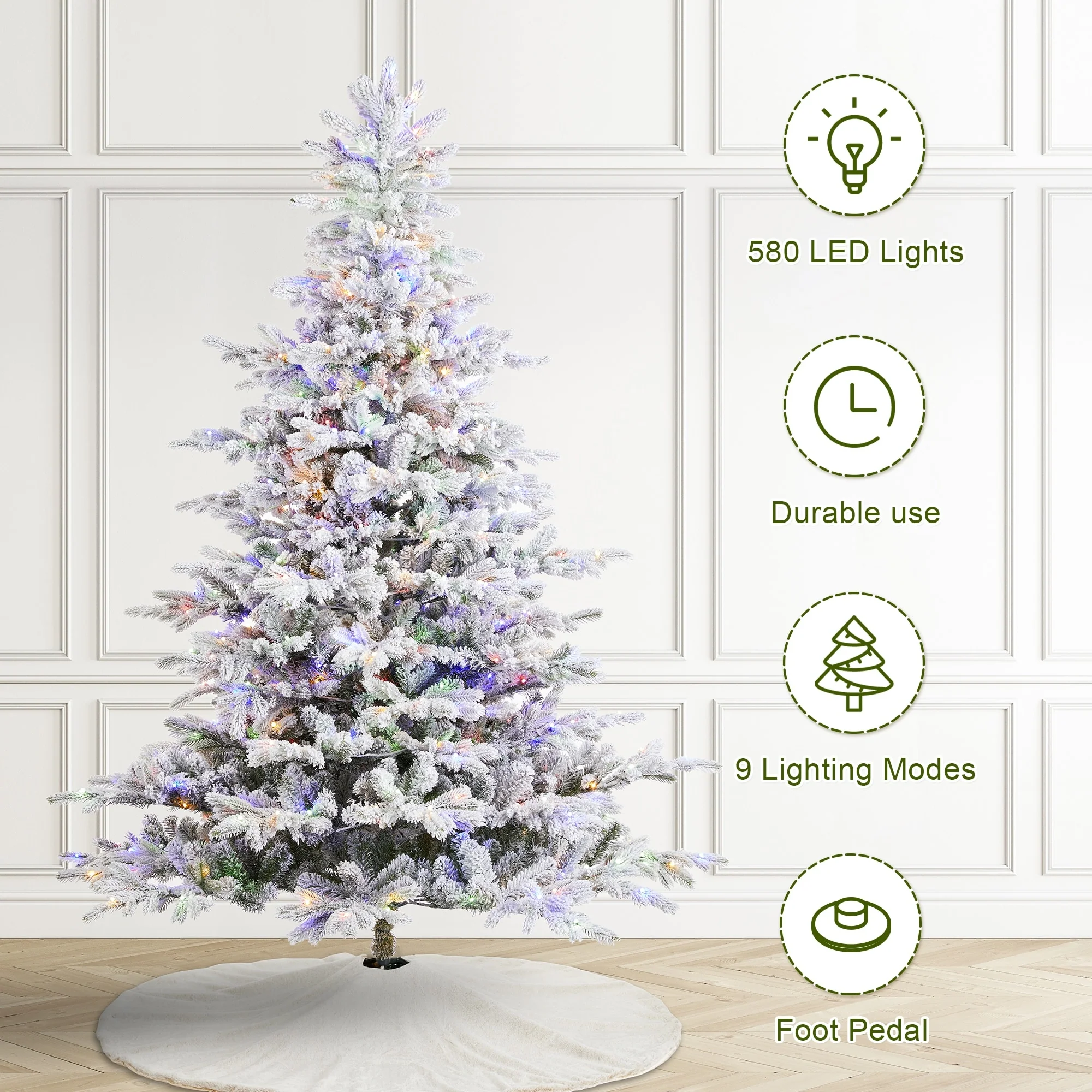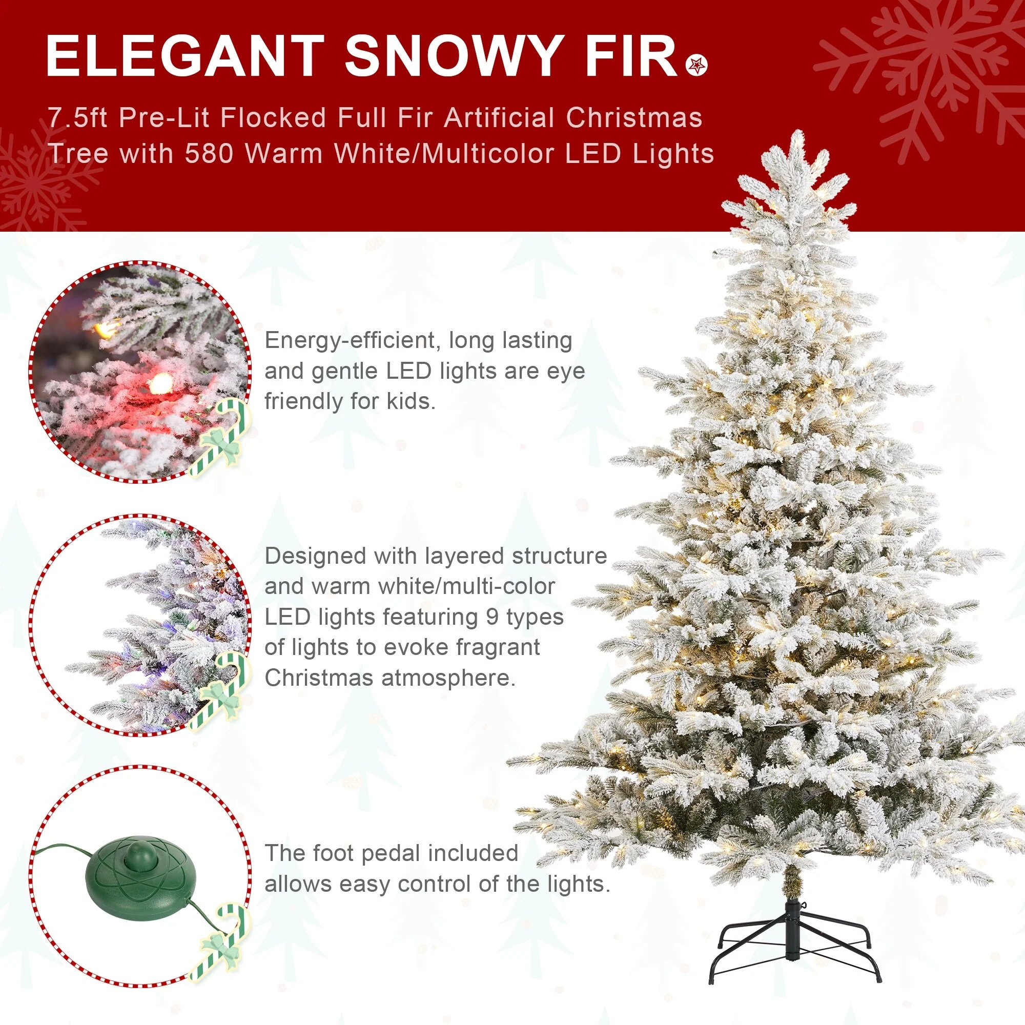 Glitzhome 7.5ft/9ft Pre-Lit Flocked Full Fir Artificial Christmas Trees with Foot Pedal