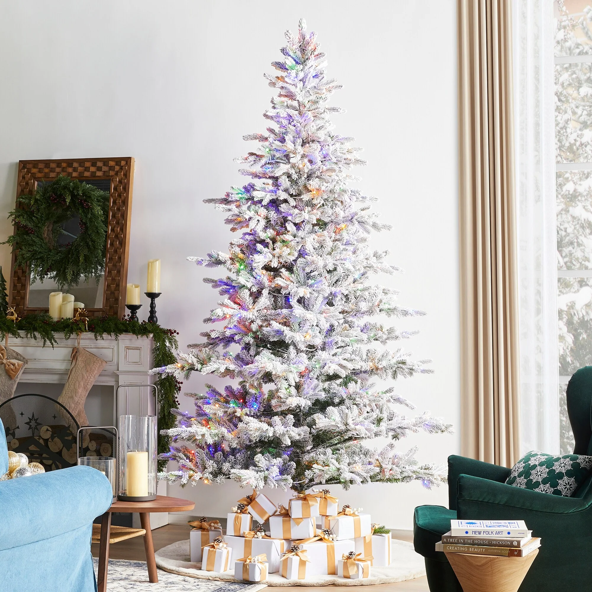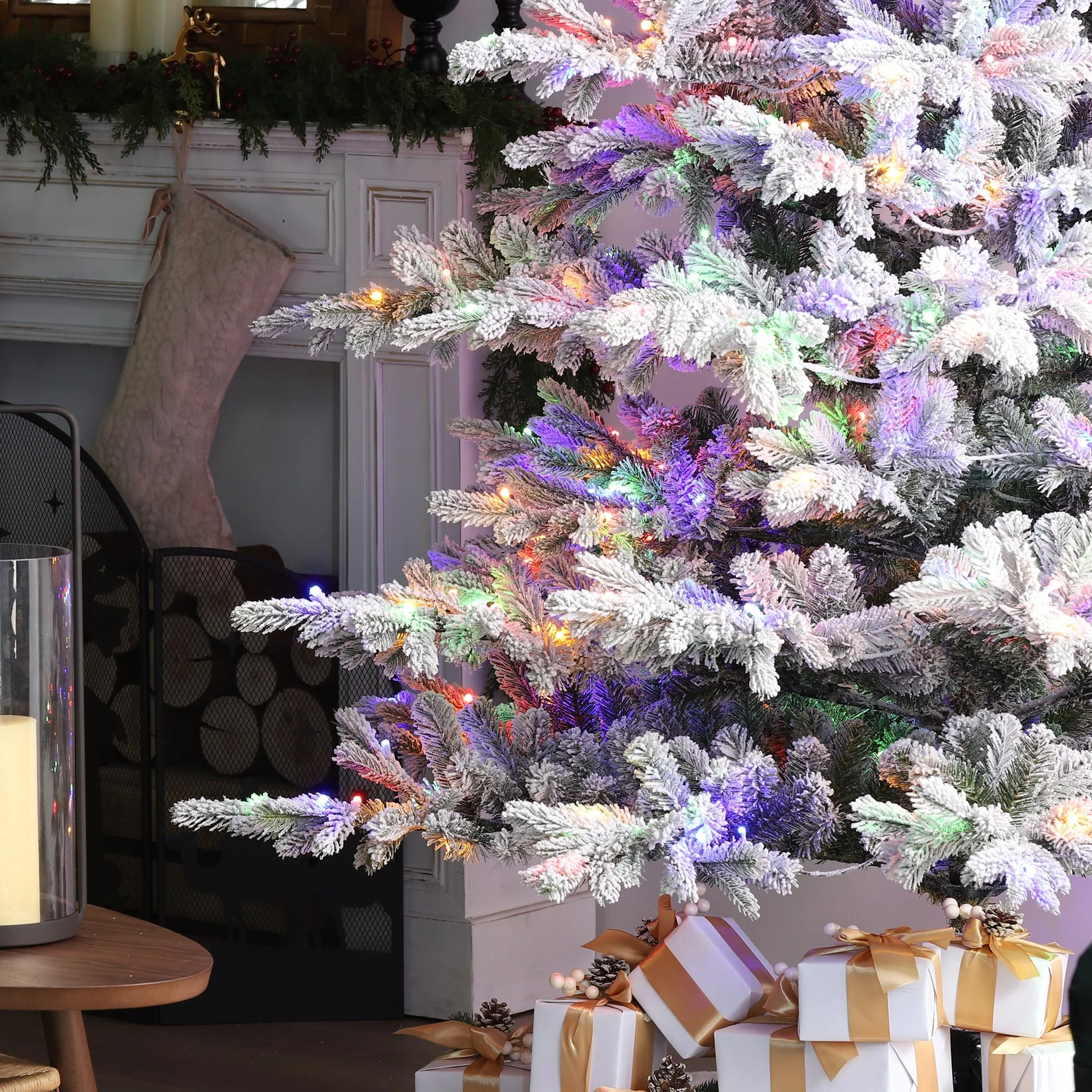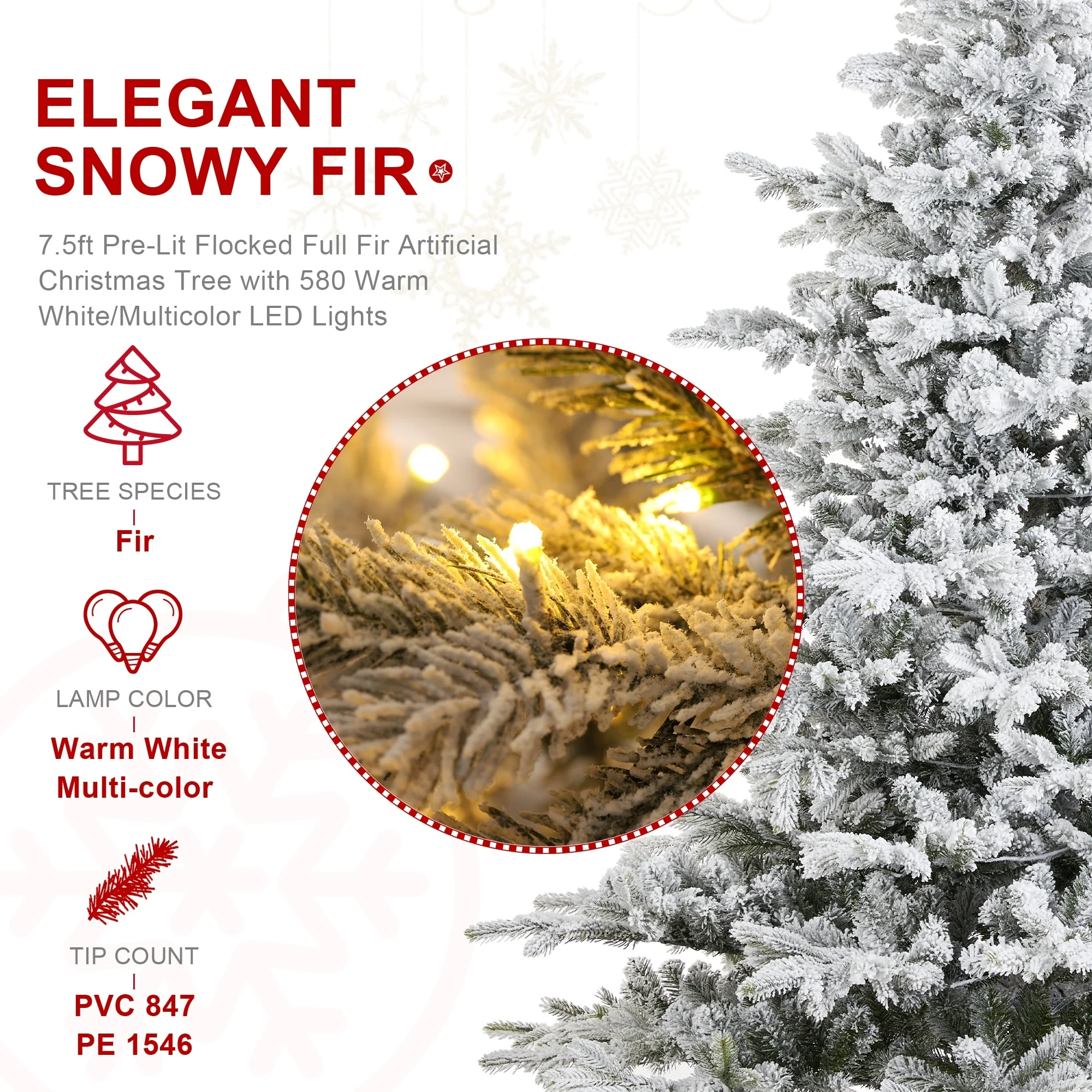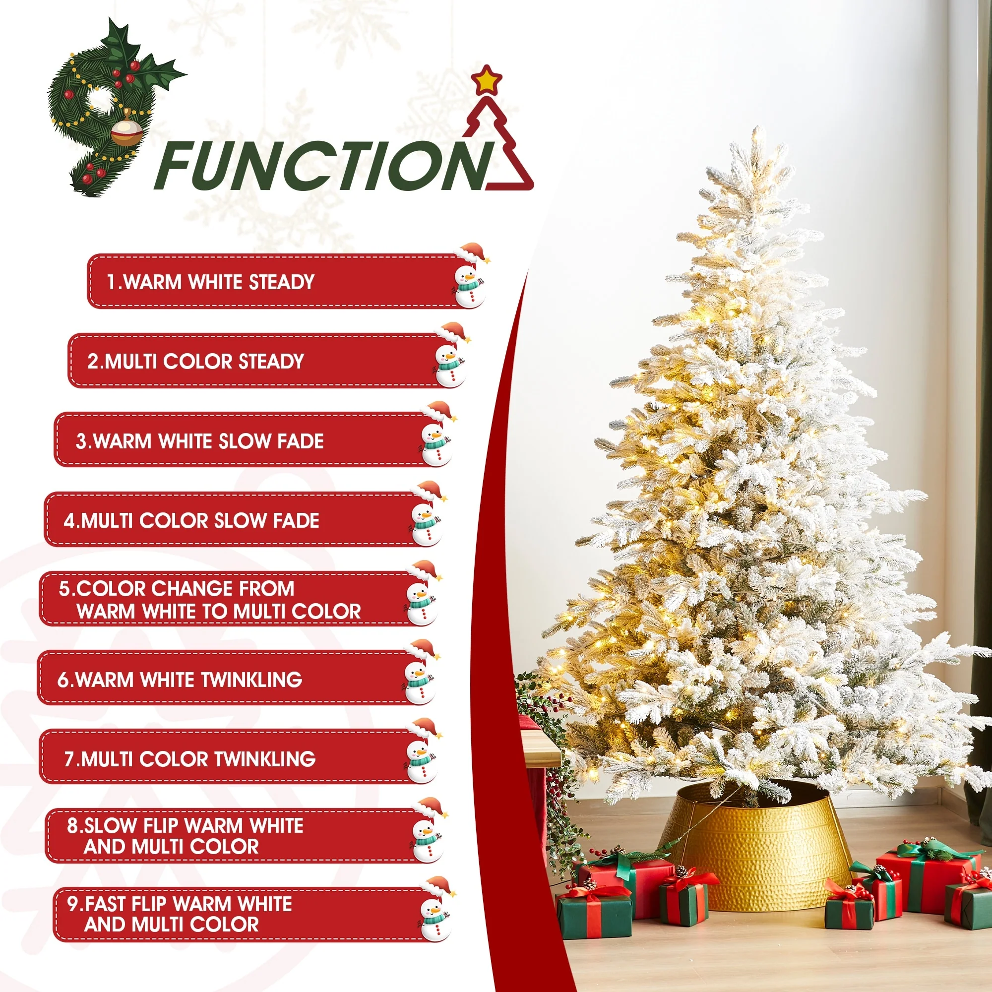 Glitzhome 7.5ft/9ft Pre-Lit Flocked Full Fir Artificial Christmas Trees with Foot Pedal