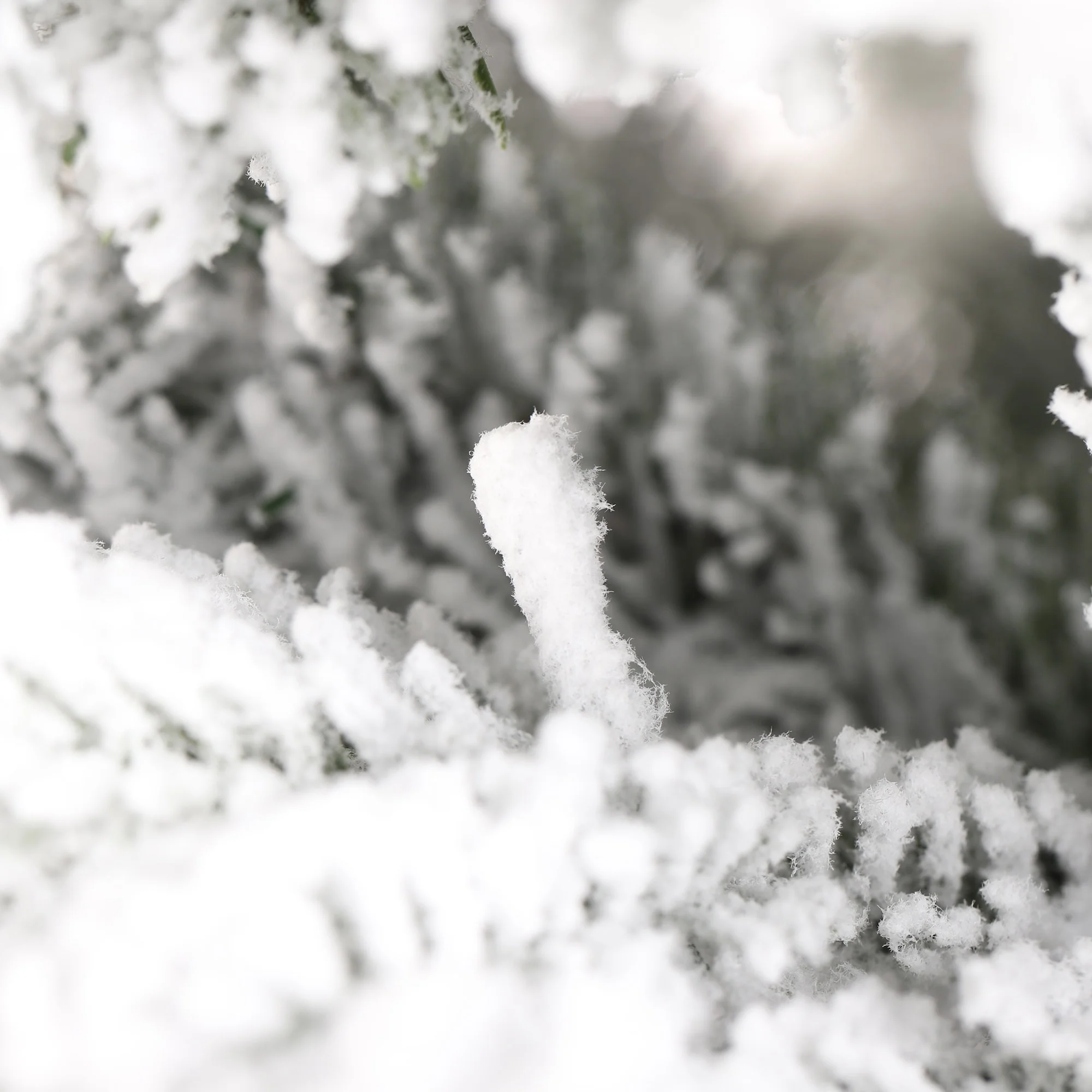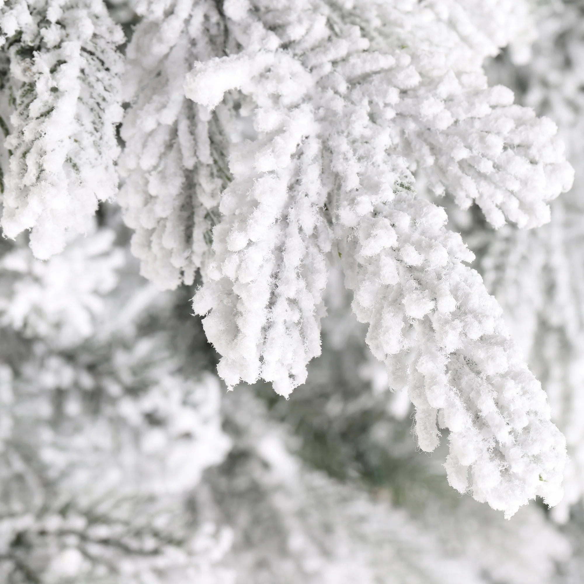 • Natural flocked fir tree with sturdy steel metal stand, fits beautifully in both large and small spaces.