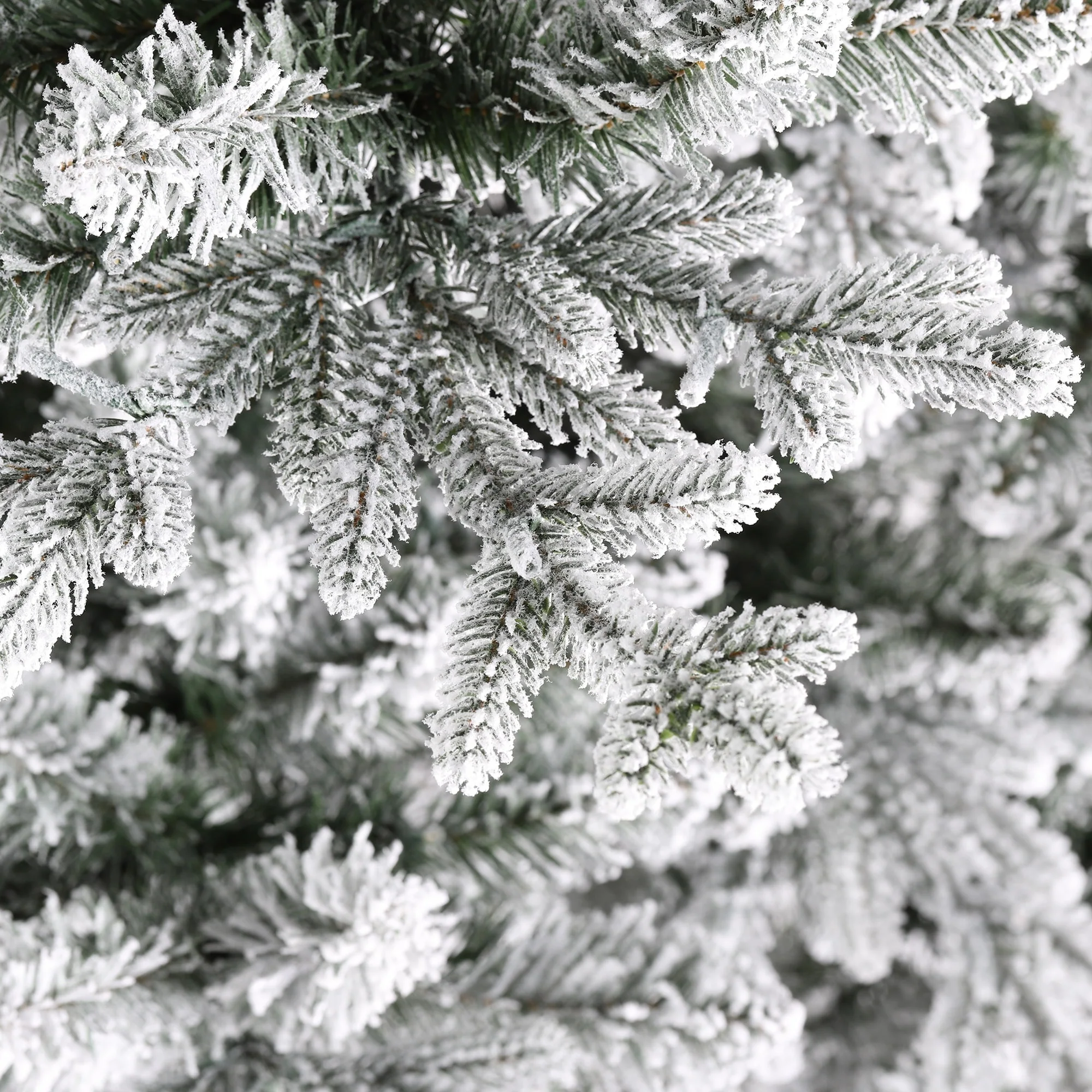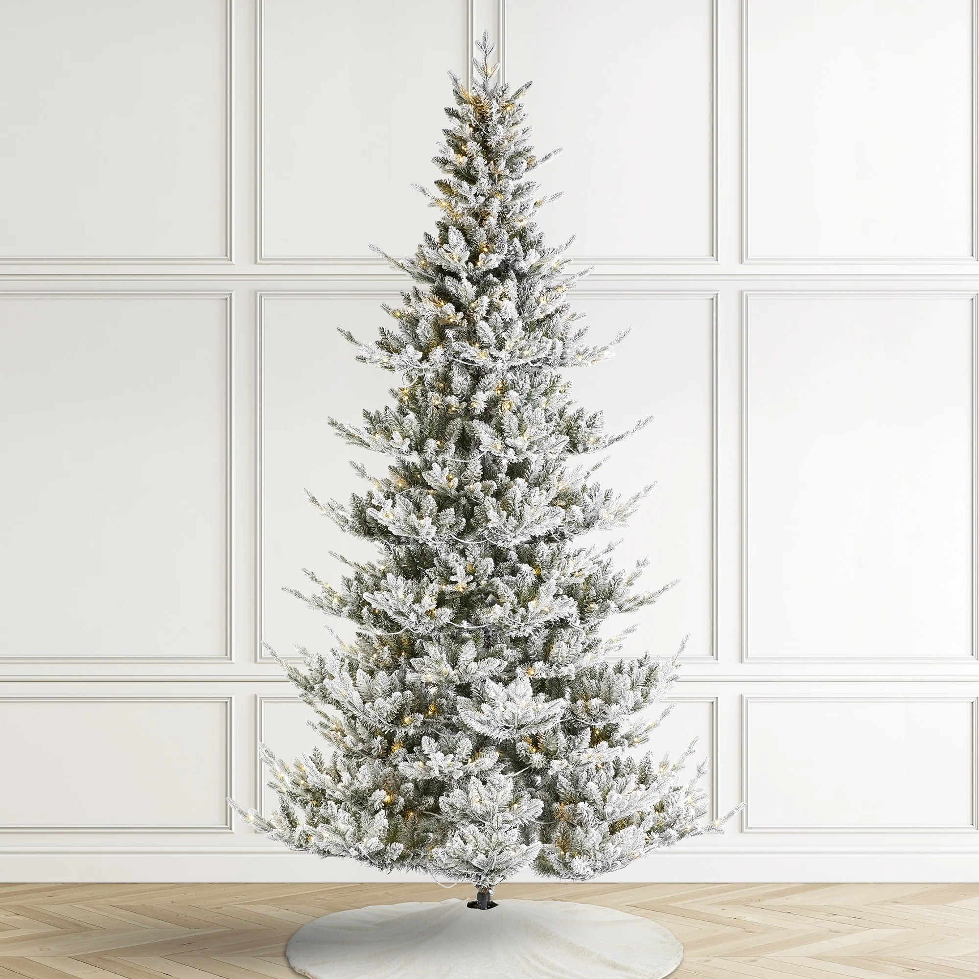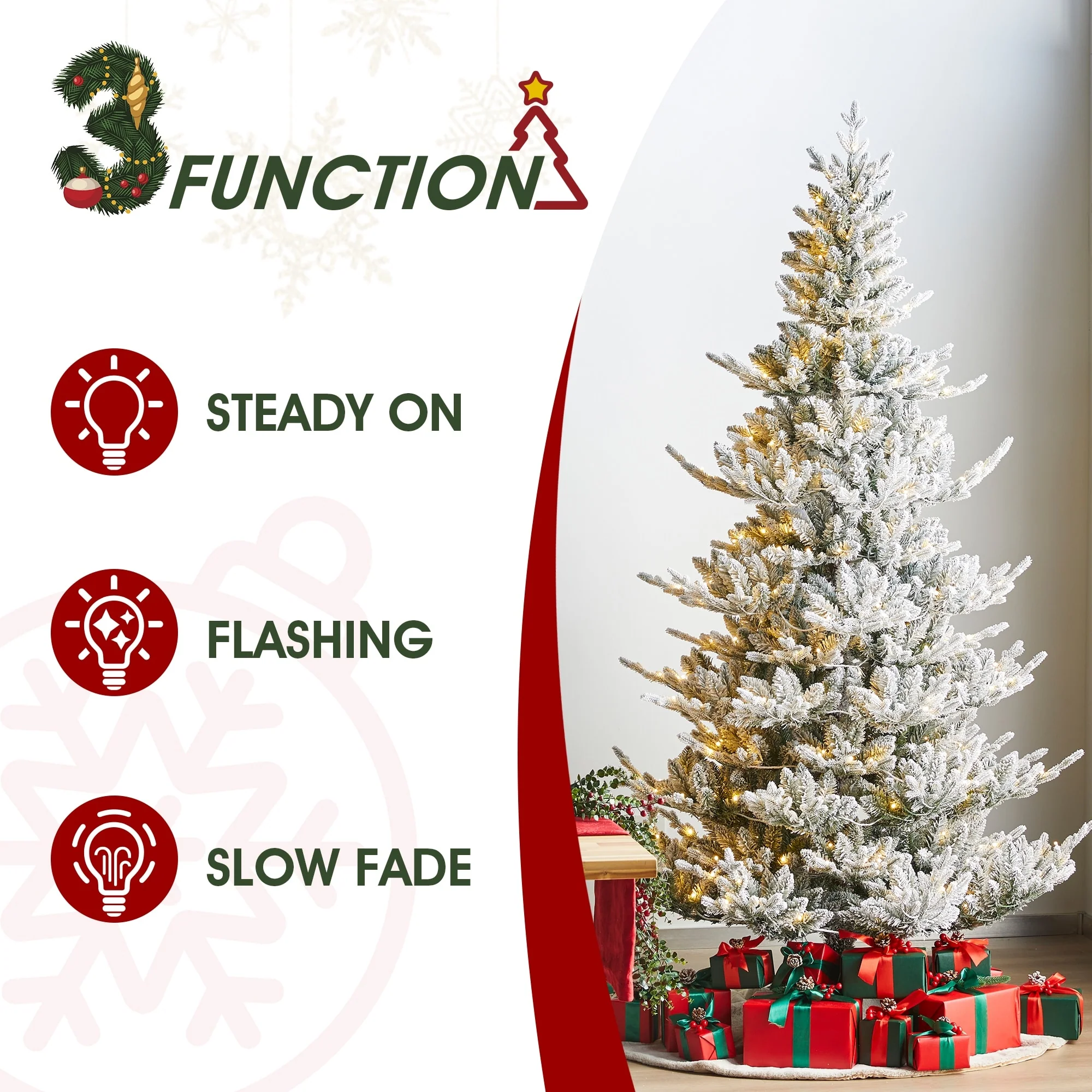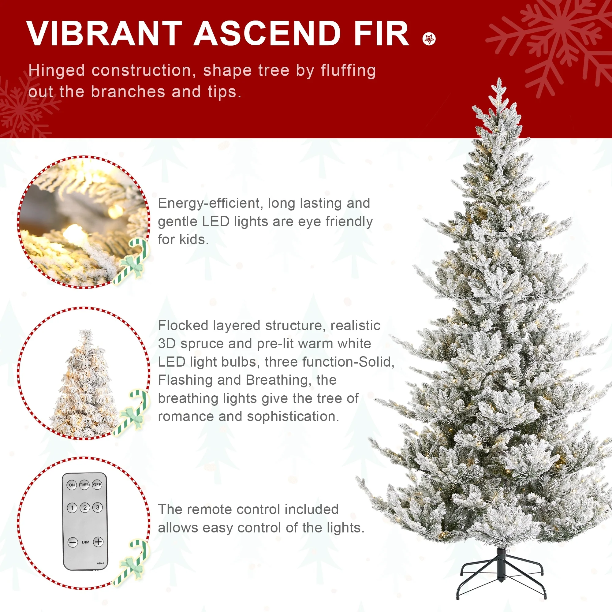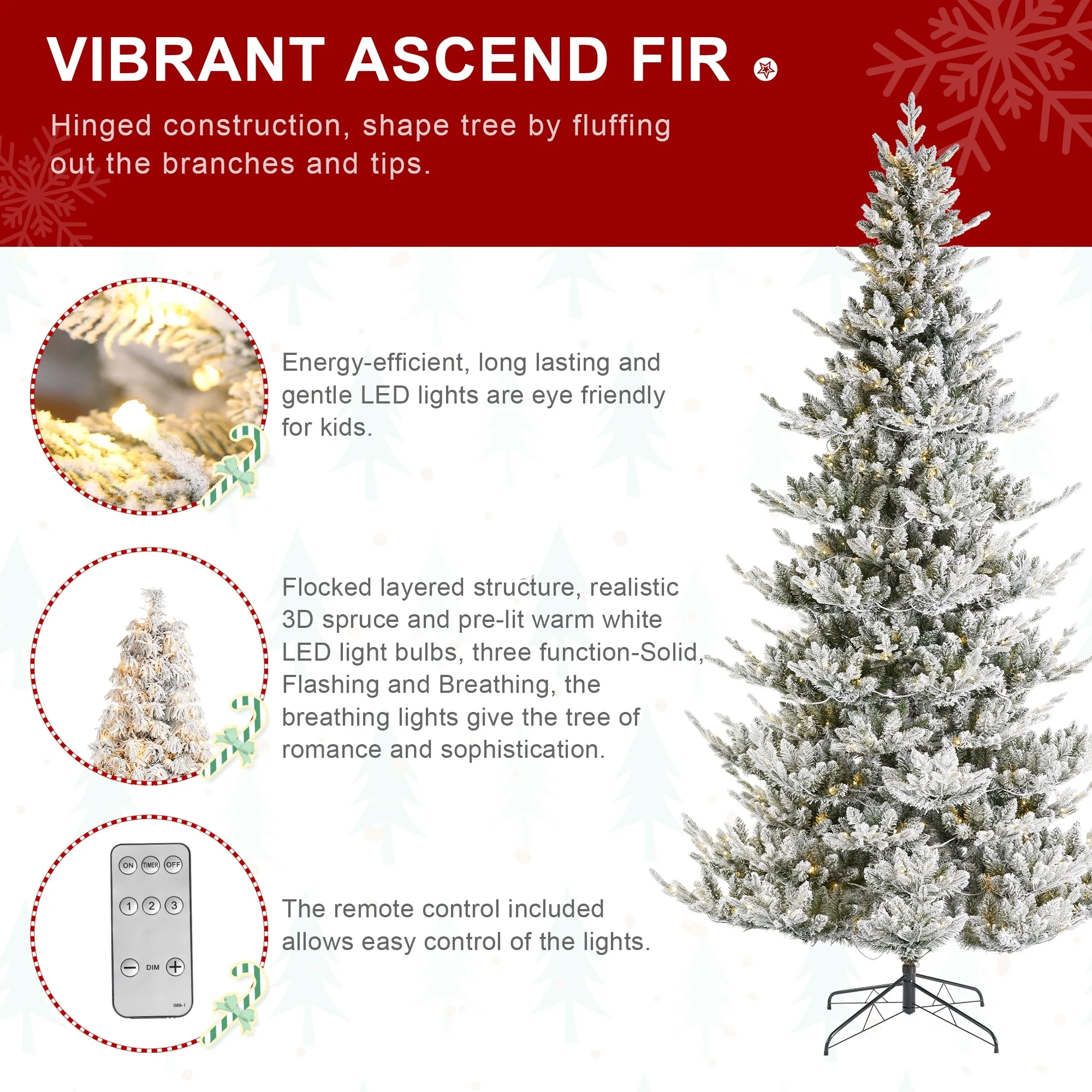 The 7.5ft/9ft Pre-Lit Flocked Upward Slim Fir Christmas Tree features a snowy, flocked design with warm white lights, creating a unique, space-saving silhouette. Its sturdy metal stand ensures stability, making it easy to set up and adding sophistication to your holiday decor.