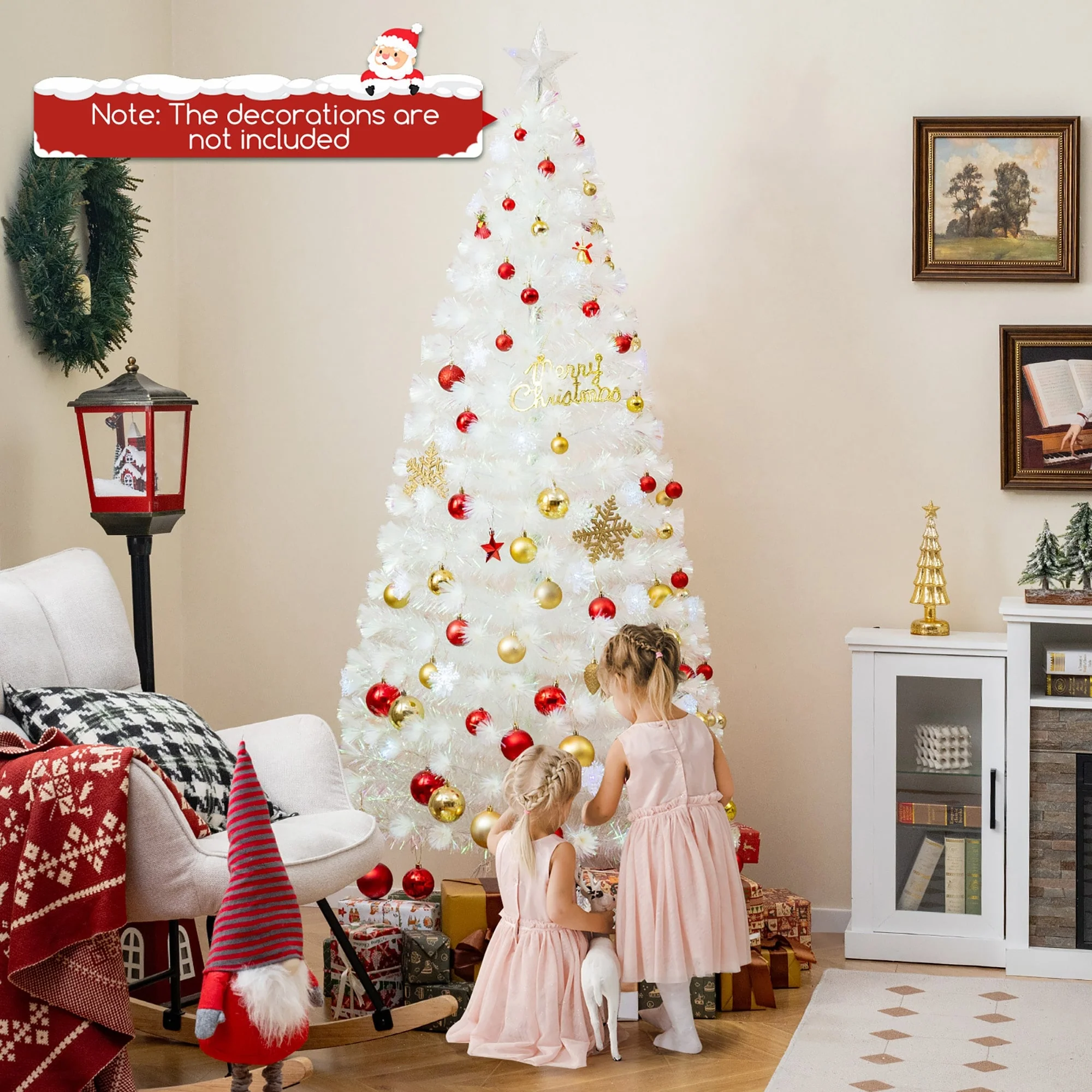 Gymax 5/6/7 FT Pre-Lit Fiber Optic Christmas Tree White Artificial