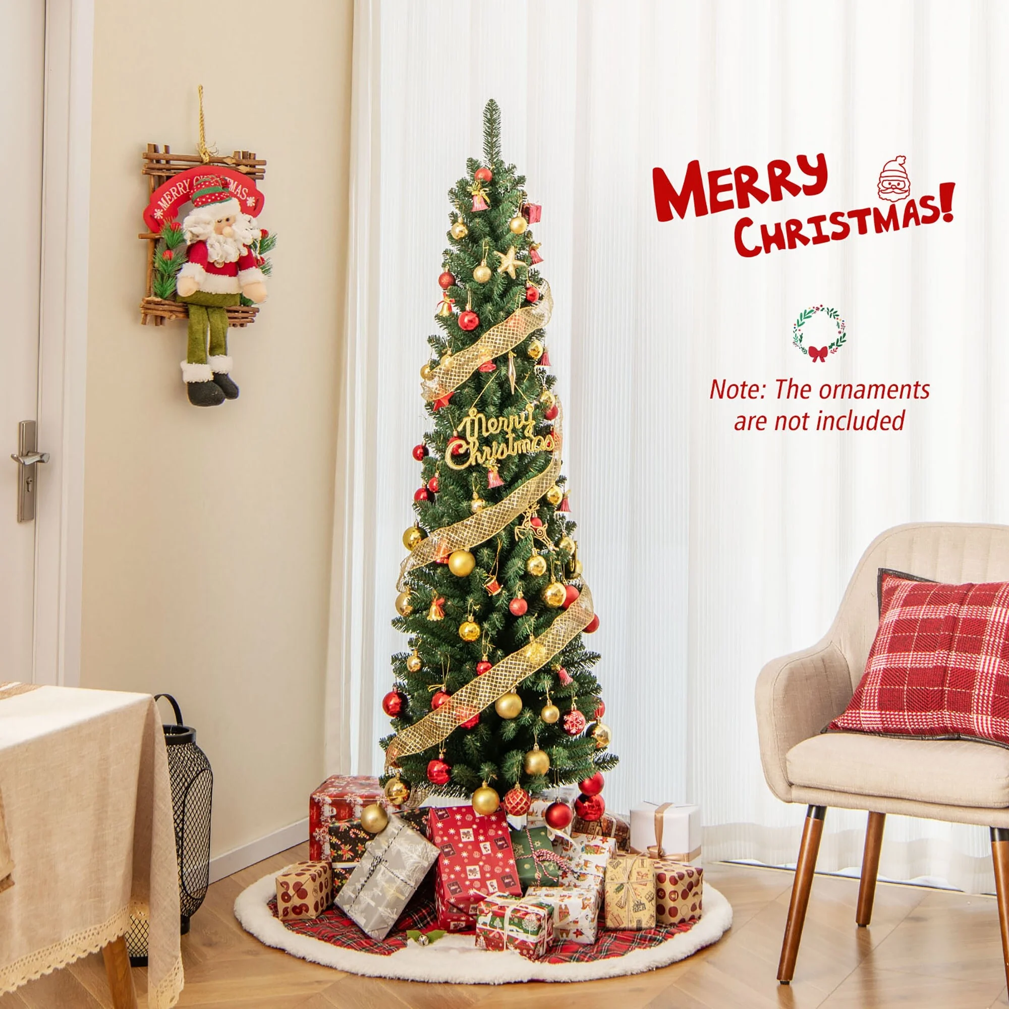 The unique slim pencil Christmas tree is suitable for corners or the center of rooms