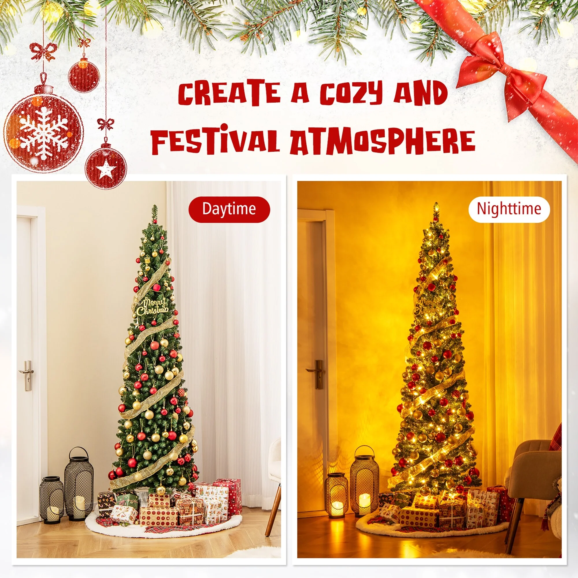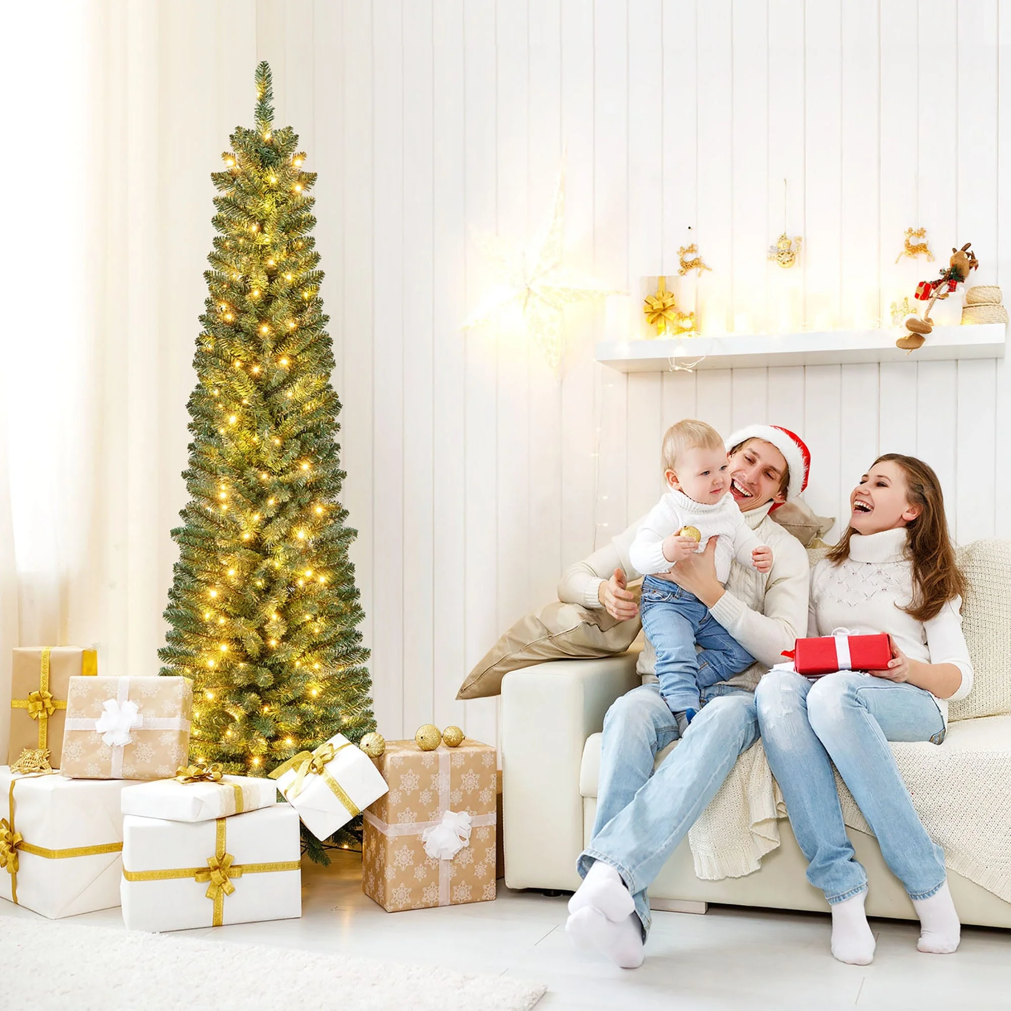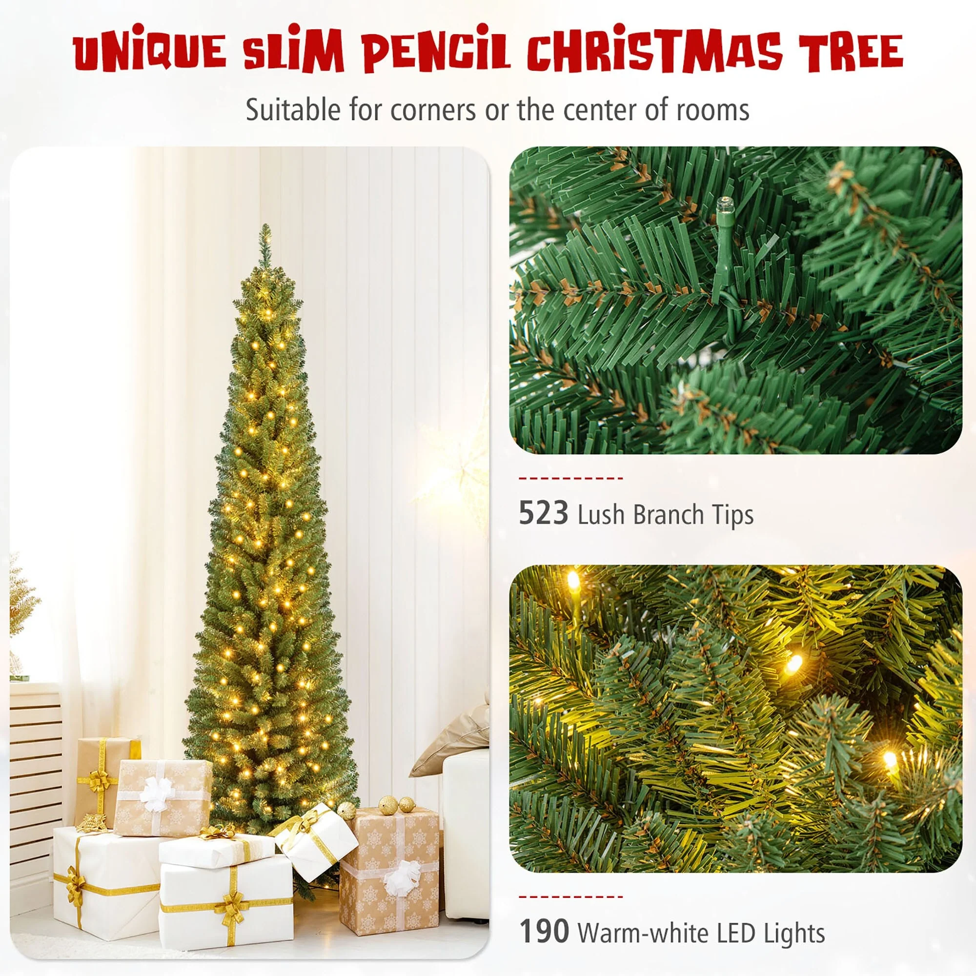 The unique slim pencil Christmas tree is suitable for corners or the center of rooms