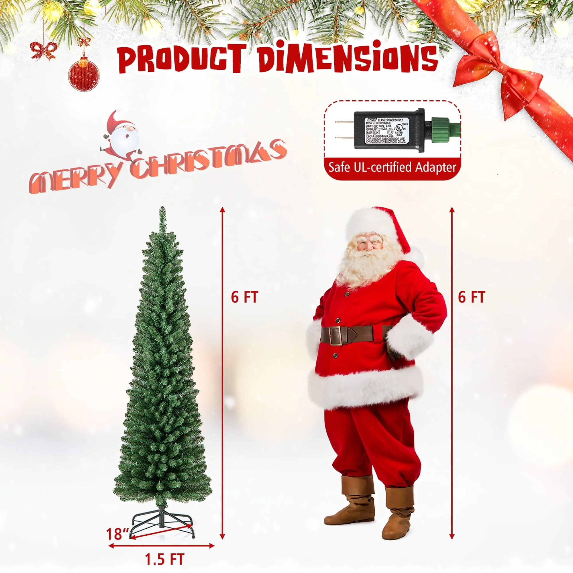 Tree Height: 6 ft/180 cm, 7 ft/210 cm, 8 ft/240 cm