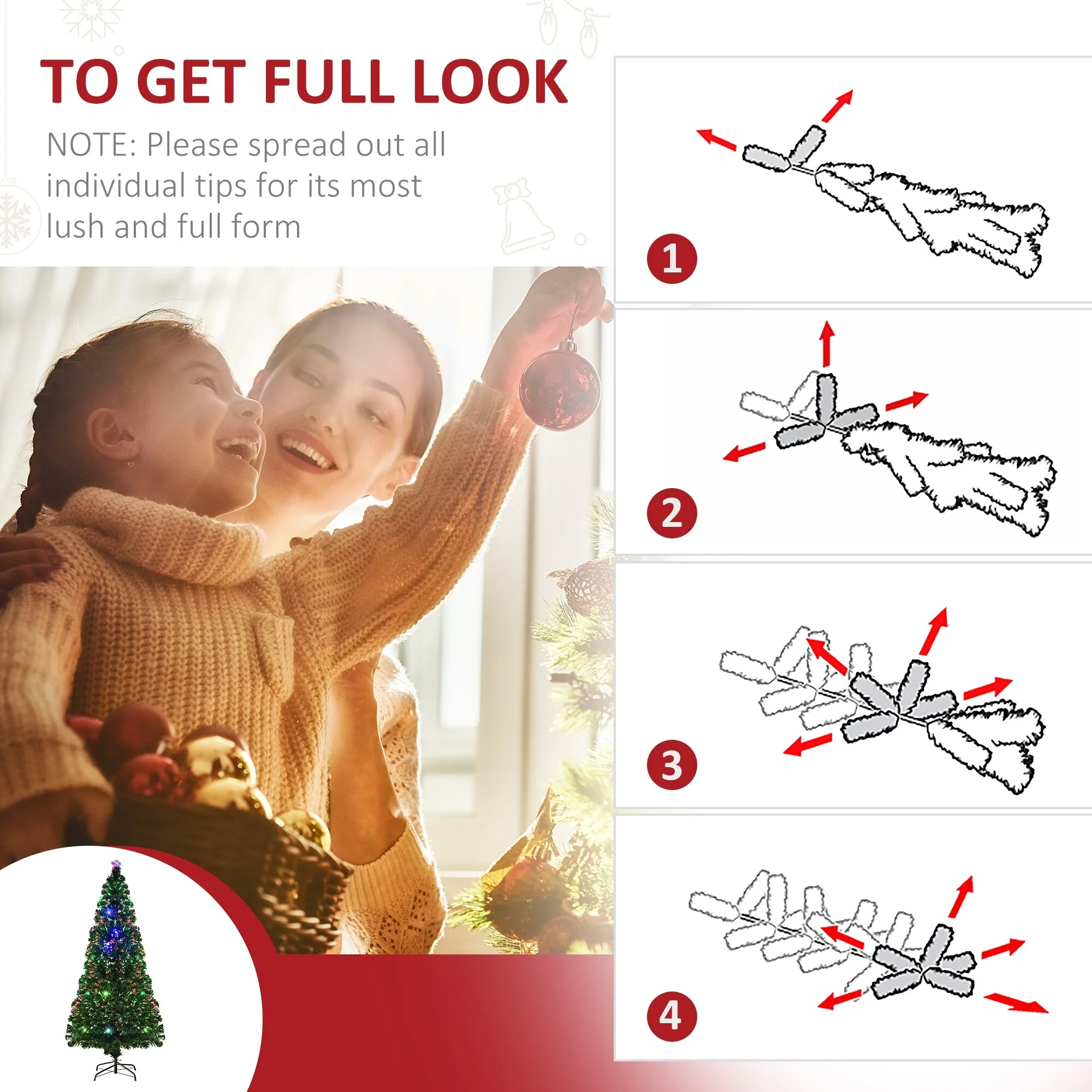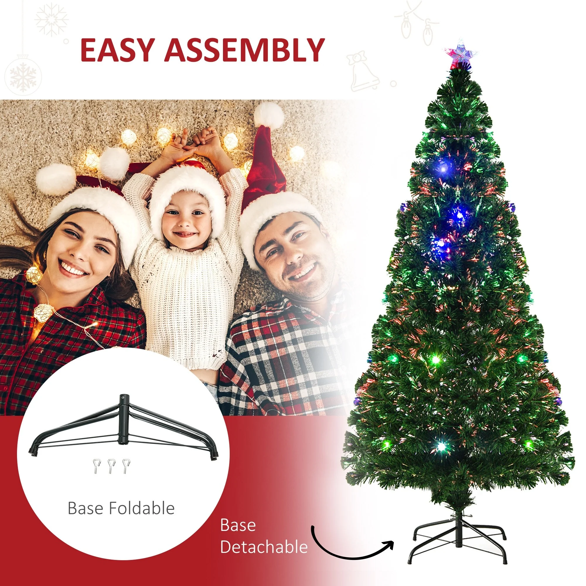 - Fiber optic and LED lighting built right into the tree