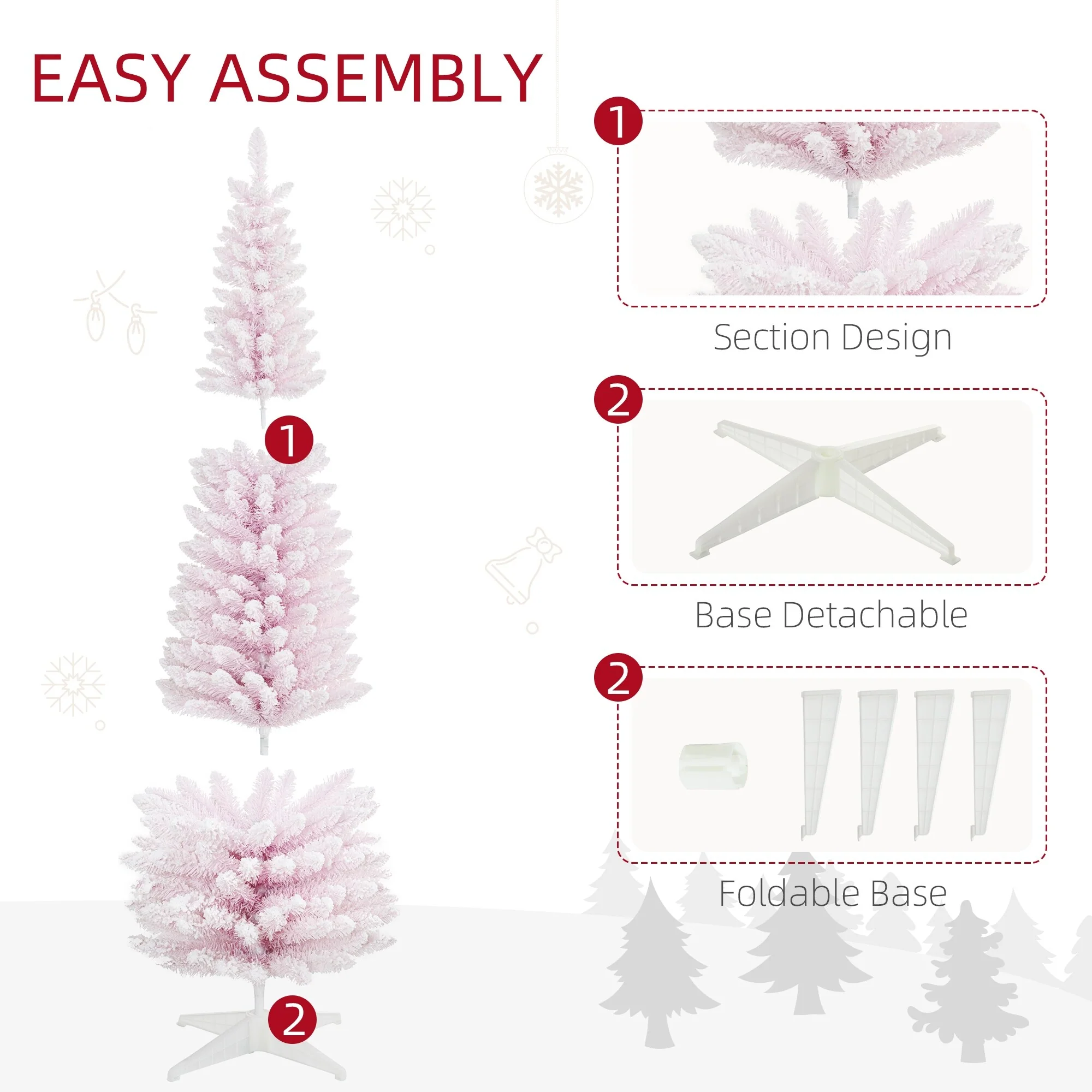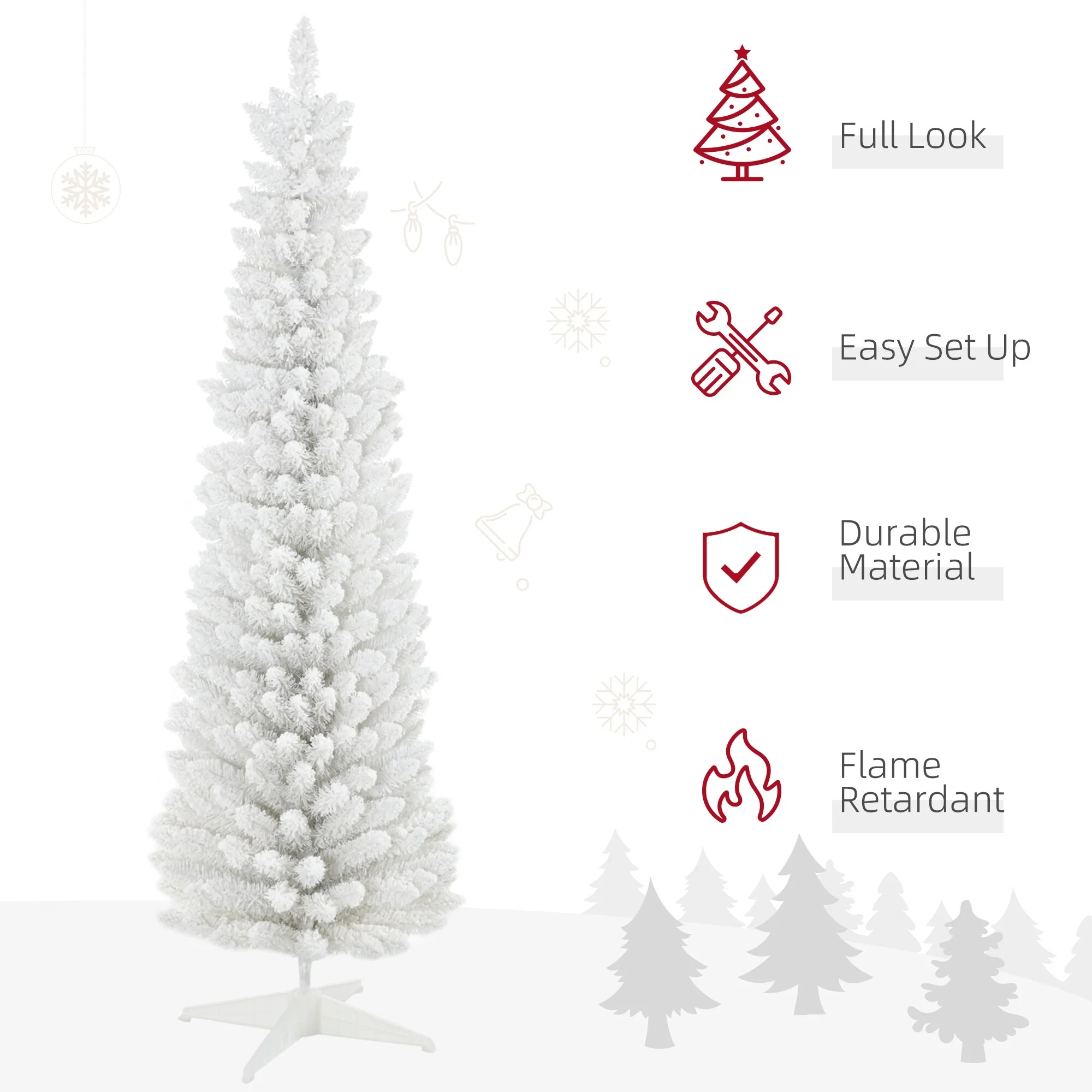 HOMCOM's artificial Christmas tree selection gets you all the ambiance the holiday brings without any mess. Spending time together with friends and family is really what Christmas is all about, and your tree is something you shouldn't have to mess with (ugh). Our HOMCOM slim Christmas trees will help take some of the hassle out of the holiday. Little mess, simple assembly, and impeccable ambiance help make your season just a little brighter.