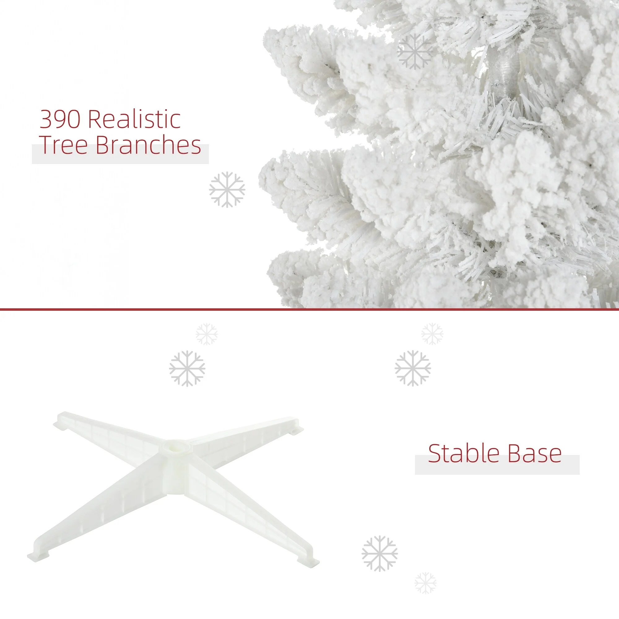 ● Snow-flocked design creates a winter atmosphere without having to clean up a mess