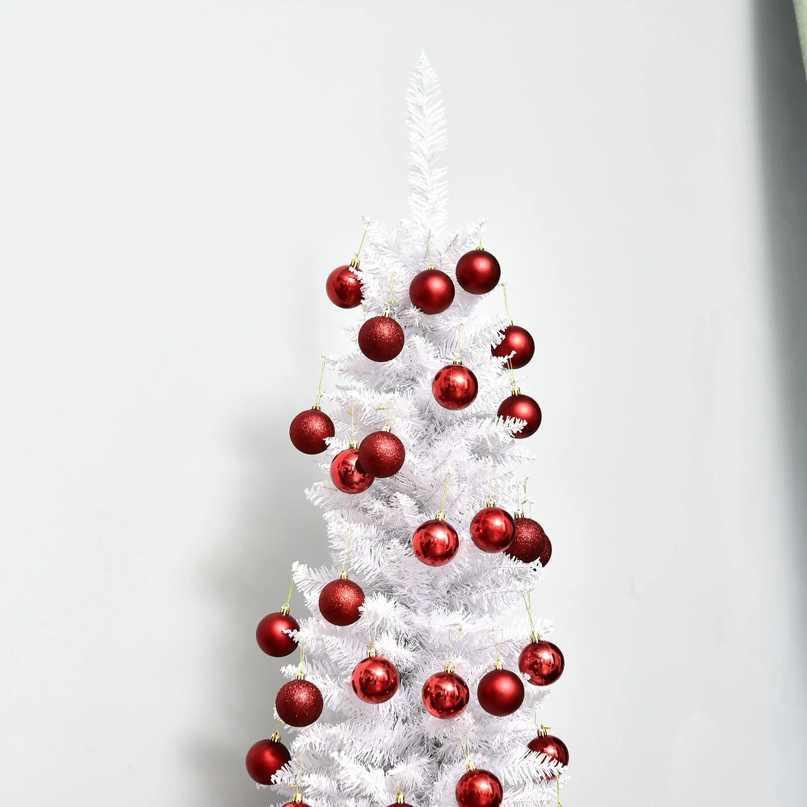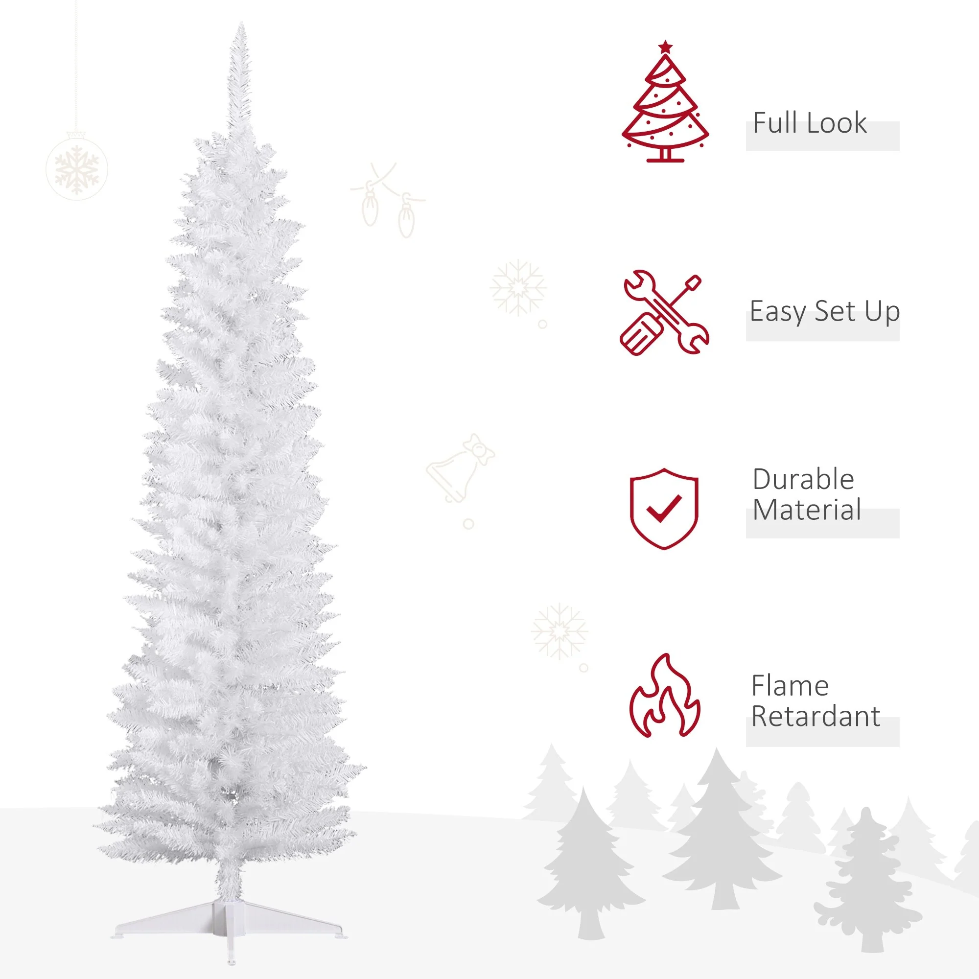 - 6 ft. artificial Christmas tree in a slim pencil style