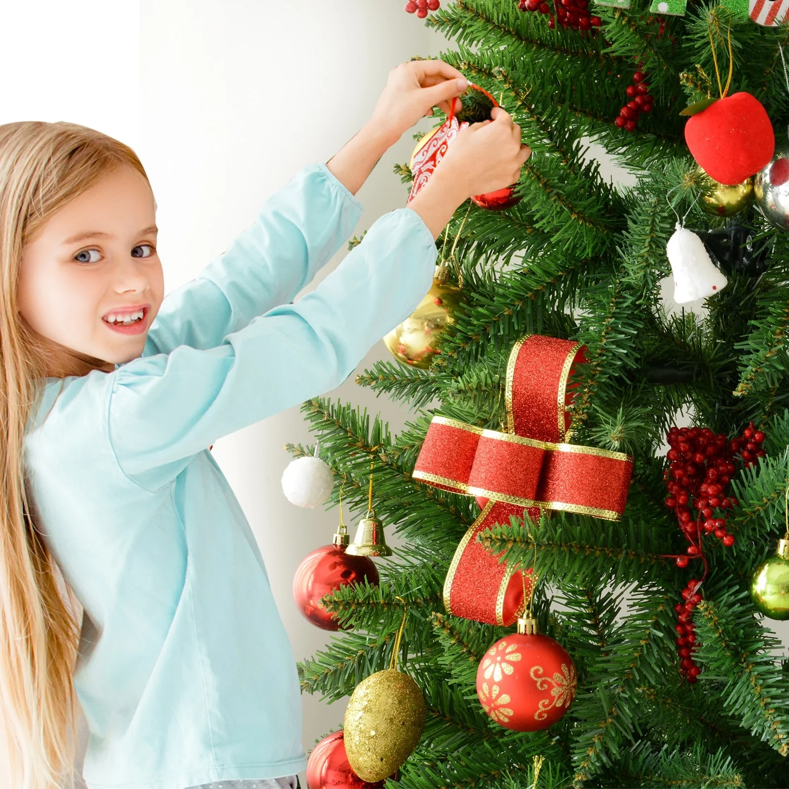- 7 ft. skinny Christmas tree for space efficiency when there's less available room