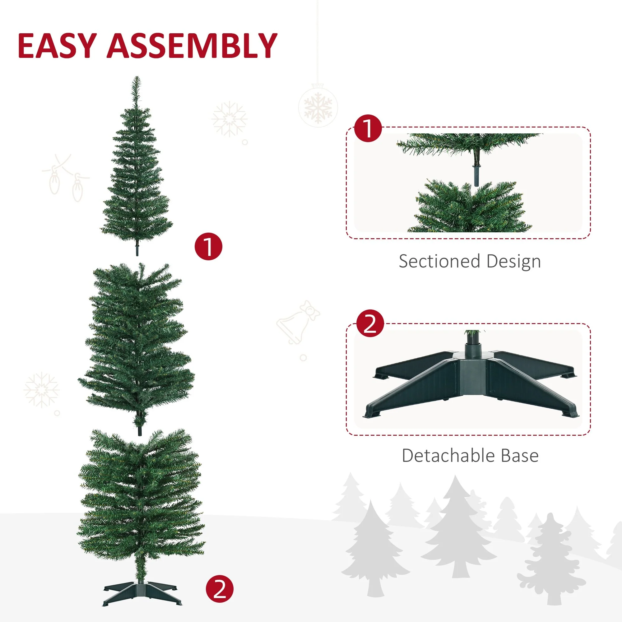 - Full and lush pencil Christmas tree with realistic PVC branches