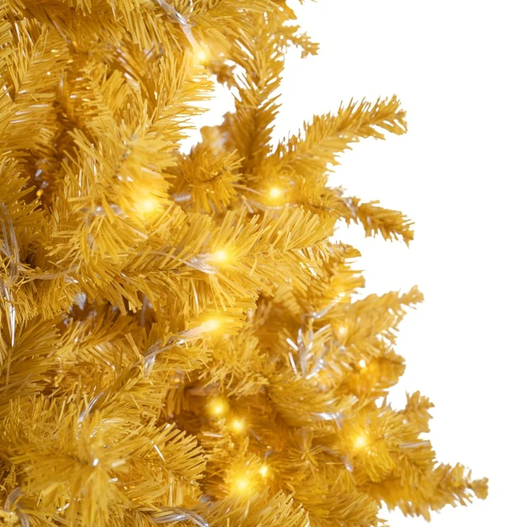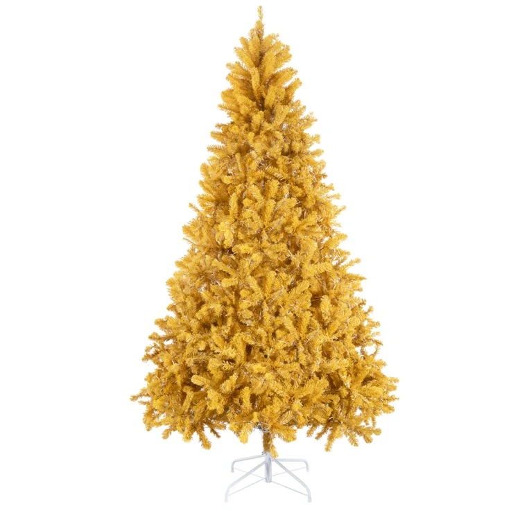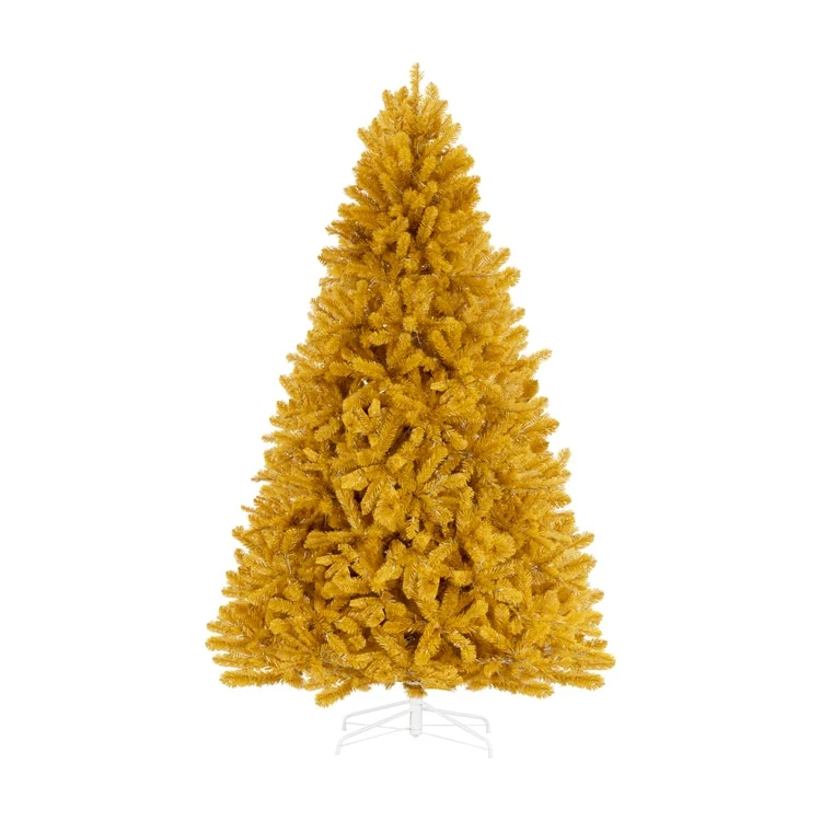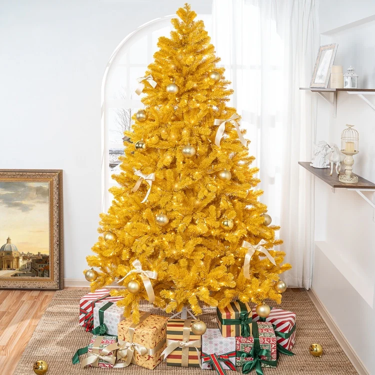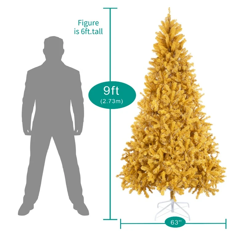 • GOLD CHRISTMAS TREE : The Naomi Home Maria Modern Christmas Tree is a stunning symbol of opulence and elegance for your holiday decor. Adorned with shimmering golden, yellow tips, this majestic tree brings a touch of luxury and sophistication to your festivities. Embrace the magic of the season and bask in the radiant glow of this exquisite golden centerpiece, sure to elevate your Christmas celebrations to new heights of grandeur.• NO EXTRA LIGHTS NEEDED : The fake Christmas Tree comes Pre-lit with 950 incandescent lights that make setting up your tree a breeze. These lights emit a warm glow that highlights your decorations and holiday gifts making your Golden Christmas Tree Prelit extra-special.• DENSER, REALISTIC & FULL : Our 9 feet Pre Lit Christmas Tree comes with 2392 branch tips, 950 warm lights, and has a girth of 63 inches, which are unmatched for a 9ft Christmas tree. With the Naomi Home Artificial Christmas Tree, you will get the most realistic & full Christmas Tree that you can get. You can also checkout other sizes: ( 6.5ft - 978 Branch Tips, 450 Lights, 47" Girth ) ( 7.5ft - 1412 Branch Tips, 600 Lights, 53" Girth )• LASTS LONGER THAN THE COMPETITION : While the Festive season lasts just for a couple of months, our Naomi Home Lighted Christmas Tree can last longer. Made with high quality new PE, PVC and a sturdy Metal Stand, you can be assured to store your tree without hassle for a long time. The materials are also flame retardant and non-allergenic.• EASY TO ASSEMBLE : Our Golden Christmas Tree with Lights features hinged branches, making assembly and disassembly very convenient. The Branches fall easily in place for fluffing and are easy to fold back up for storage. Our Proprietary Packaging ensures the safe delivery of the Gold Tree to your home. The christmas tree comes with 90 days Manufacturer's warranty and in case of any issues, you can contact our customer support for easy refunds/replacements.