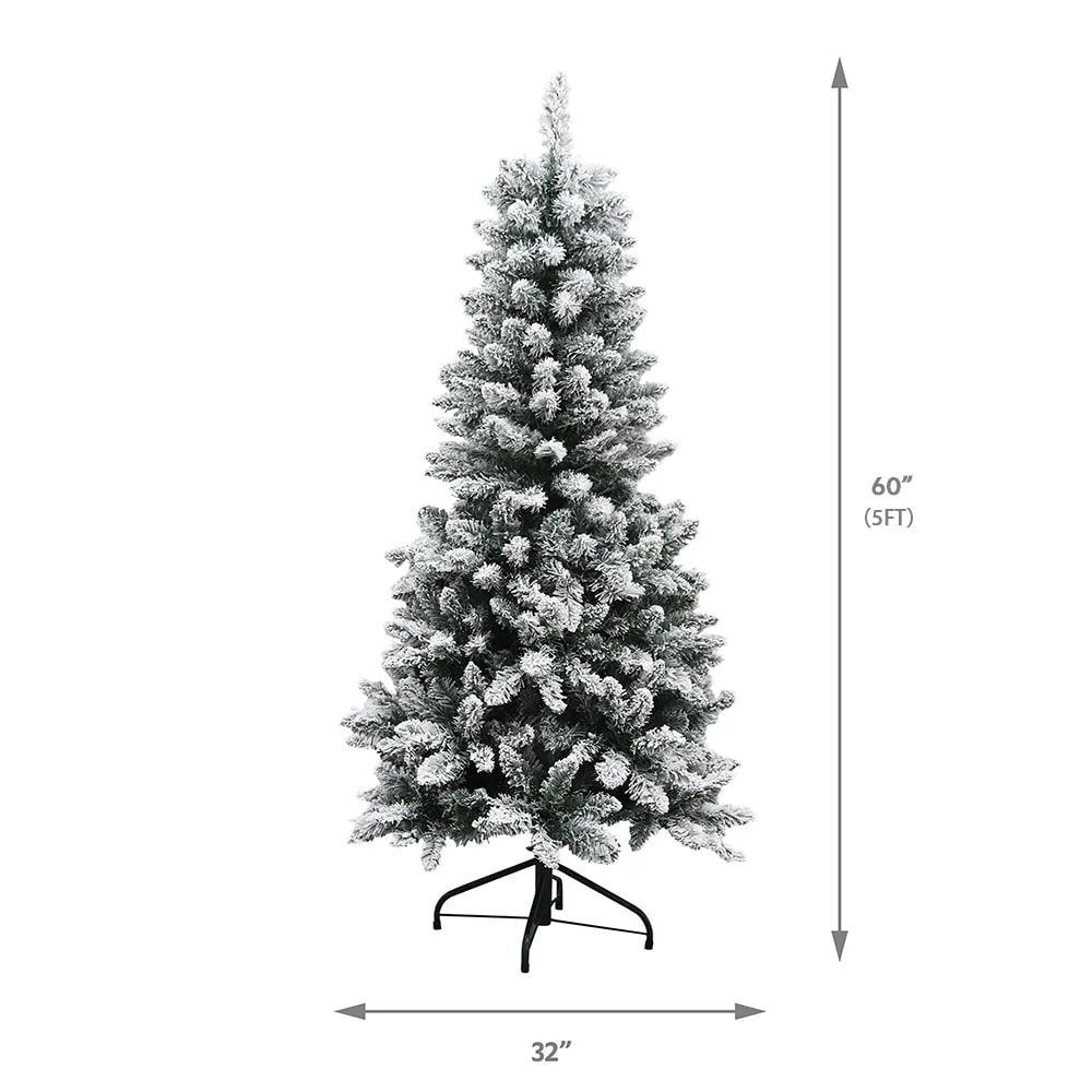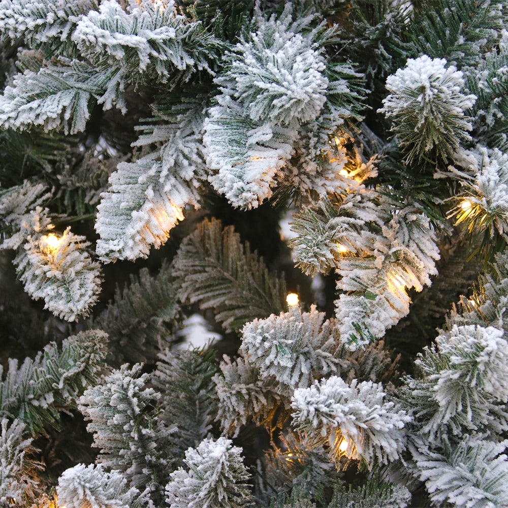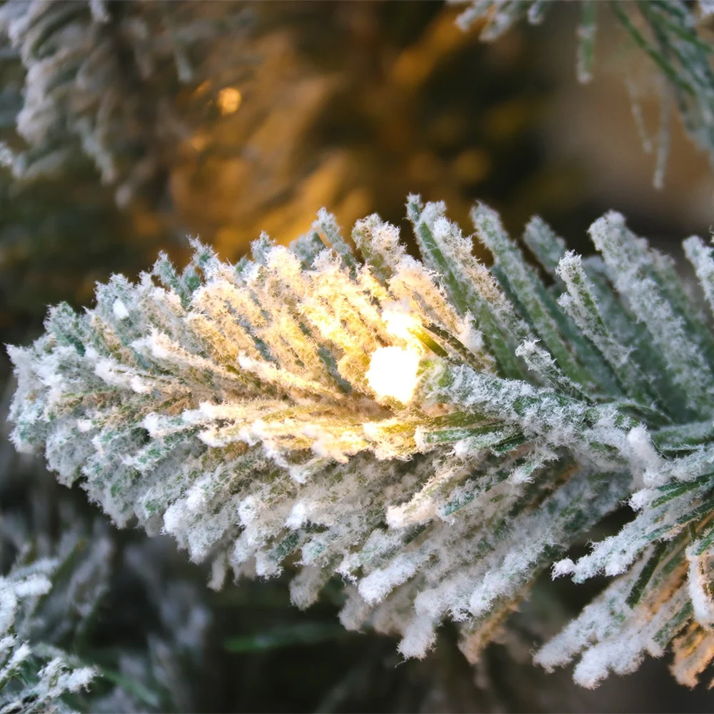 Bring the winter wonderland into your home with the Maypex Lighted Flocked Green Spruce Artificial Christmas Tree. Crafted from high-quality PVC material, this tree features a lush green spruce design with a white snow-dusted effect, giving it a realistic look. The steel frame and foldable metal stand keep it sturdy and in place, while the flame-retardant feature ensures safety. It comes pre-strung with warm white LED lights, creating a cozy and bright ambiance. Choose from a variety of sizes to fit your space and enjoy hassle-free setup with included instructions.