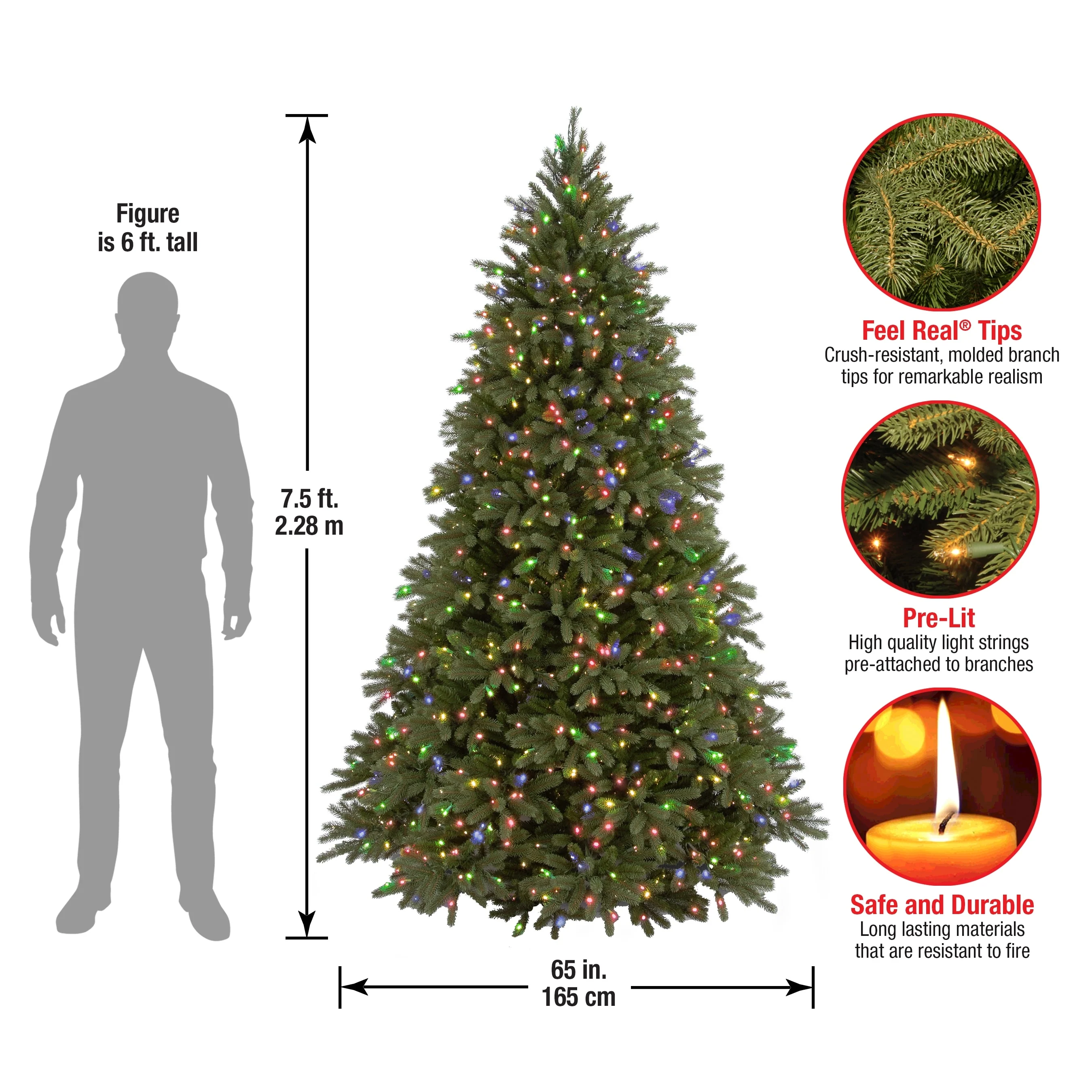 The National Tree Company features this elegant 7 1/2 foot tall Jersey Fraser Fir Free for any festive event including 1250 multi-colored lights. For your safety and comfort this tree is fire resistant and non-allergenic.