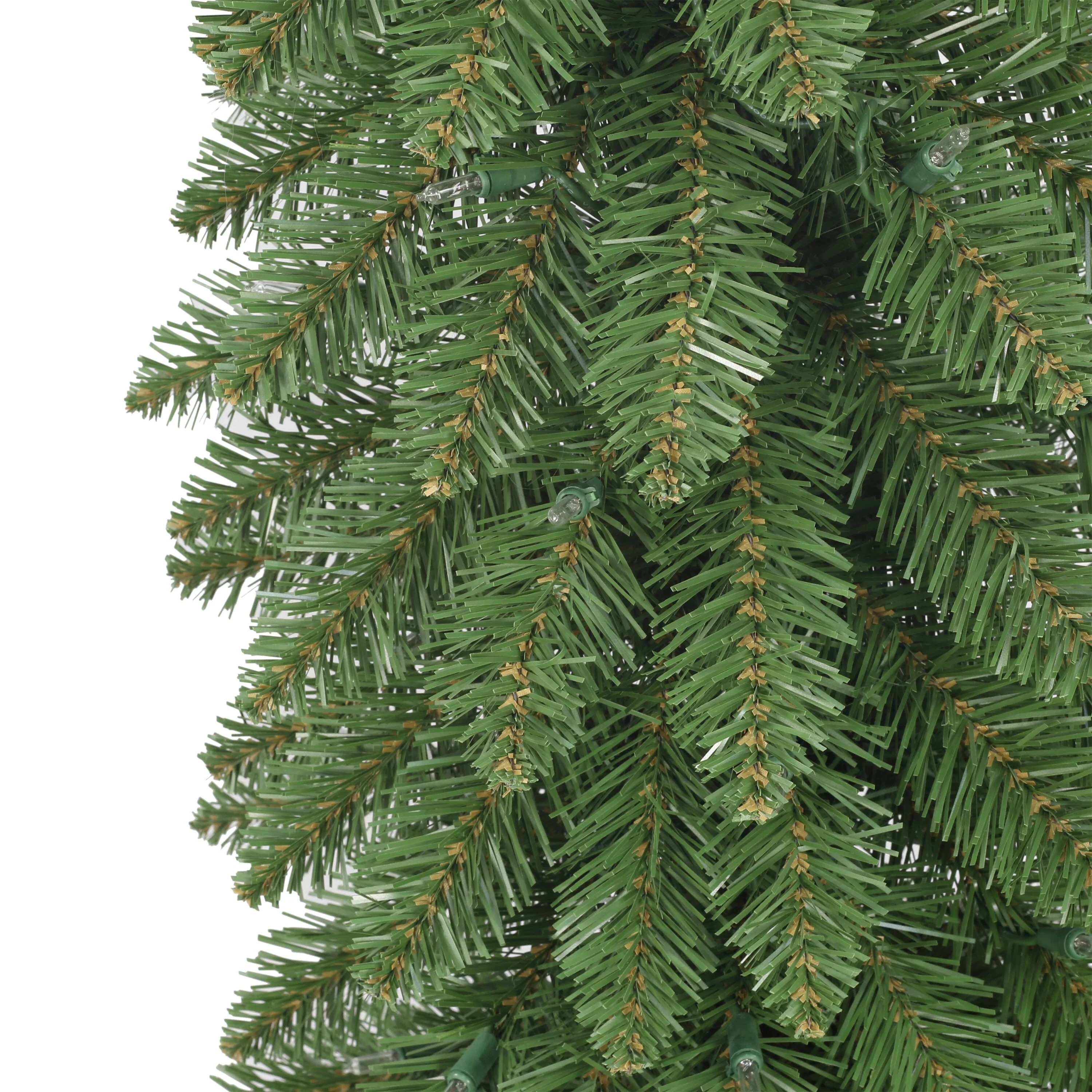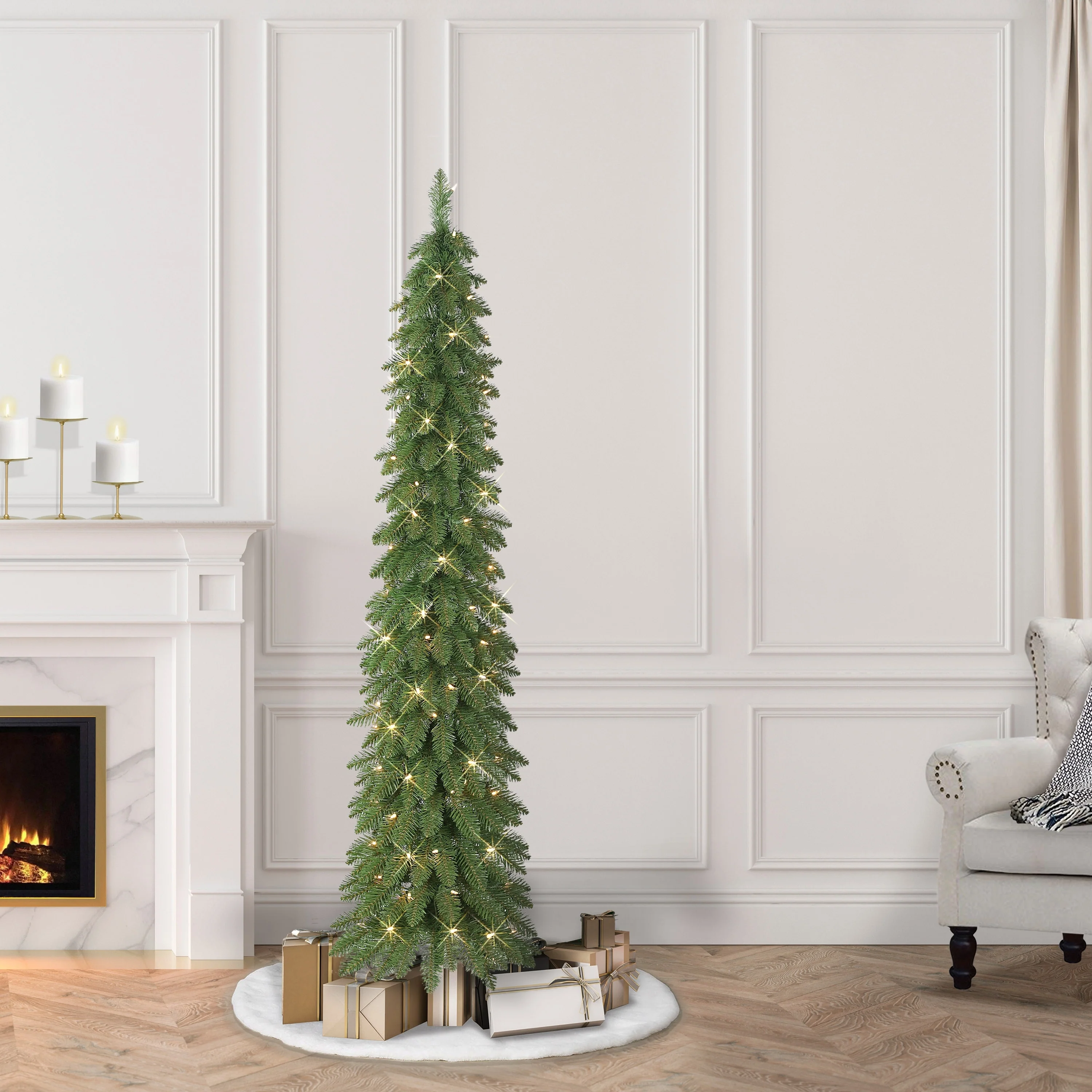 Embrace the joy of the holiday season into your home with the Puleo International Pre-Lit Artificial Alpine Pencil Christmas Tree. This 6-foot tall artificial holiday tree with green pine needles and an elegant shape perfectly captures the ambiance of the wintry forests in your home. Decorated with 100 pre-attached UL-listed clear incandescent lights, this pre-lit tree illuminates your home with a dazzling festive glow while eliminating the time-consuming hassle of hanging lights around your tree. This artificial Alpine pencil tree has a slender appearance with a total of 261 green PVC branch tips that capture the realistic feel of nature's beauty. Assembly is simple and quick with easy to hinge branches, and a black metal stand is included for convenient placement anywhere in your home. The flame-retardant, hypoallergenic, and needle-shed resistant tree offers a safer alternative to fresh-cut Christmas trees, so you can welcome in friends and family for holiday celebrations without worry. This product is backed by a five-year warranty on the tree and a two-year warranty on the lights for years of quality use.�