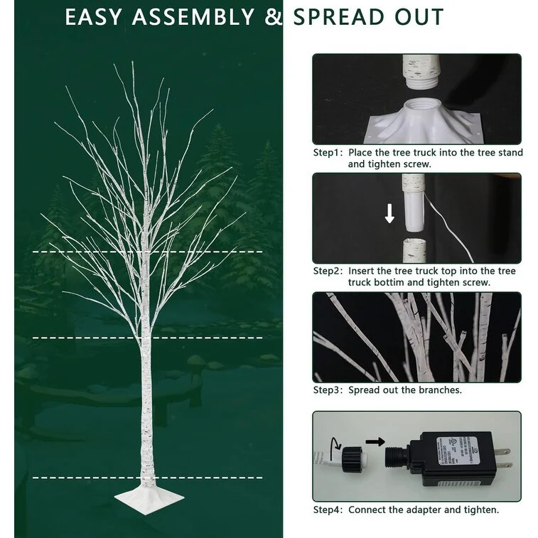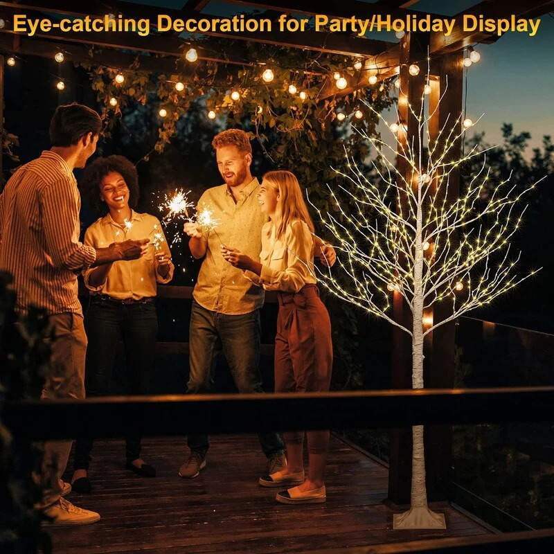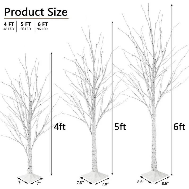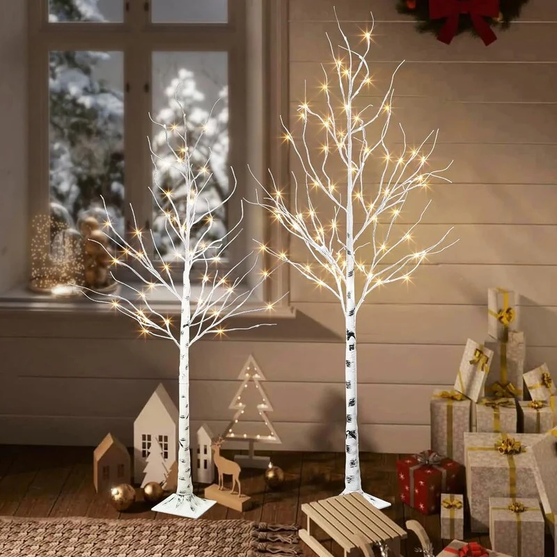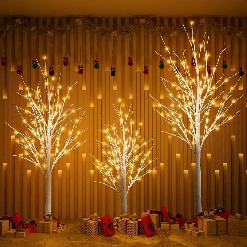 Prelit Lighted Birch Trees - Life-like tree bark texture create a natural and romantic atmosphere at home on winter holidays or festivals. The brightly lit trees are beautifully shaped, and the fairy-tale warm yellow cherry blossom light can bring a warm atmosphere to the space. When you watch the decorative tree of lights as if you were seeing the stars outside.