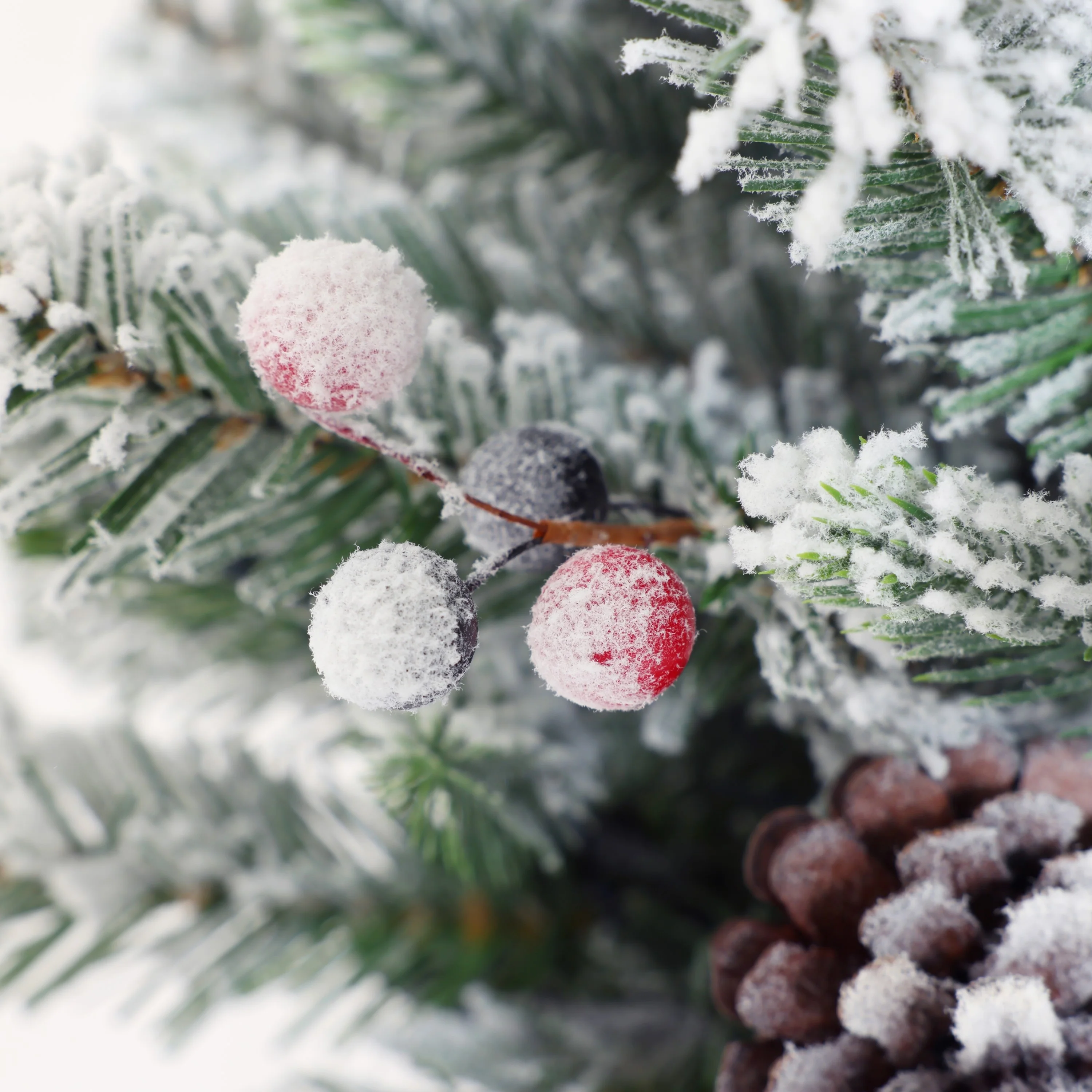• Quality material - crafted using a combination of quality 183 PVC and PE flocked tips and decorated with pine cones and holly berries.