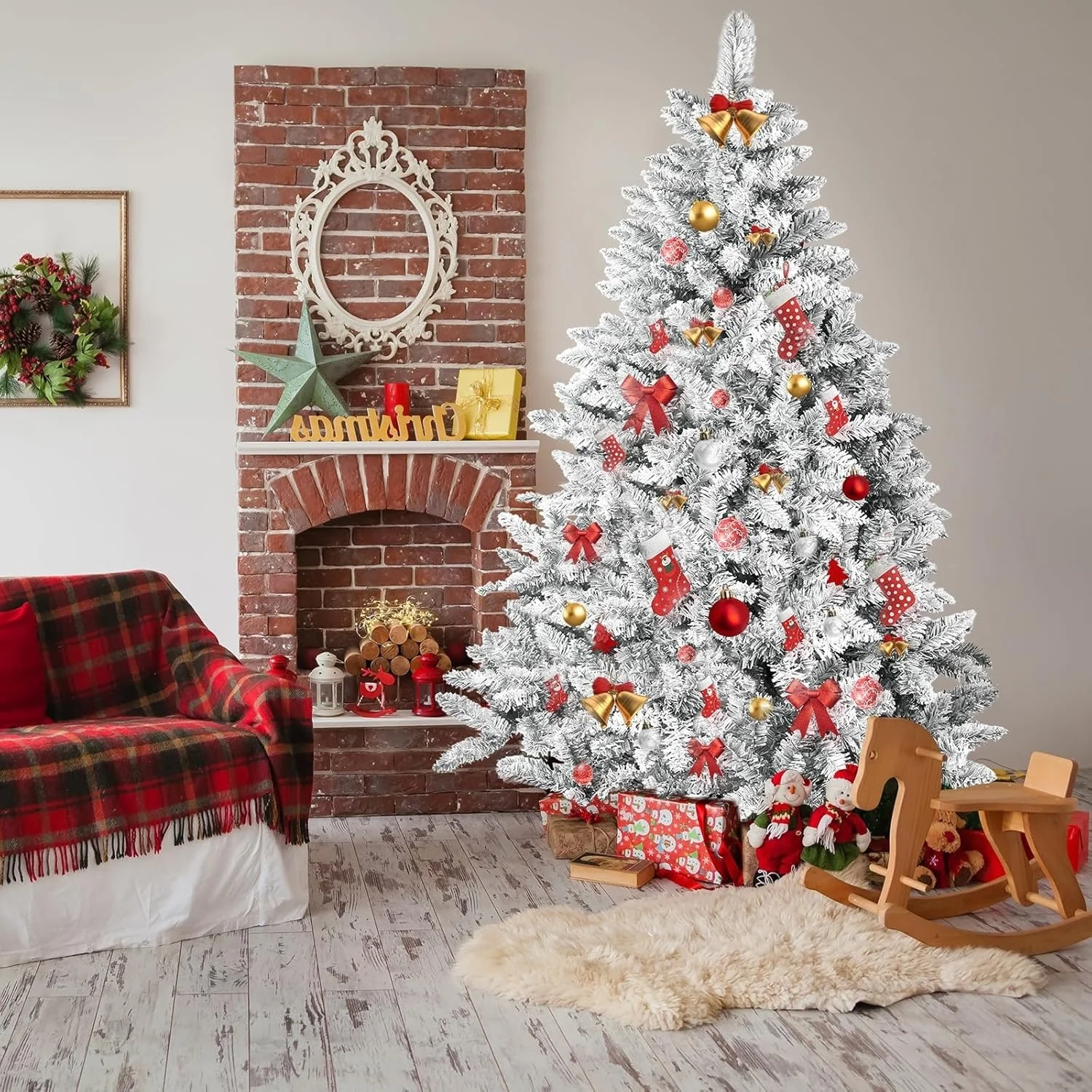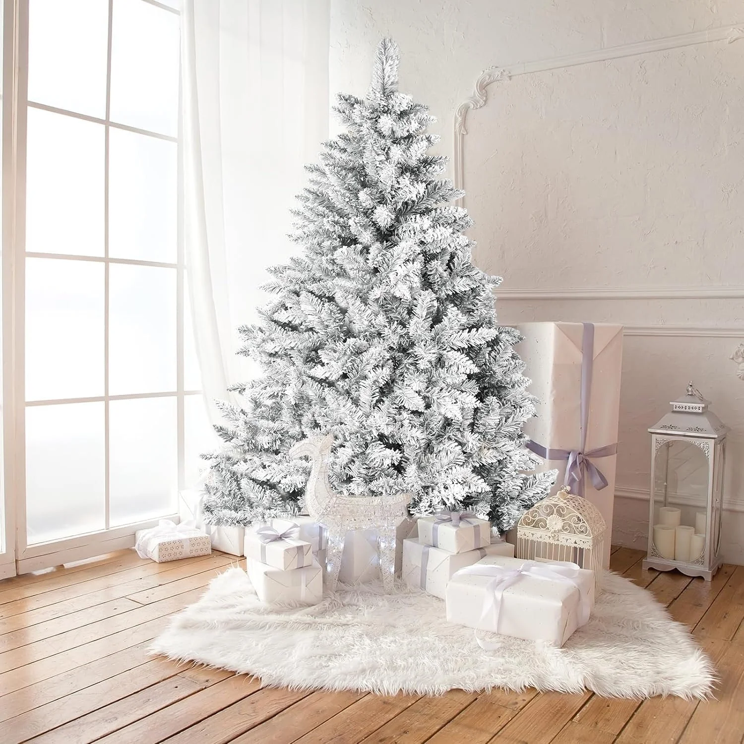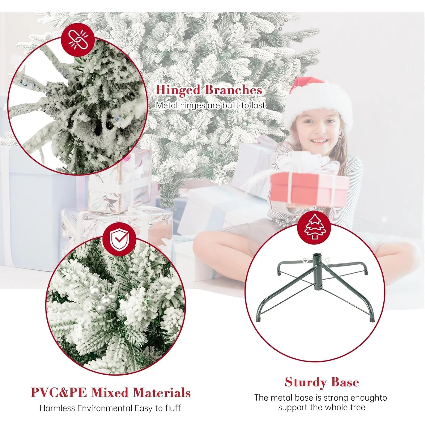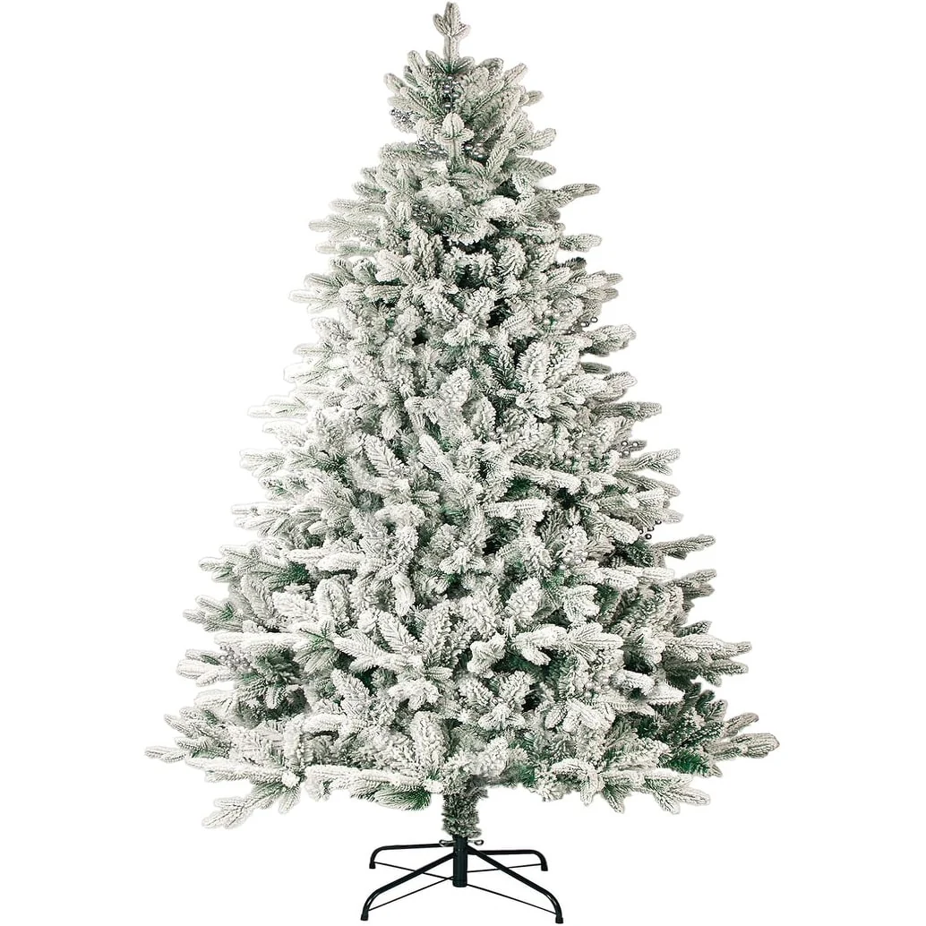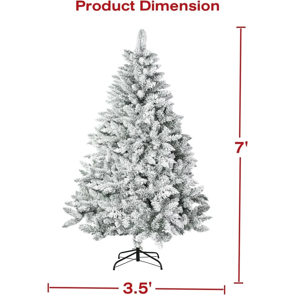 Bring the magic of a winter wonderland into your home with our Suncrown 6ft/7ft Flocked Spruce Artificial Christmas Tree. This tree features a realistic snow-flocked design and 1000 branch tips for a full and lush appearance, without the hassle of falling needles. The high-quality PVC material is environmentally friendly and resistant to pressure, ensuring long-term use. With an easy three-step assembly process and sturdy steel stand, this tree is perfect for hassle-free holiday decorating.