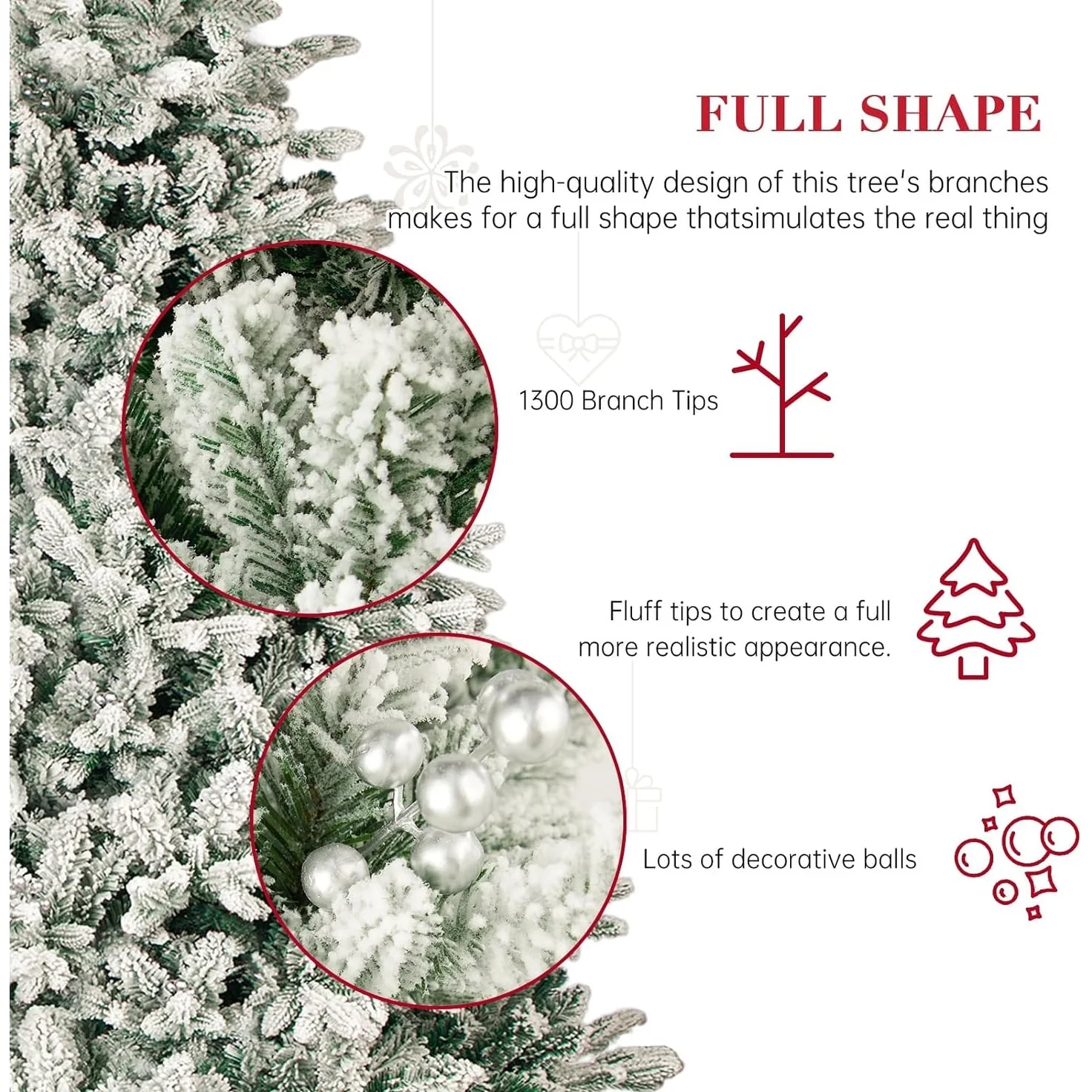 - Realistic snow-flocked design with 1000 branch tips