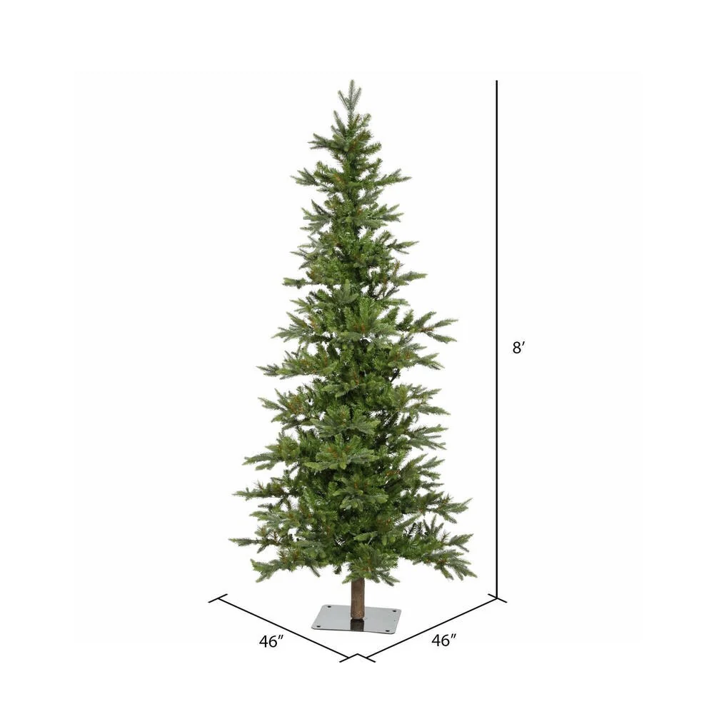 Vickerman 8' Shawnee Fir AlpineArtificial Christmas Tree with 1194 PE Tips. This beautiful tree features a real Wood accented Trunk, comes unlit, and a Flat Metal Stand is included.