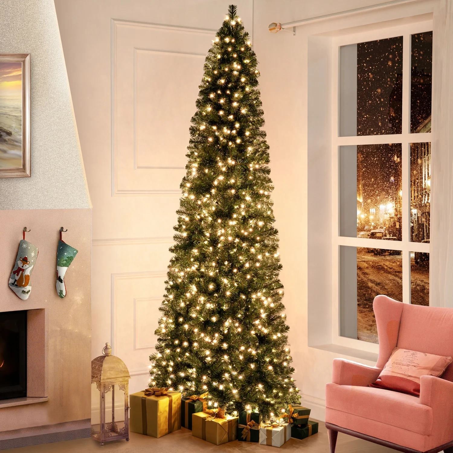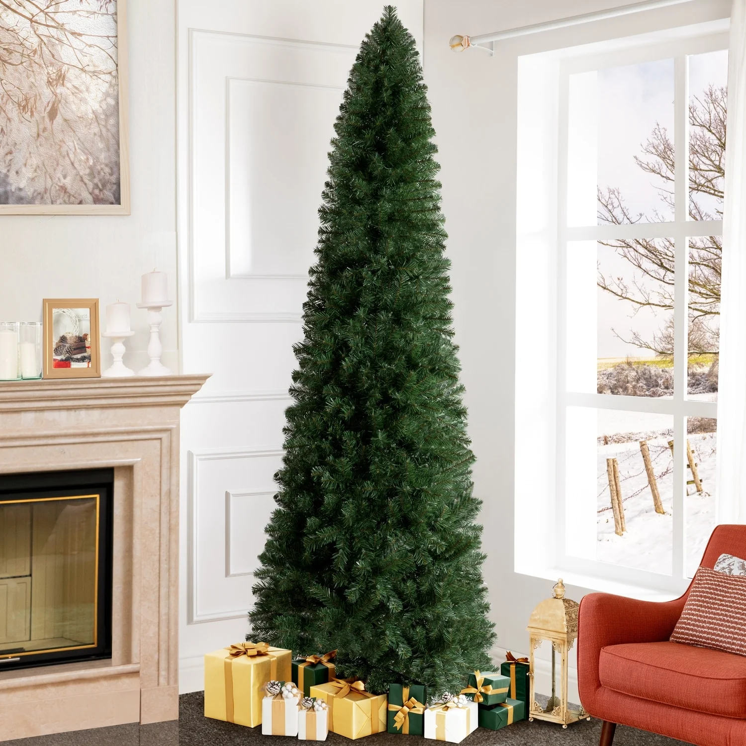 - REALISTIC DESIGN: Naomi Home Christmas tree is tall which fits perfect for your xmas decoration. The branch tips in our lighted Christmas tree gives you a denser fluffy look. The four-layer leaves design appears realistic and fuller.