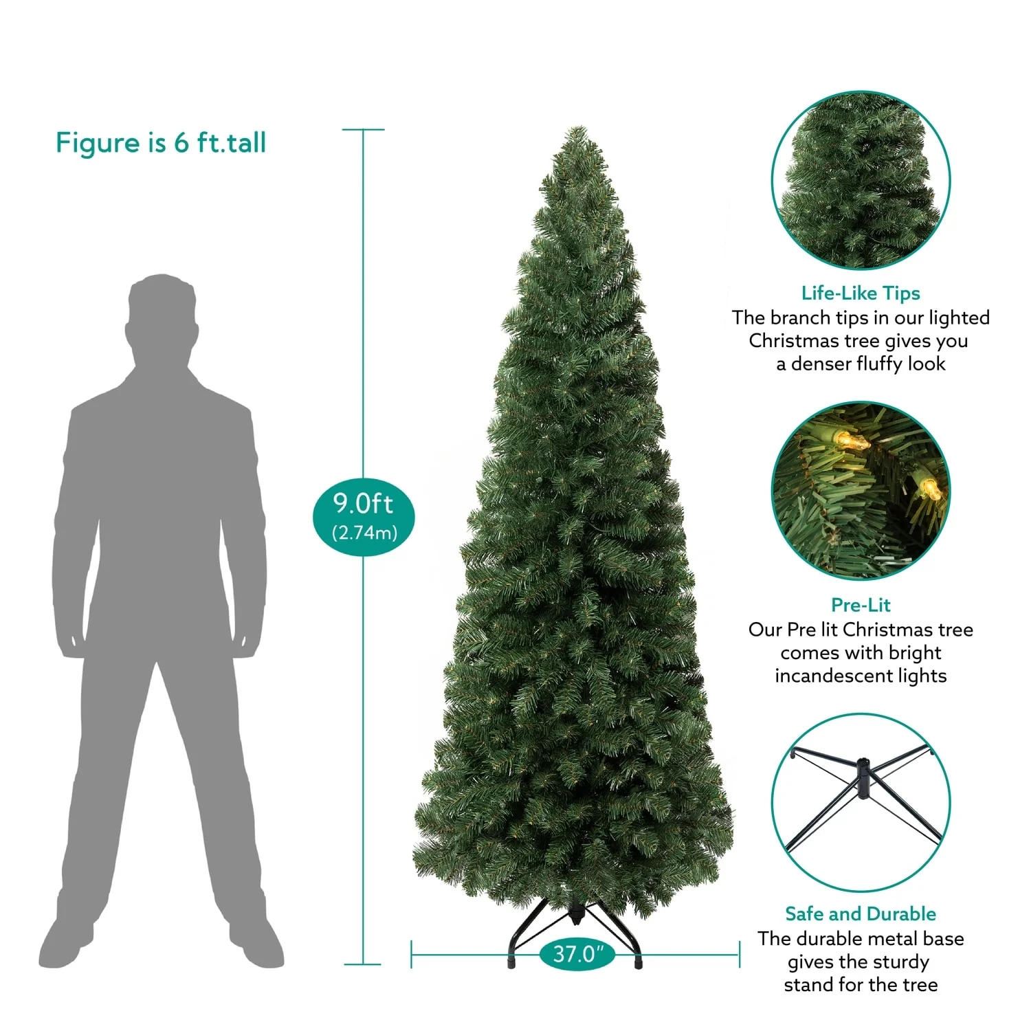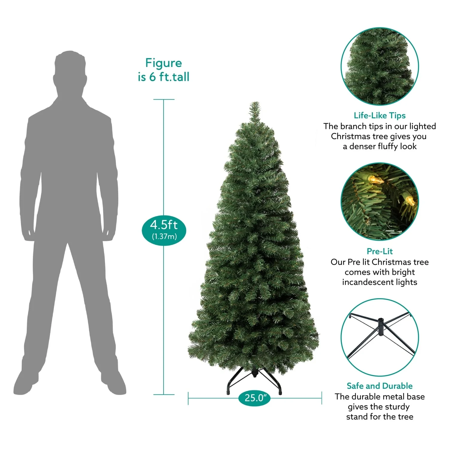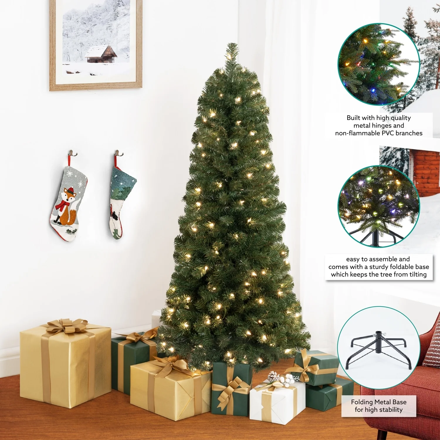 - DURABLE & LONGLASTING: Built with high quality metal hinges and non-flammable PVC branches. The durable metal base gives the sturdy stand for the tree girth prelit Christmas tree to bring the holiday Christmas cheer.