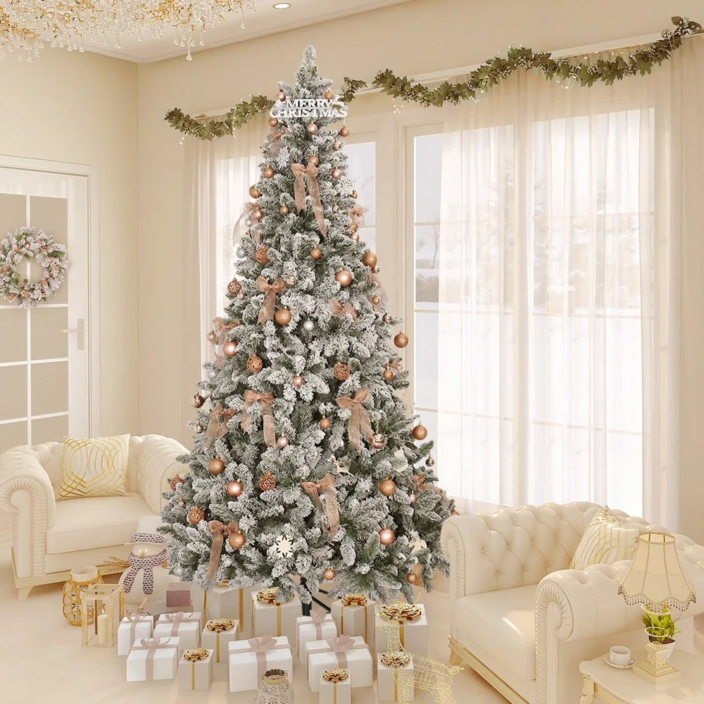 Glitzhome 6FT/7.5FT/9FT/11FT Snow Flocked Pre-lit Artificial Fir Christmas Trees