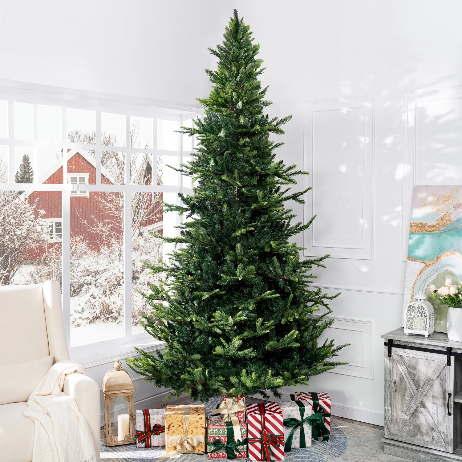 Glitzhome 6FT/7.5FT/9FT Warm White or Multi-Colored Pre-Lit Flocked Pine Artificial Christmas Tree