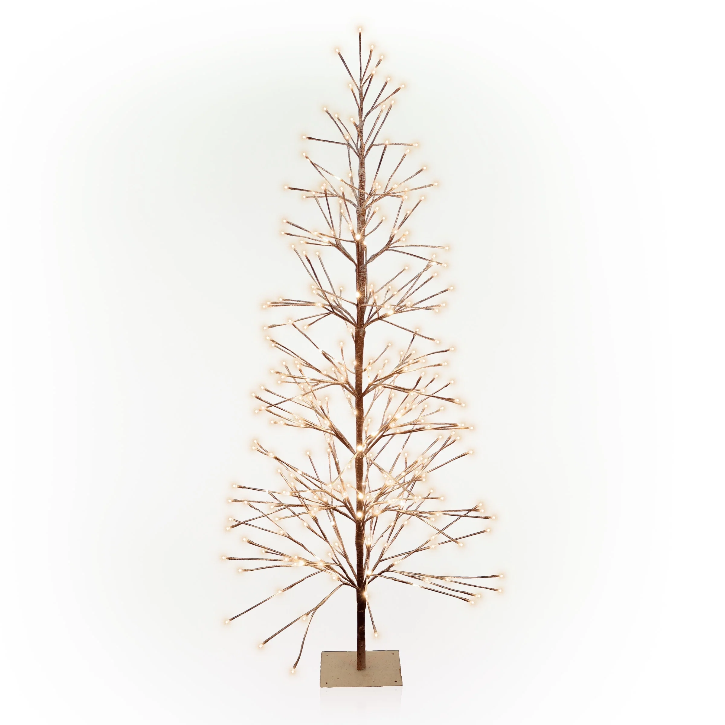 Alpine Corporation 71"H Indoor/Outdoor Artificial Flocked Christmas Tree with White LED Lights, Brown
