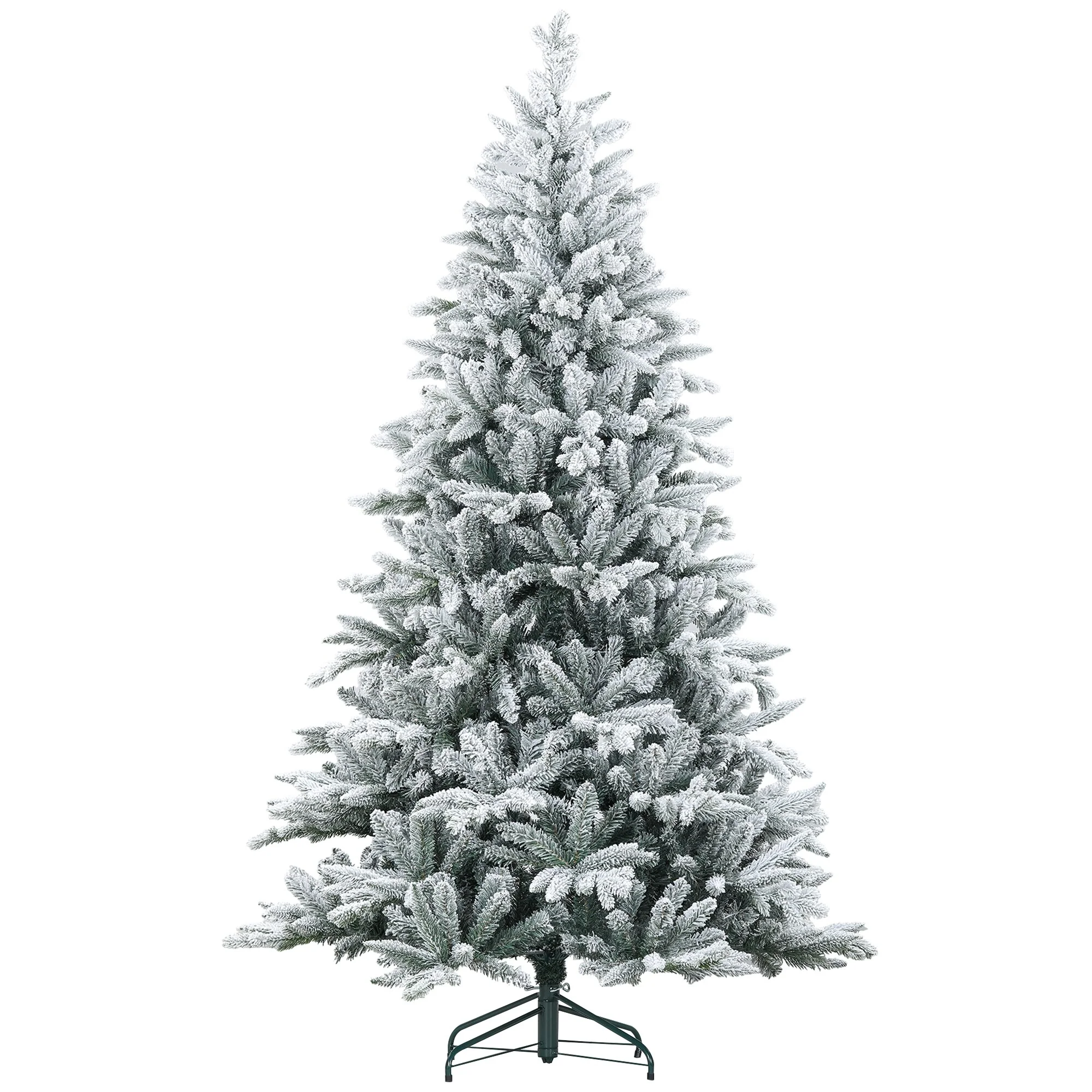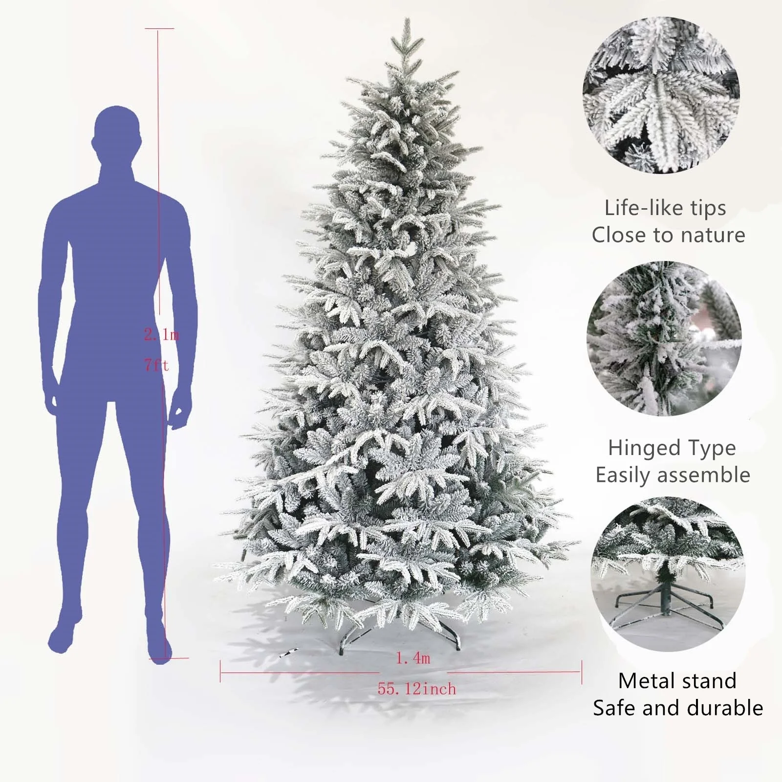 Hinged 7ft Snow Flocked Christmas Tree with Sturdy Metal Stand for Indoor and Commercial Use